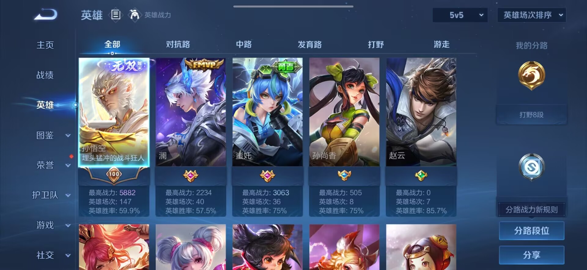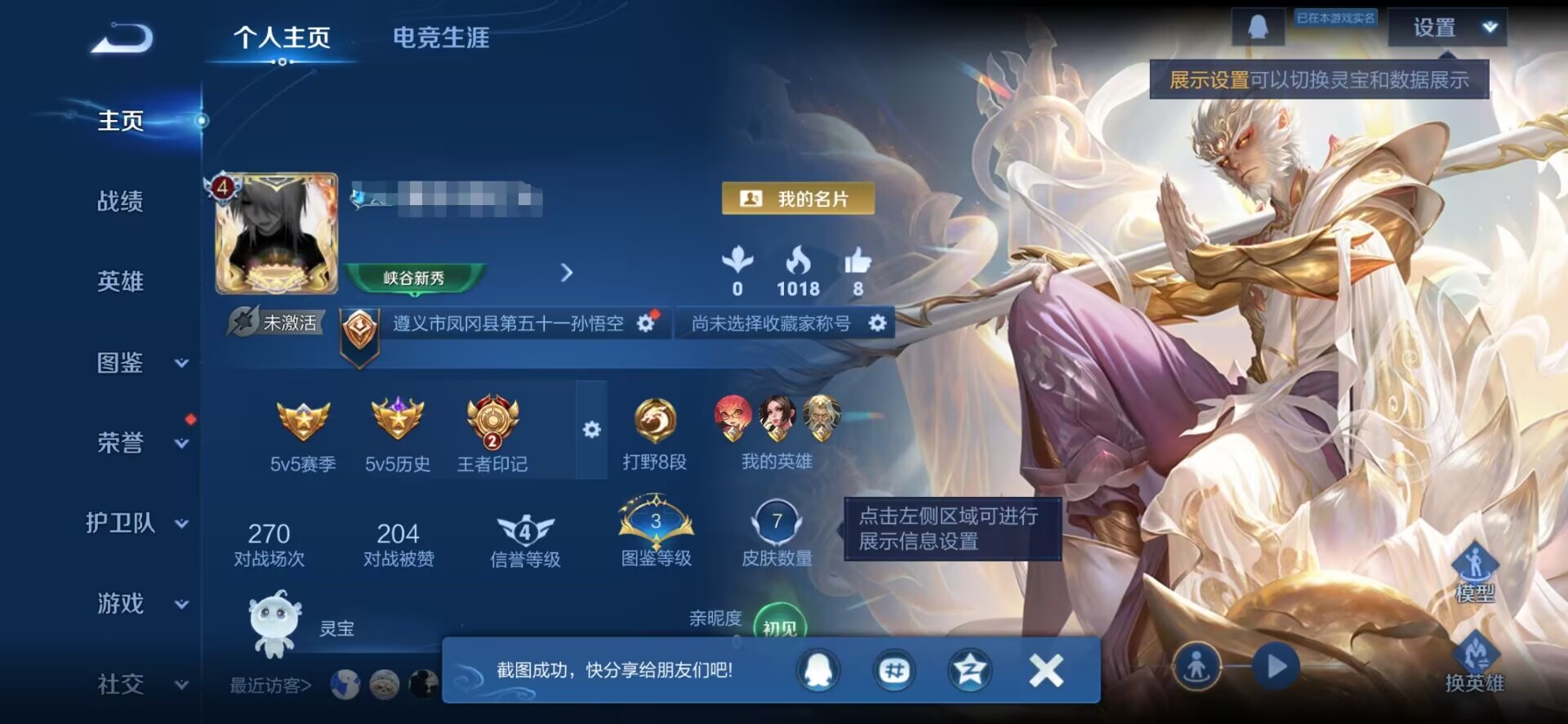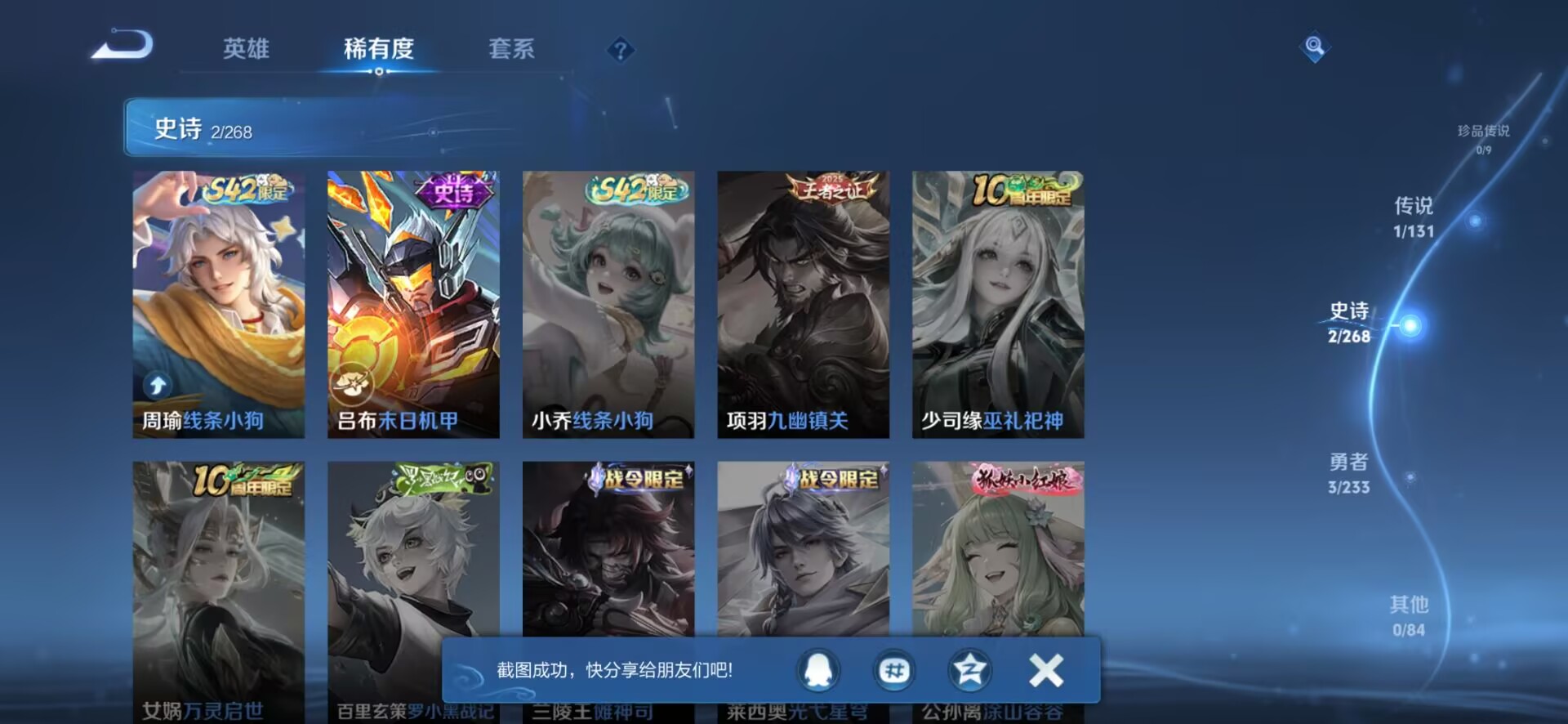 贵族等级:v4皮肤数:7传说品质1 无双1 英雄数:24