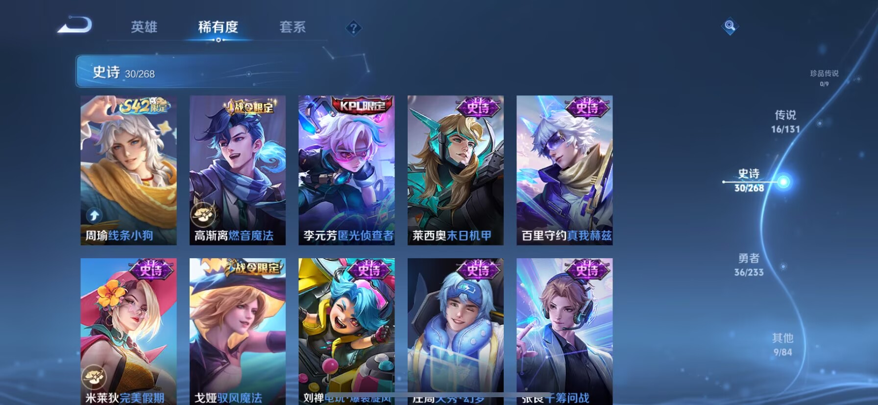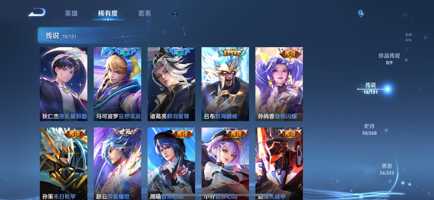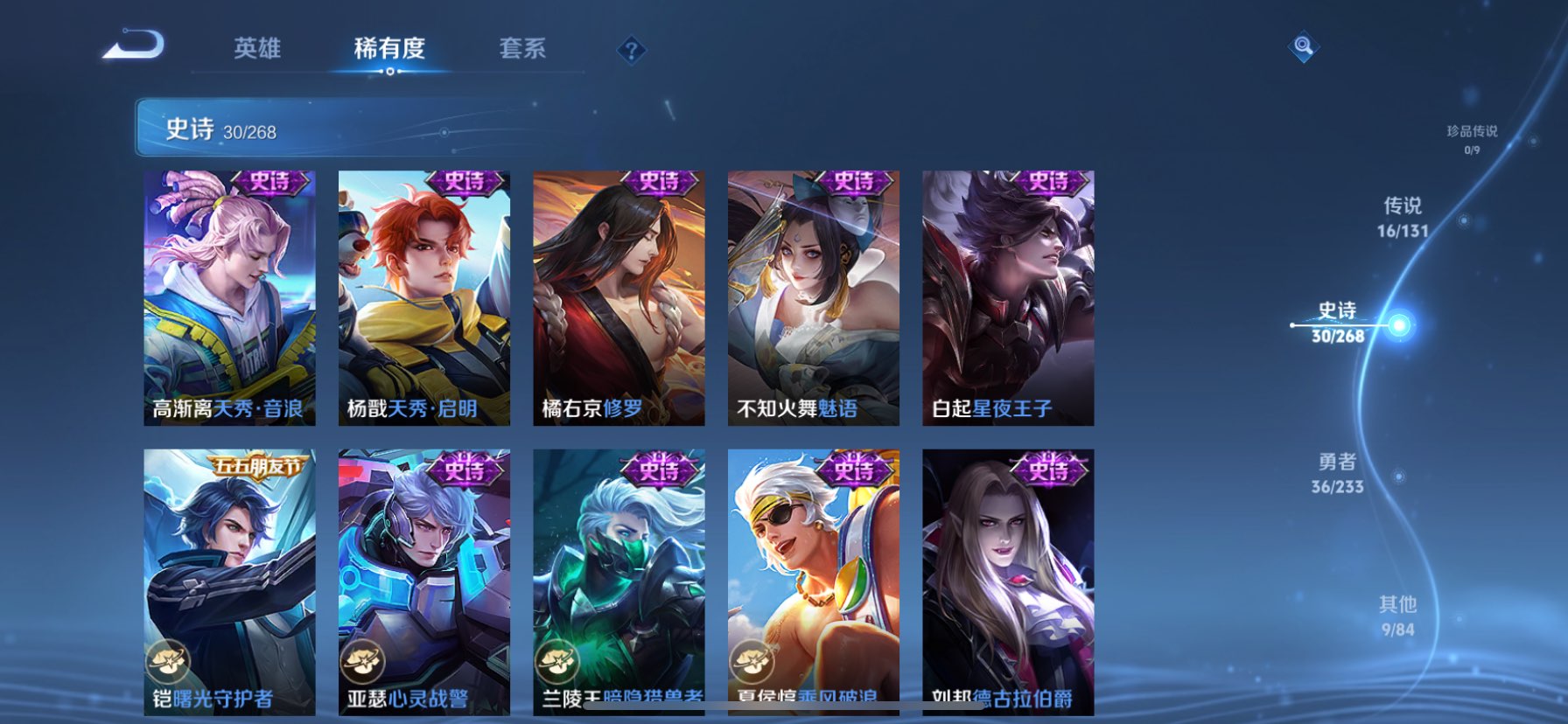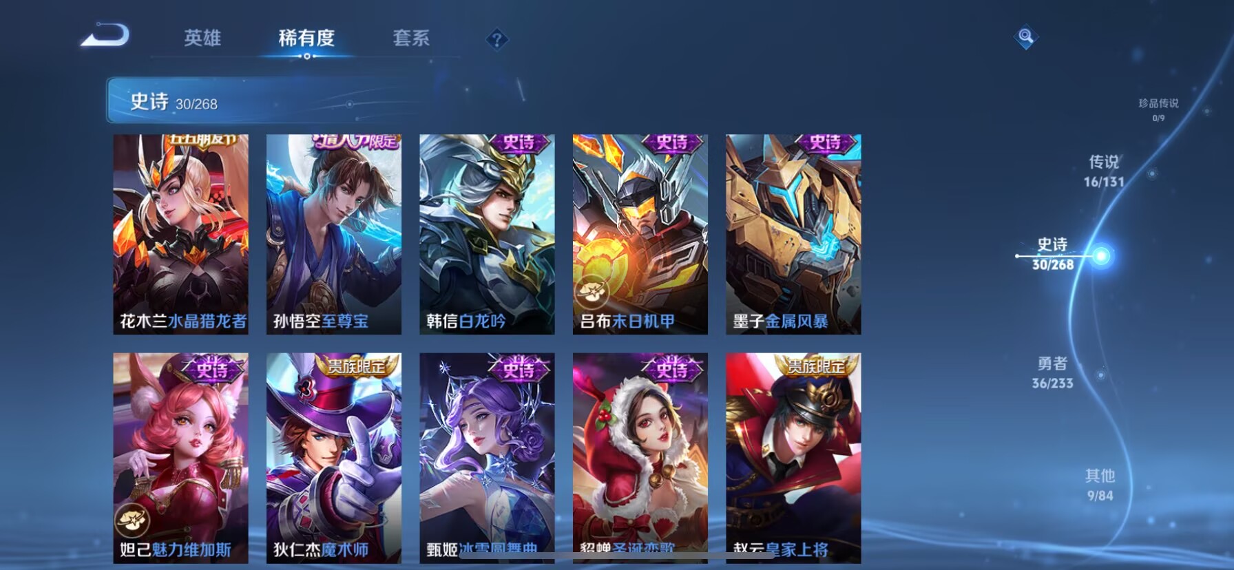 贵族等级:v8皮肤数:91传说品质16 情人节限定1 英雄数:112