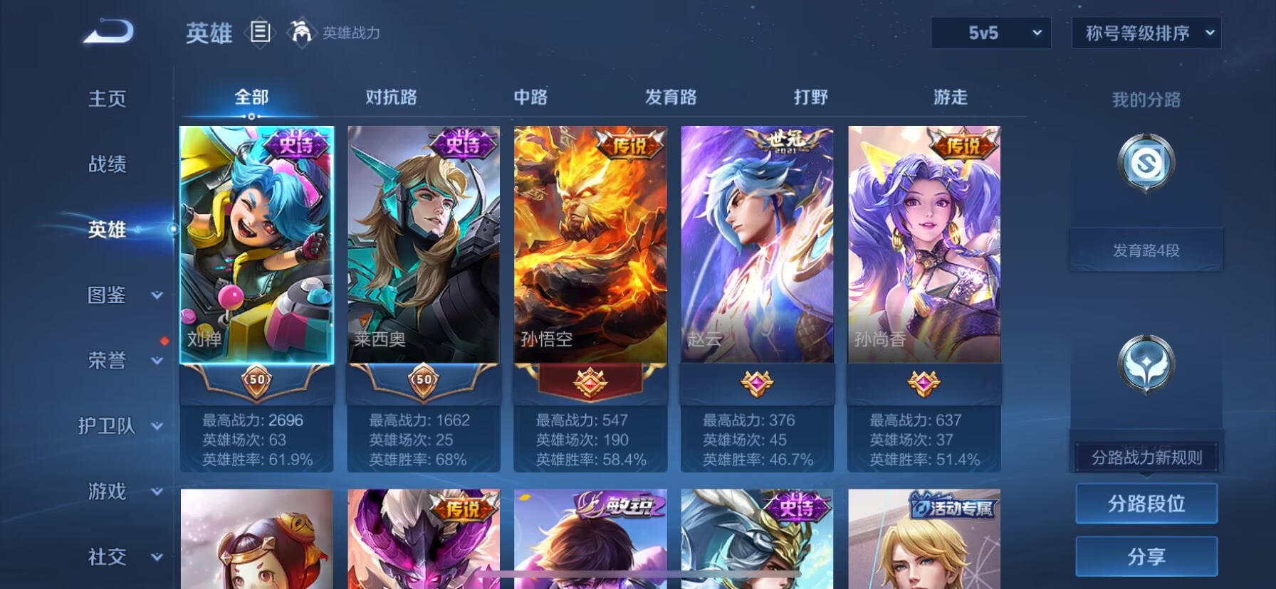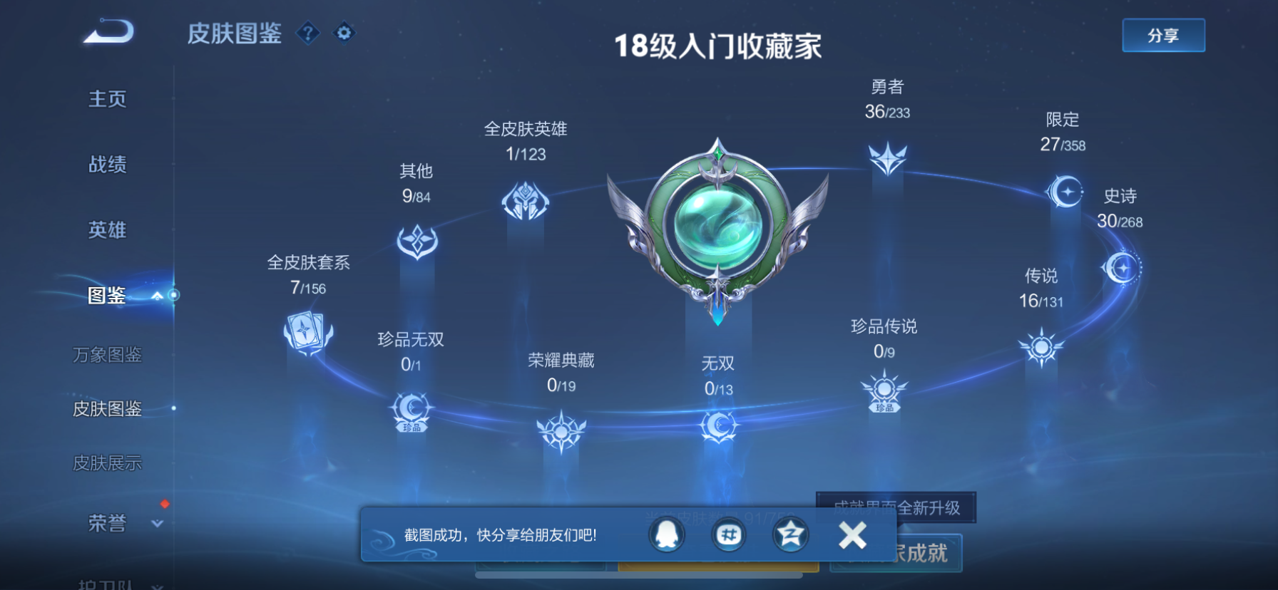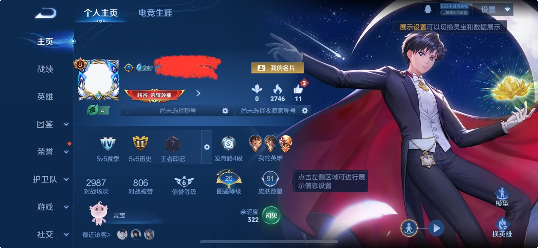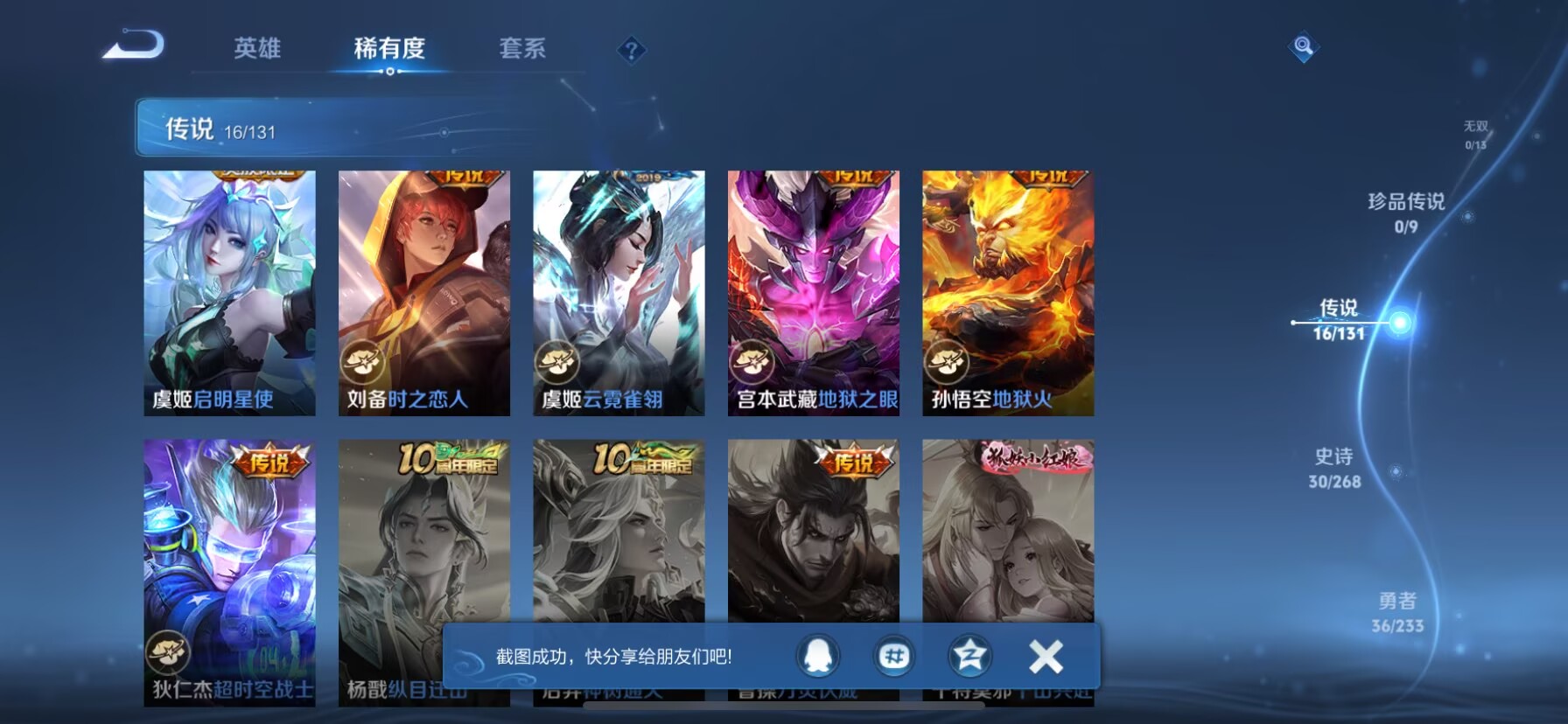 贵族等级:v8皮肤数:91传说品质16 情人节限定1 英雄数:112