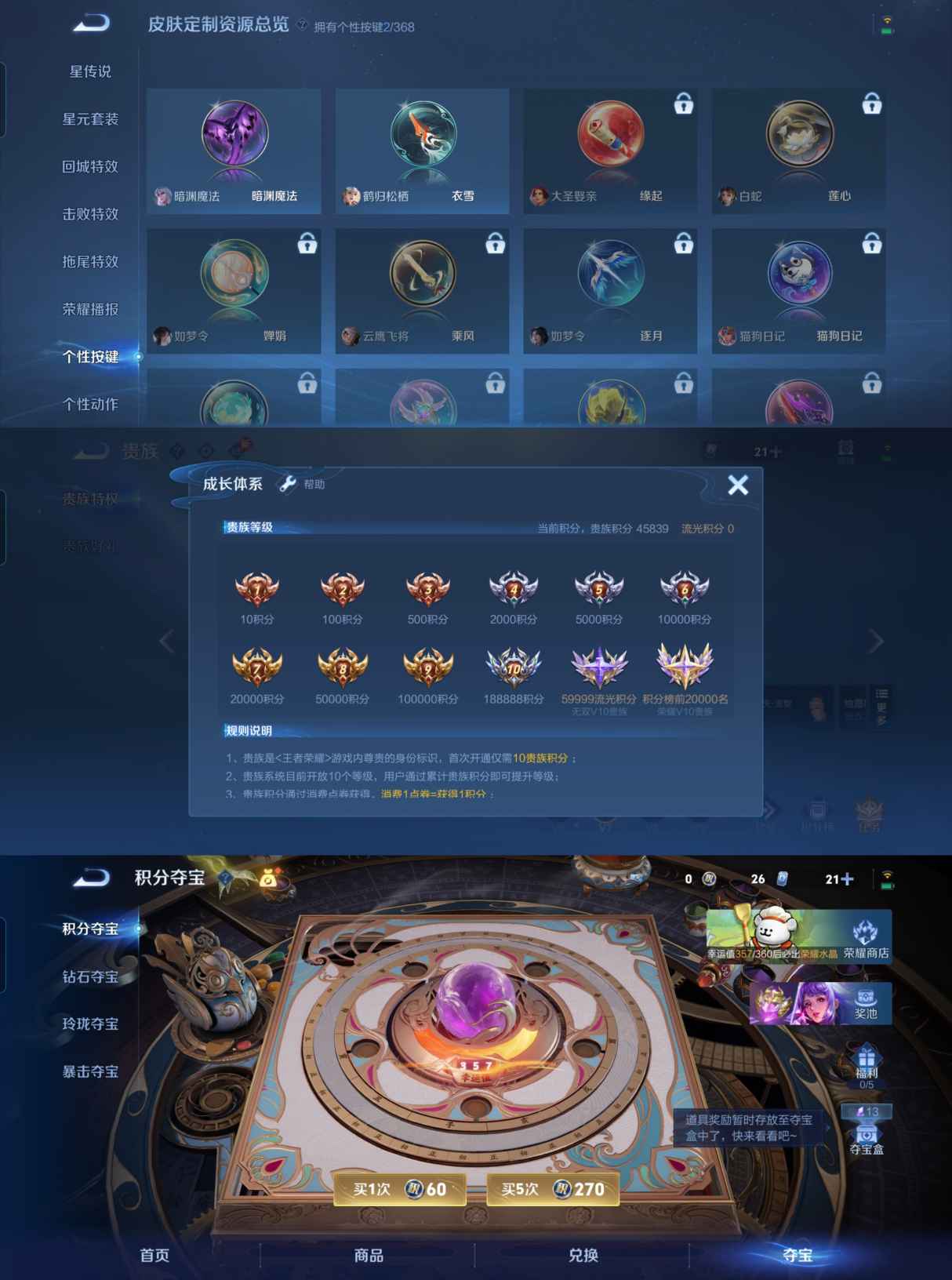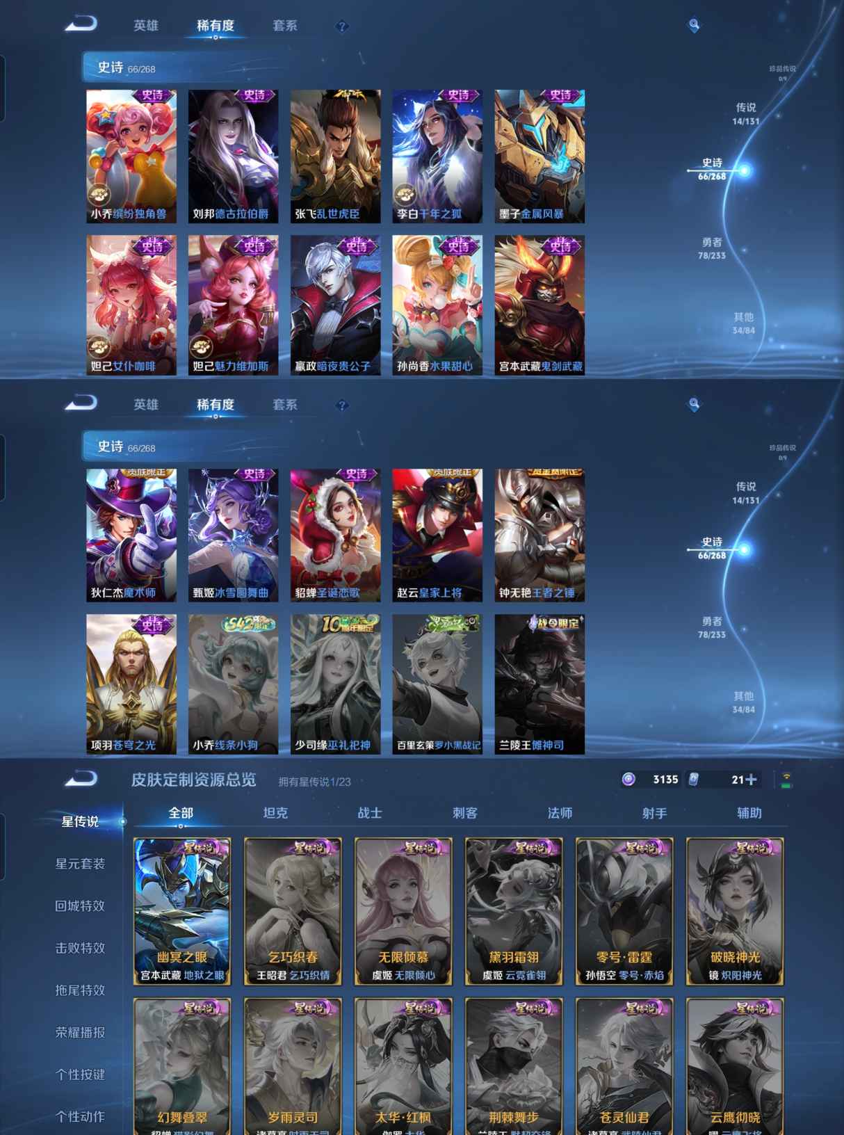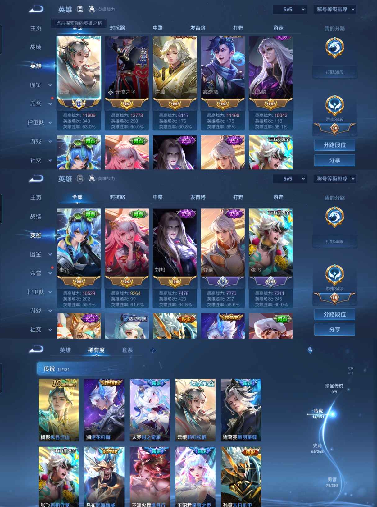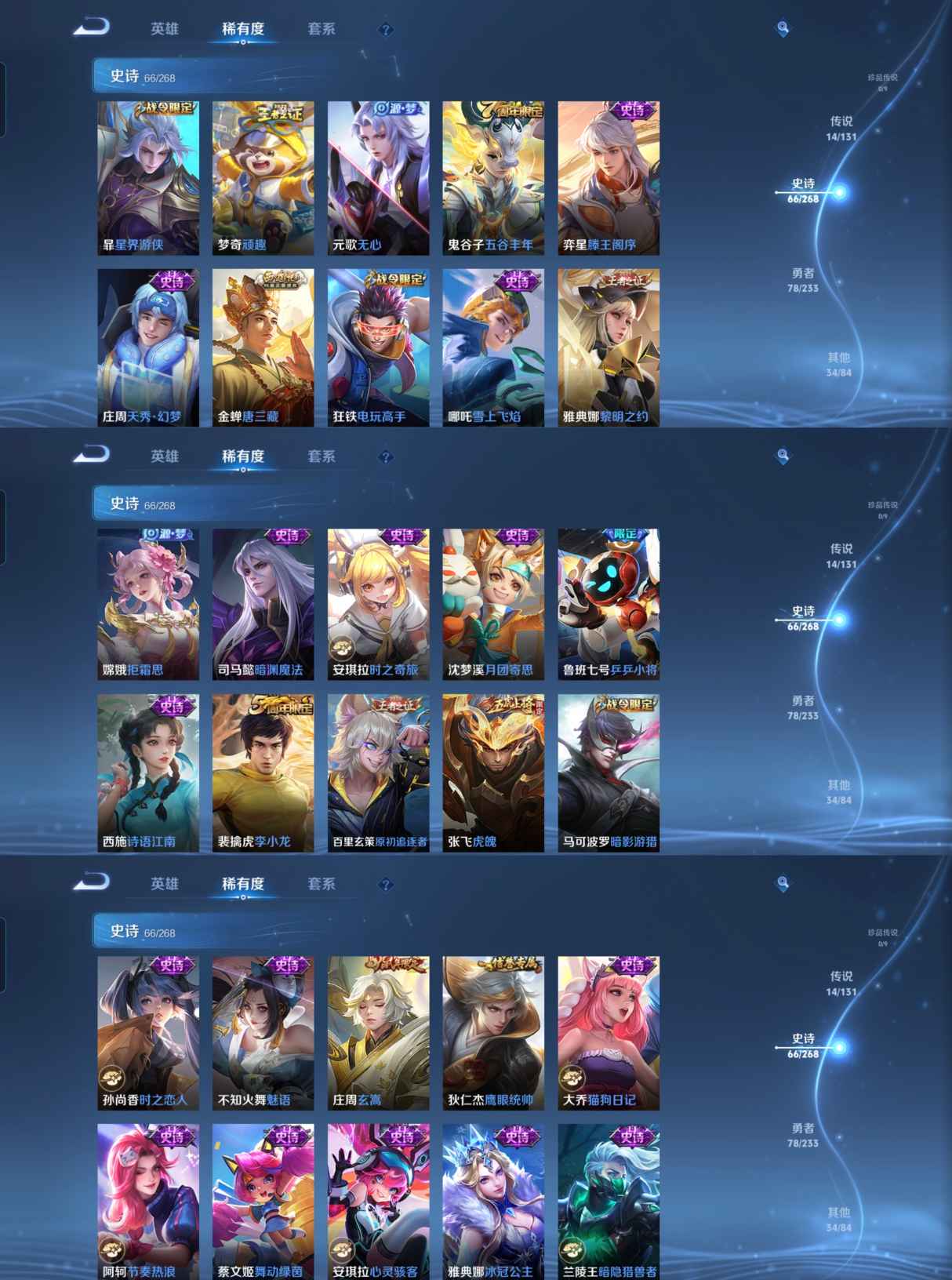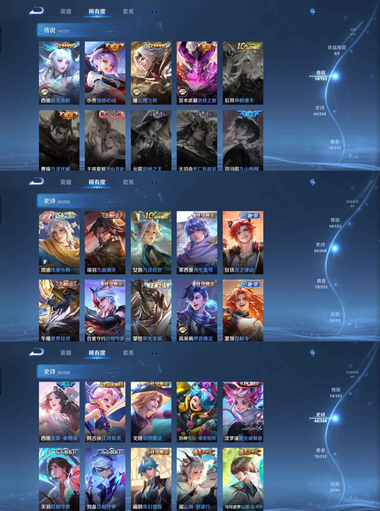 贵族等级:v7皮肤数:192传说品质14 生肖限定3 英雄数:127