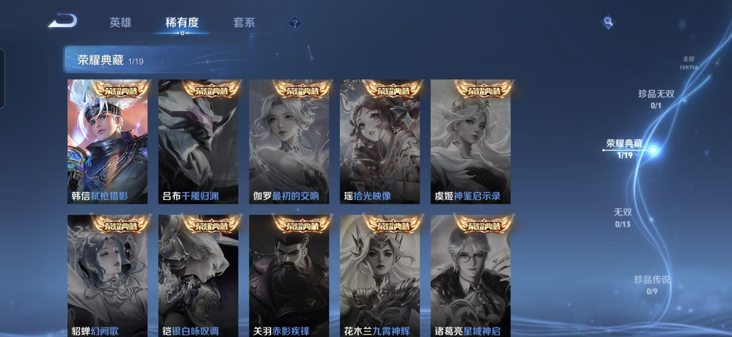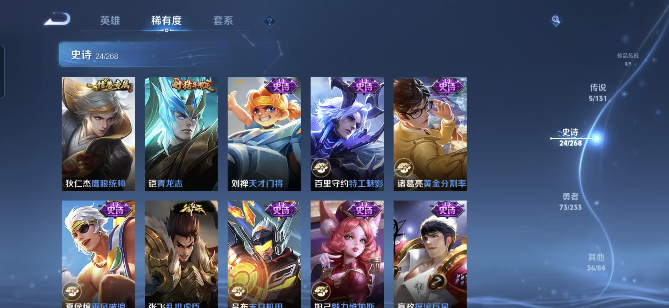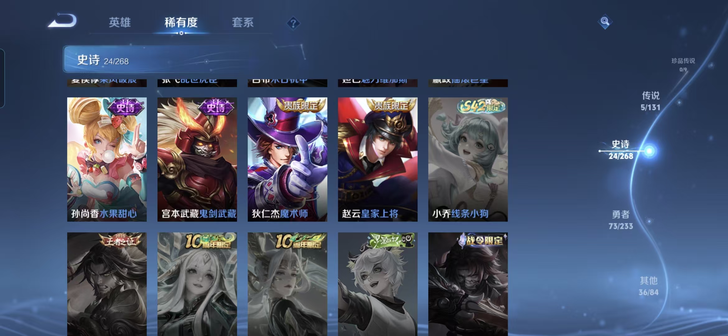 贵族等级:v6皮肤数:139传说品质5 生肖限定1 荣耀典藏1 英雄数:126