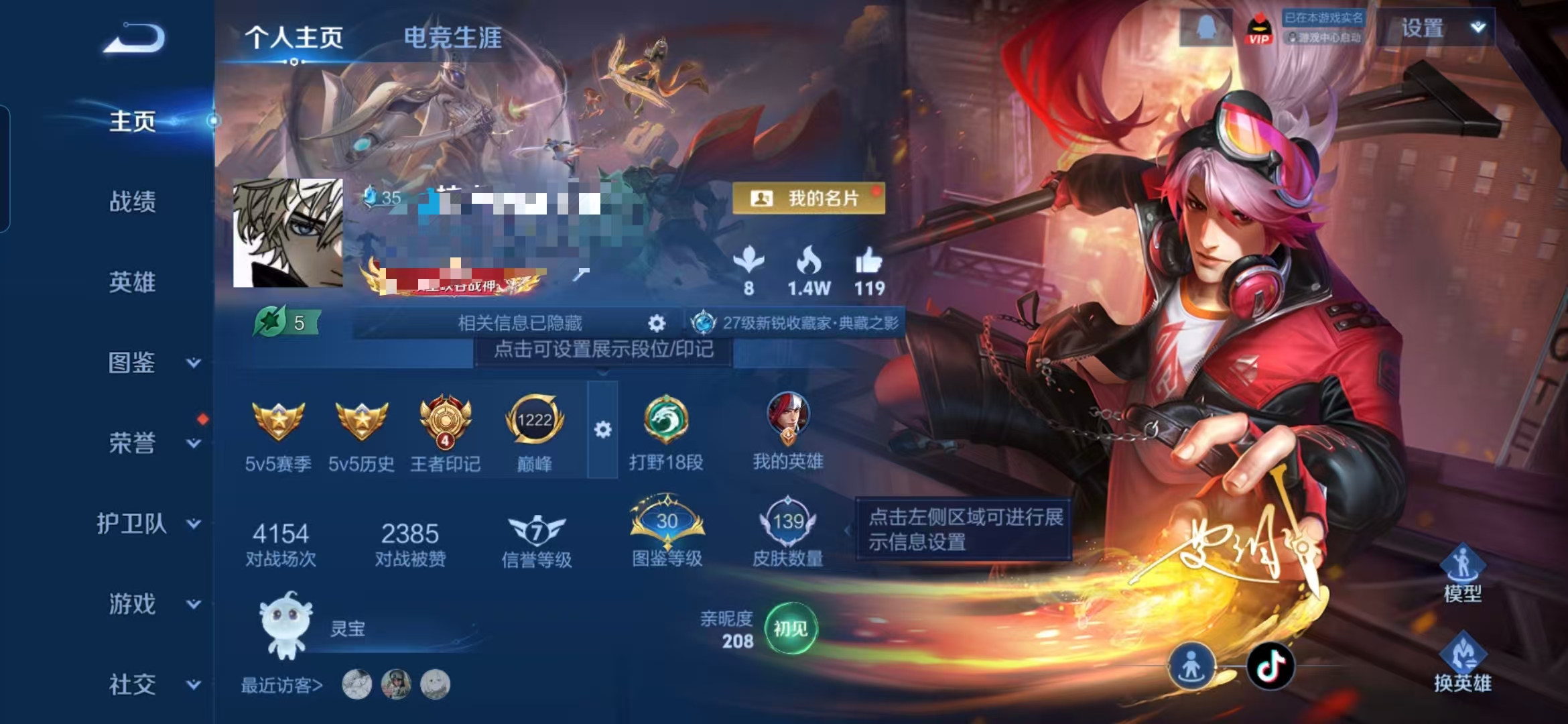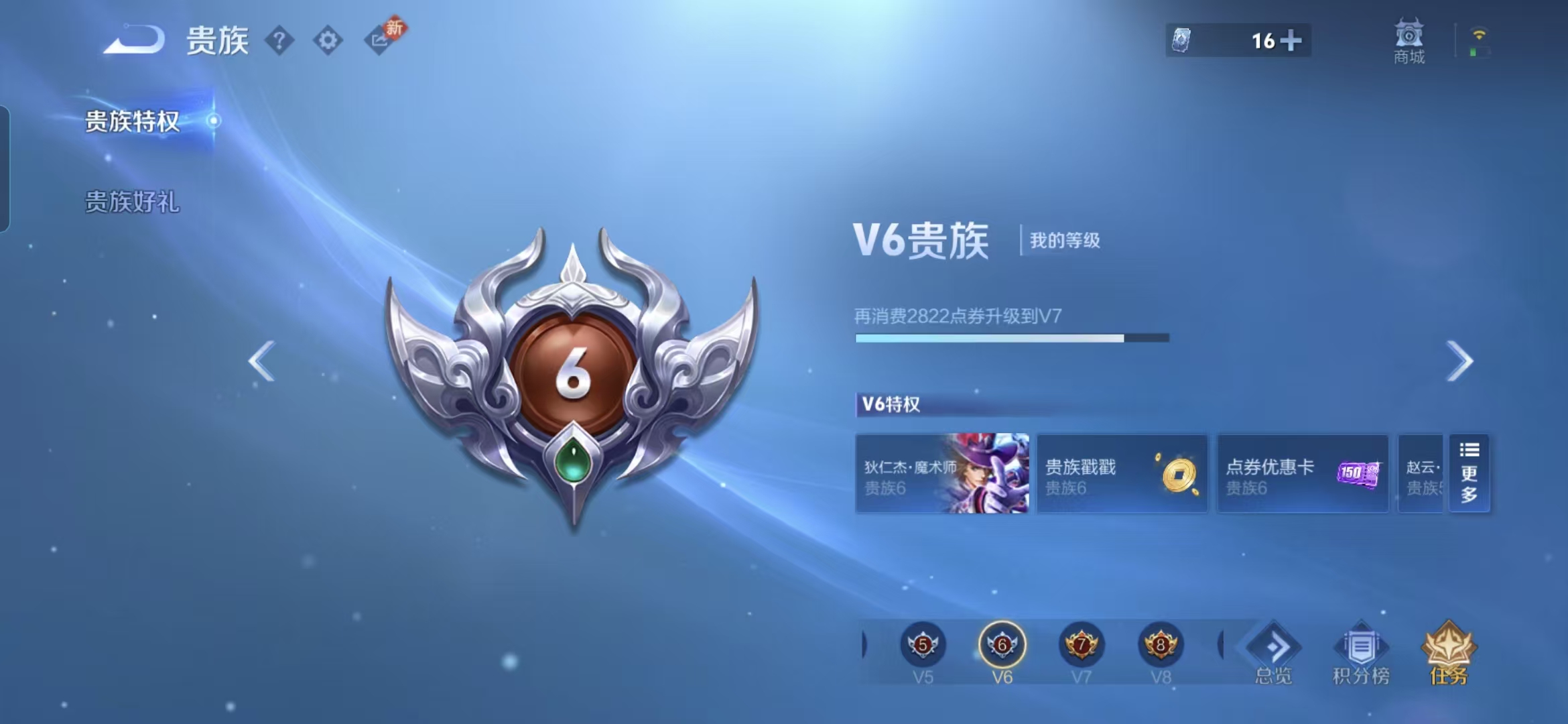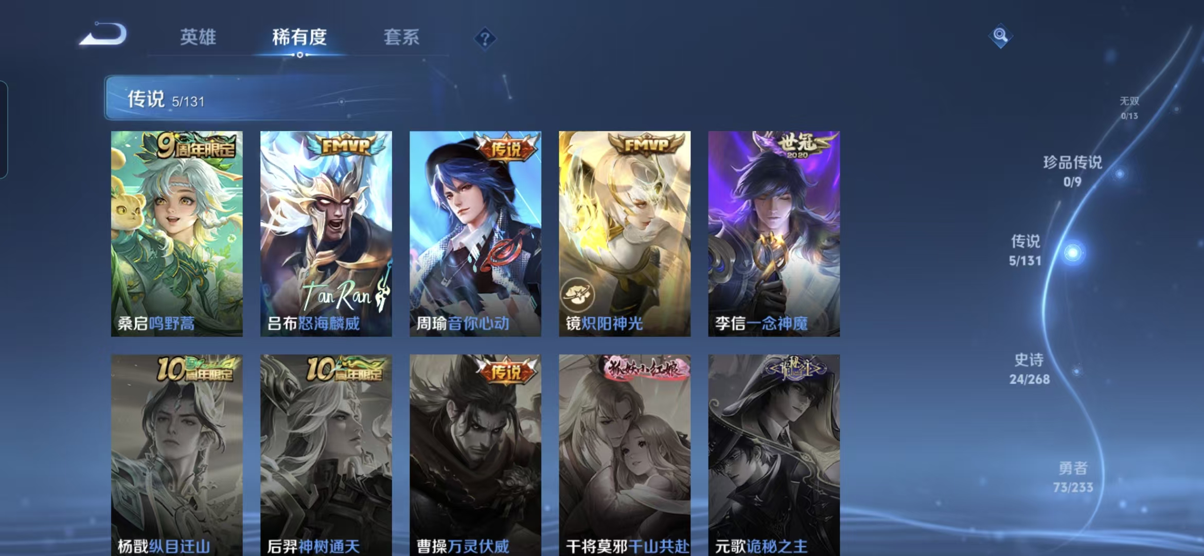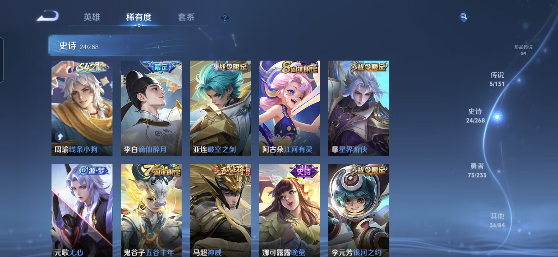 贵族等级:v6皮肤数:139传说品质5 生肖限定1 荣耀典藏1 英雄数:126