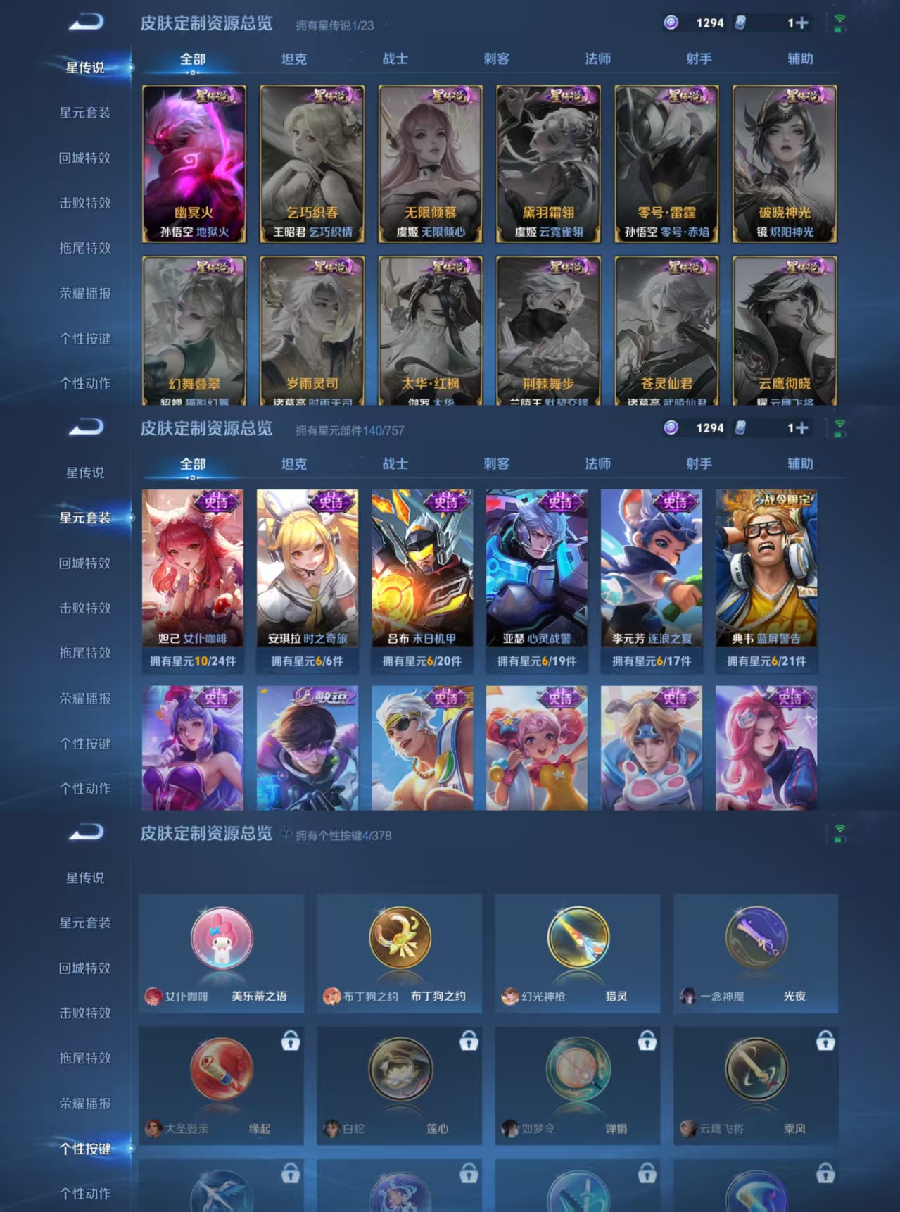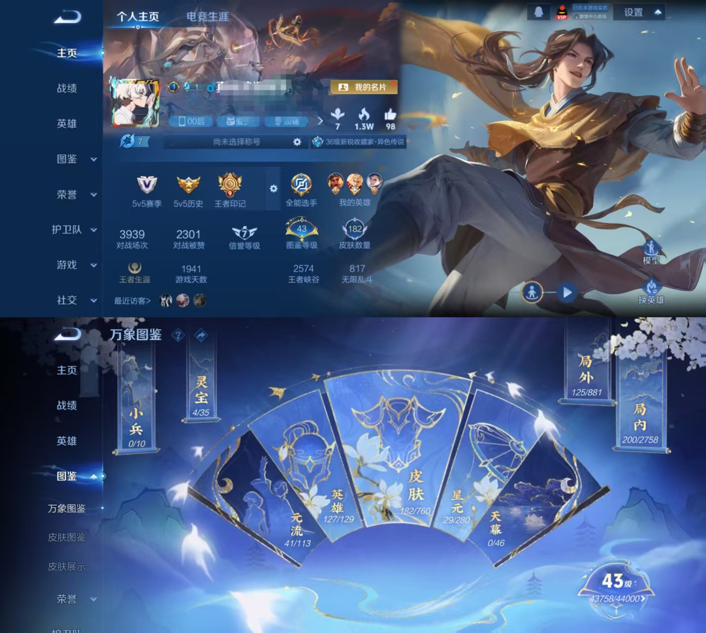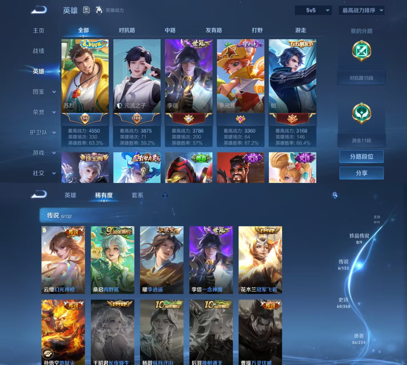 贵族等级:v7皮肤数:182情人节限定1 传说品质6 生肖限定2 英雄数:127