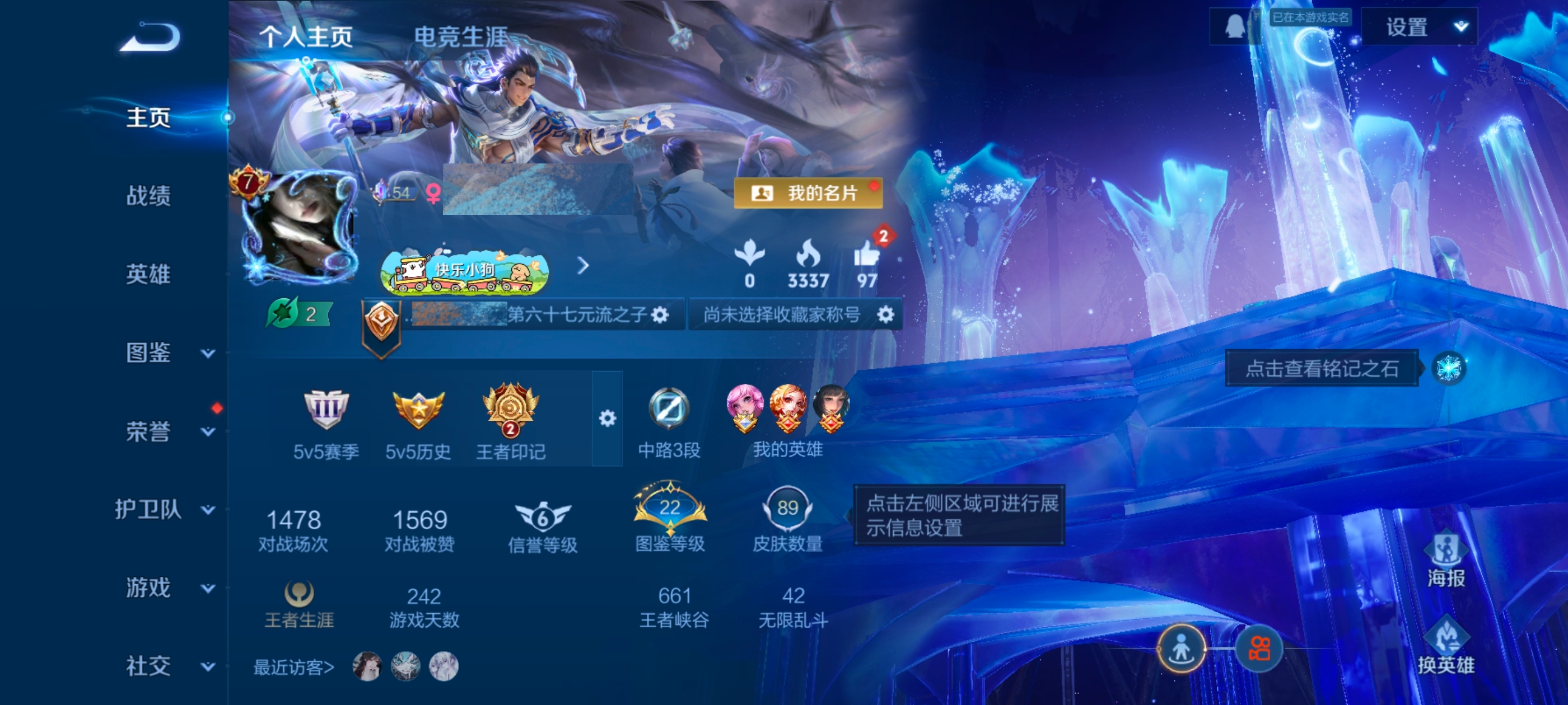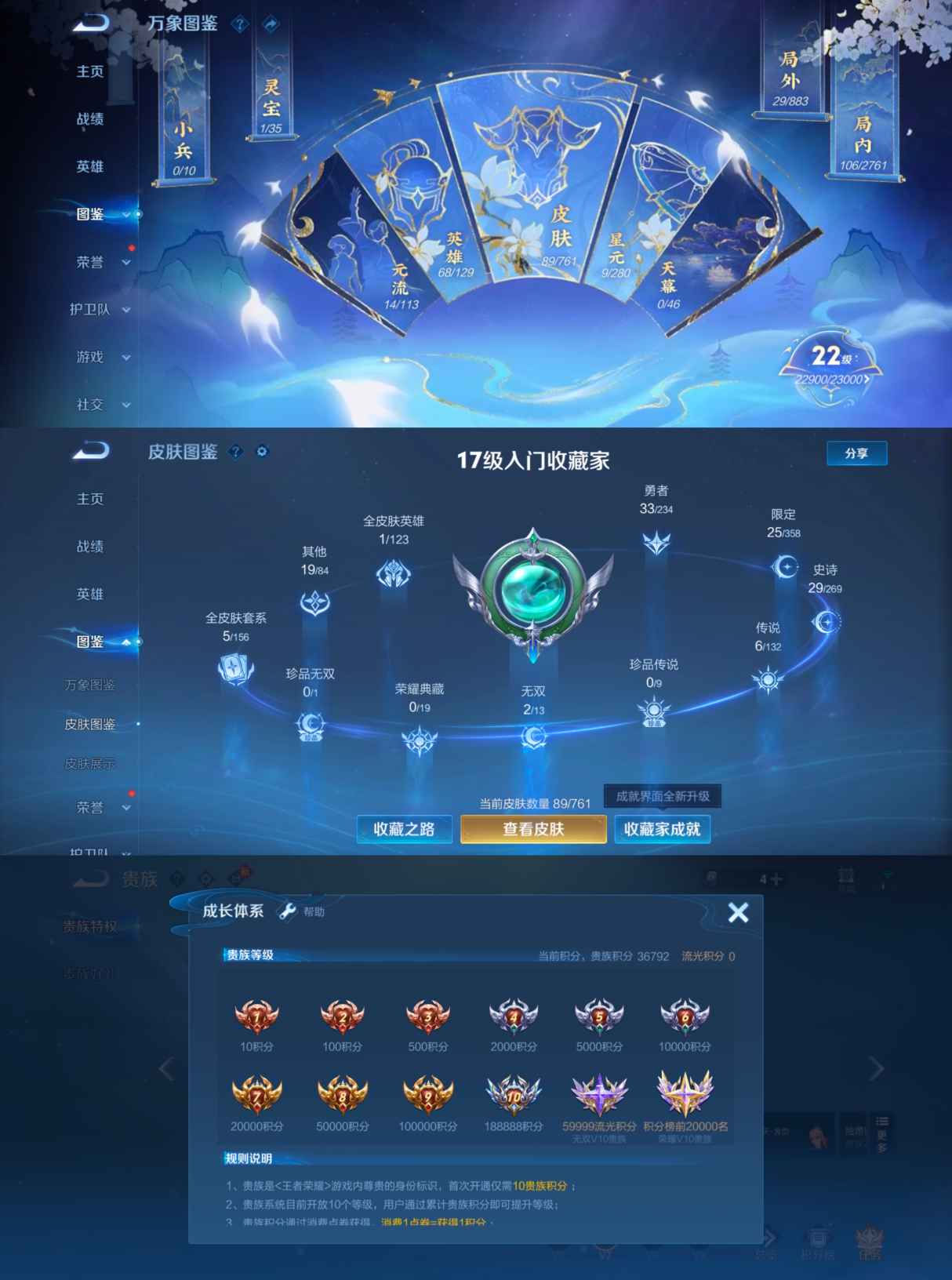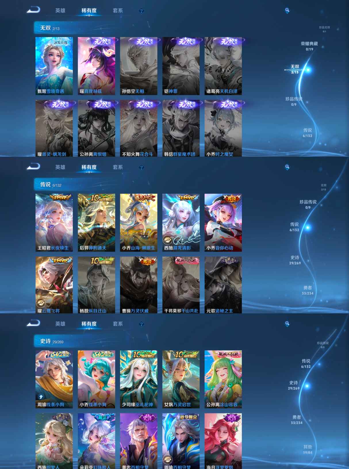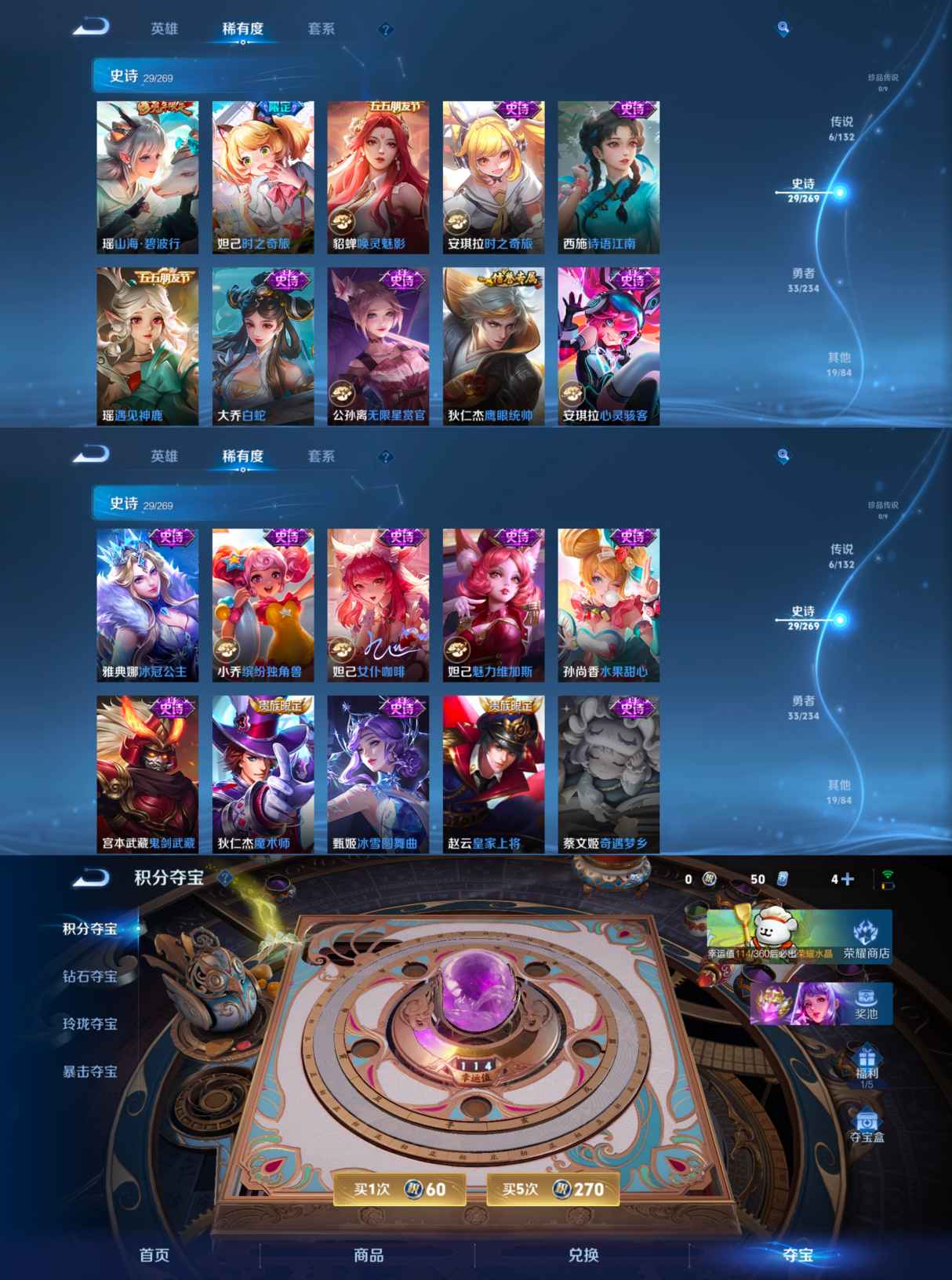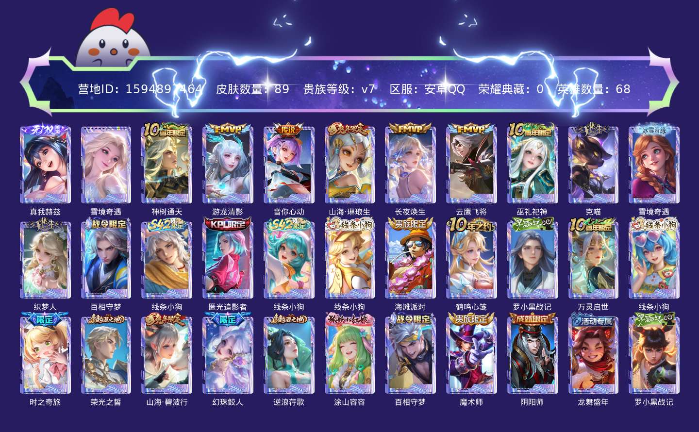 贵族等级:v7皮肤数:90传说品质6 生肖限定2 无双2 英雄数:68