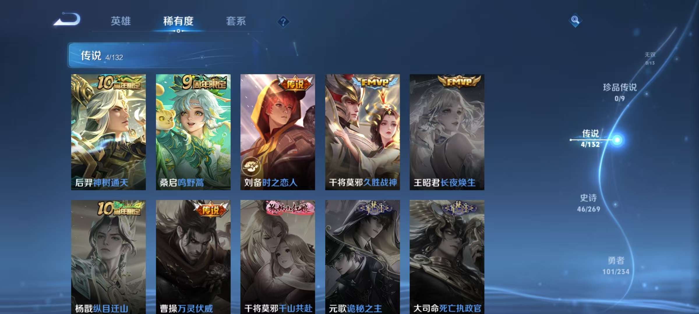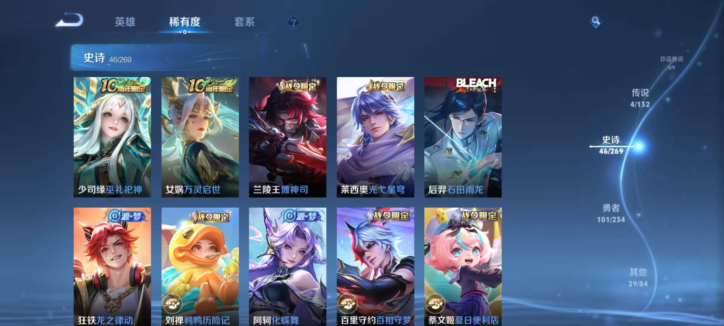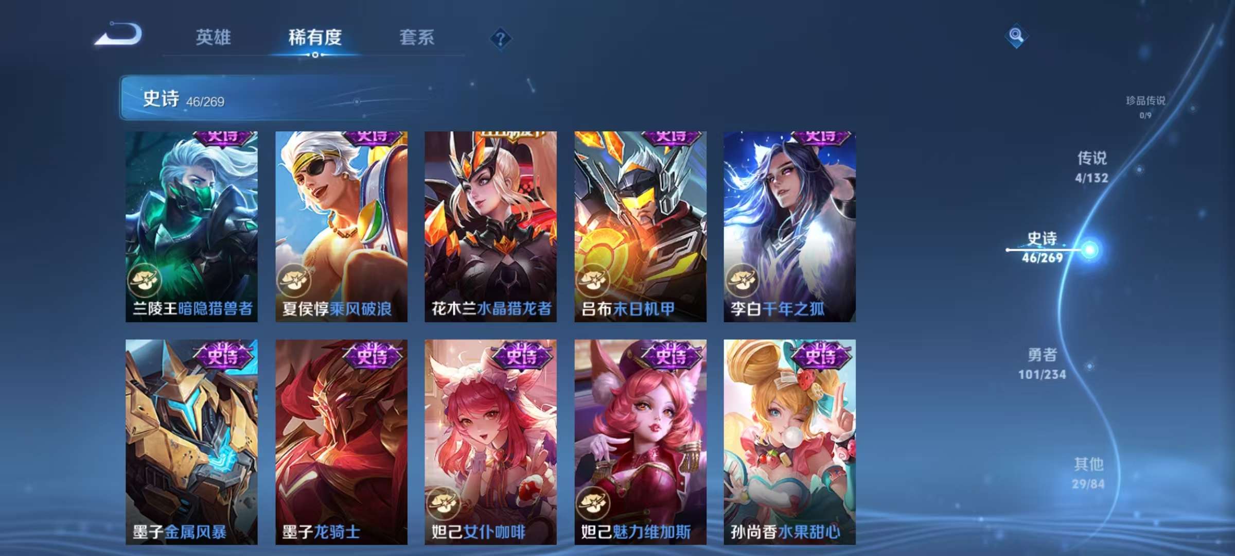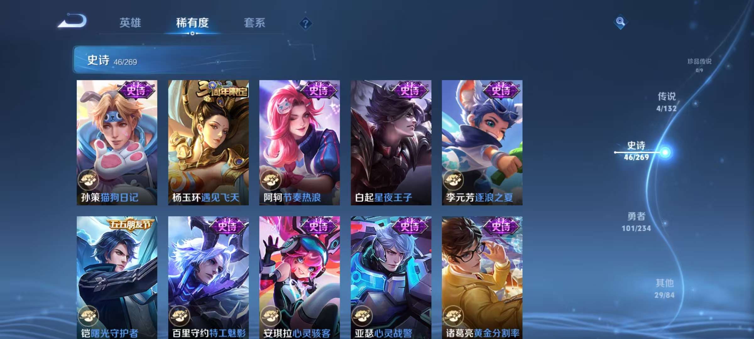 贵族等级:v6皮肤数:196传说品质7 情人节限定2 生肖限定2 英雄数:125