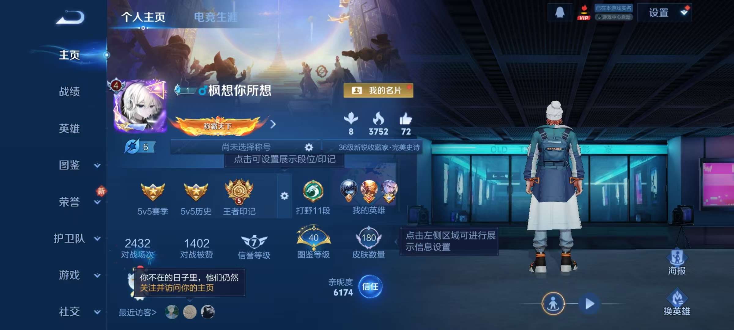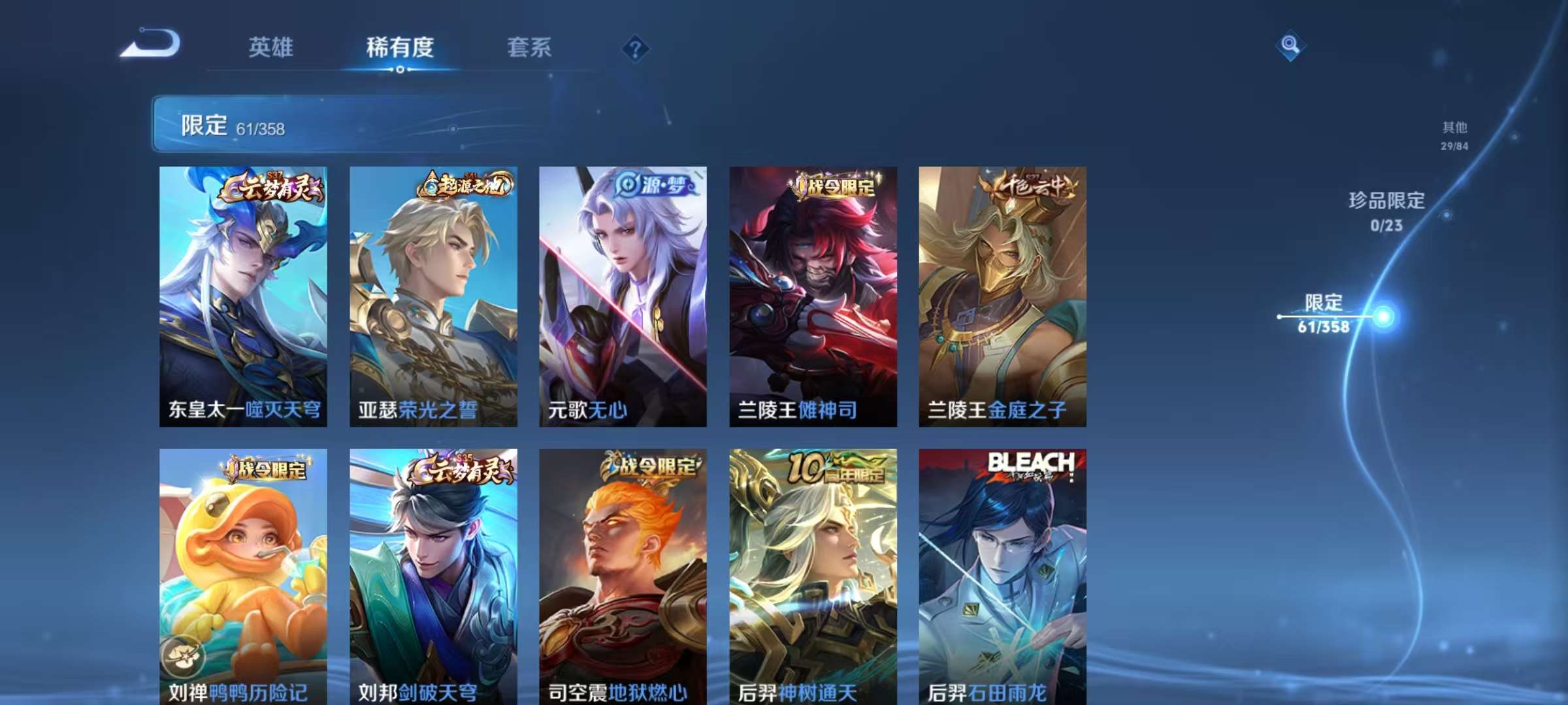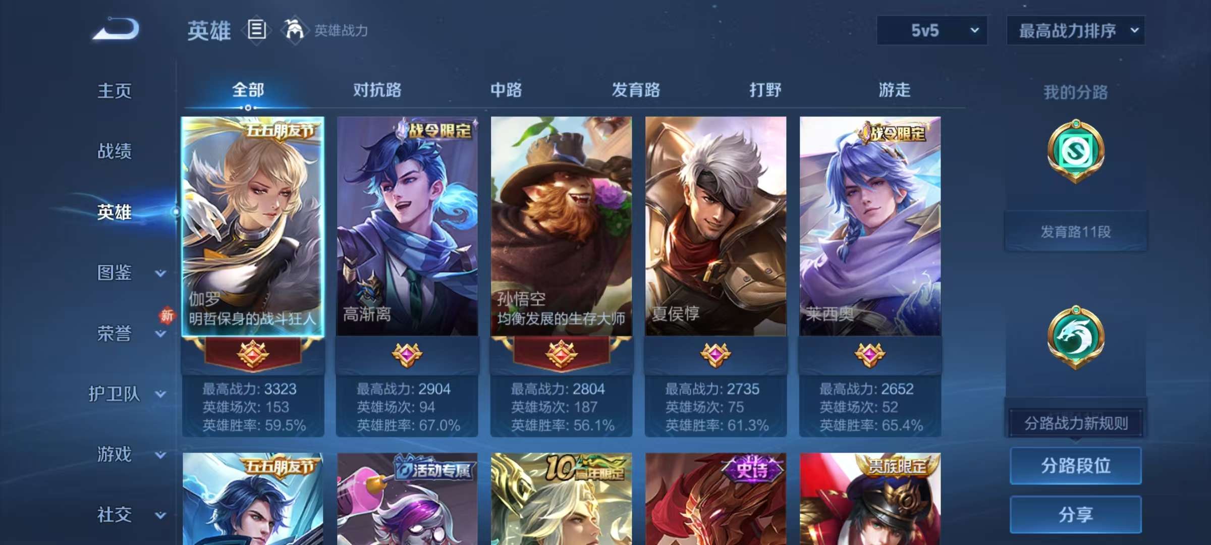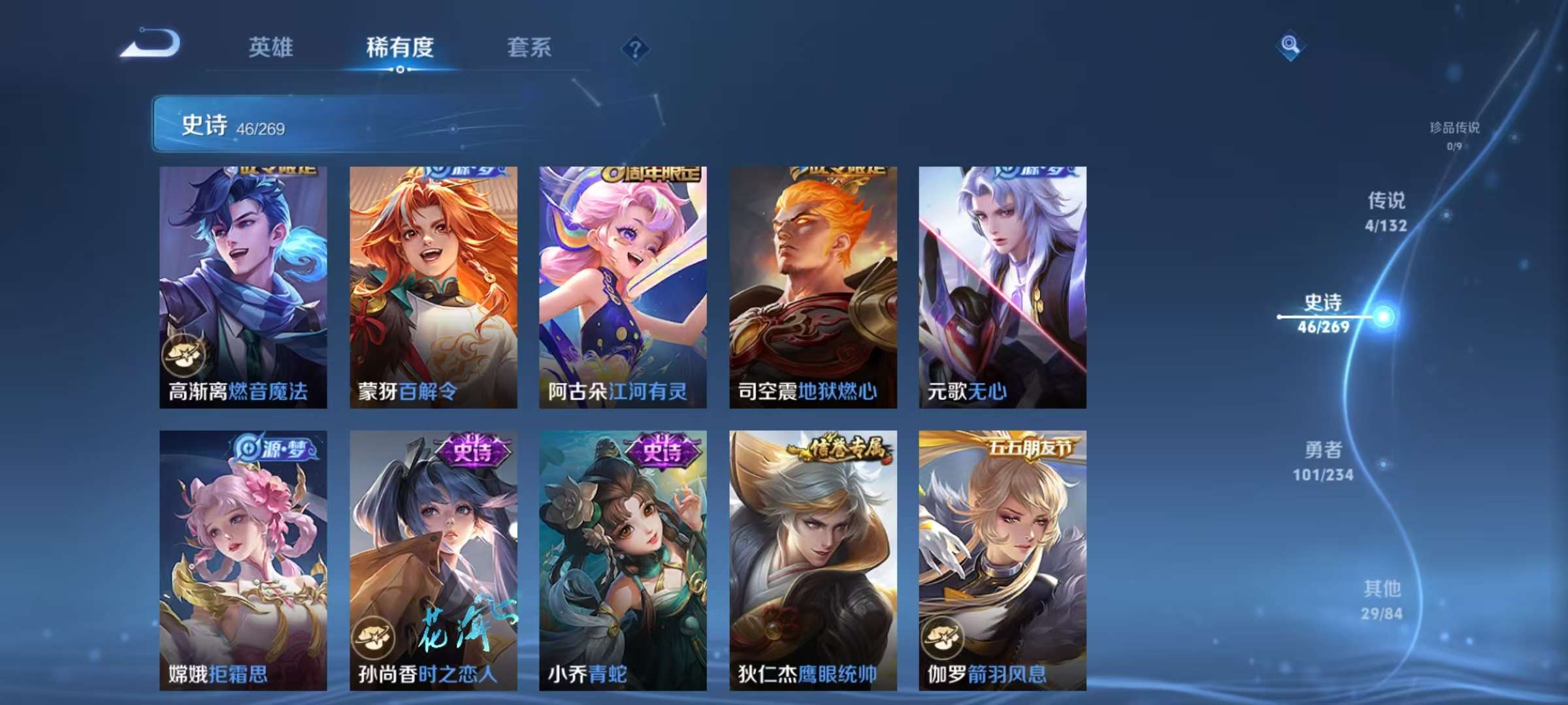 贵族等级:v6皮肤数:196传说品质7 情人节限定2 生肖限定2 英雄数:125