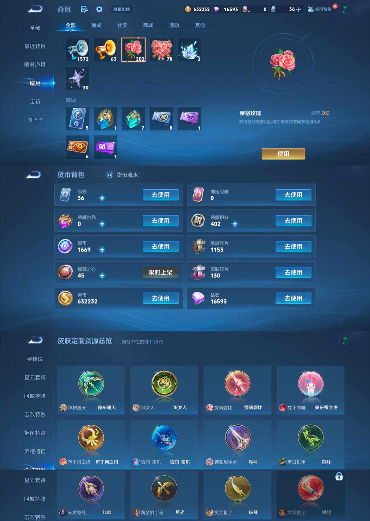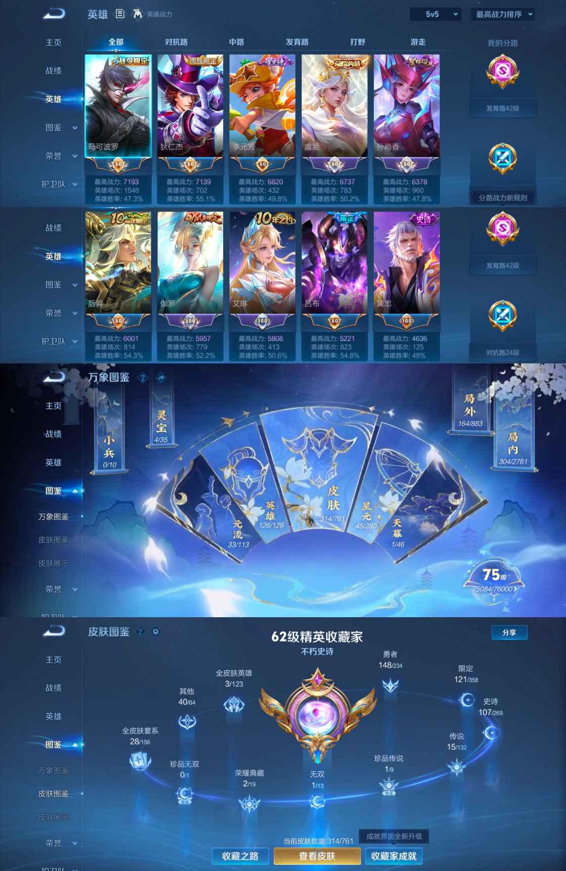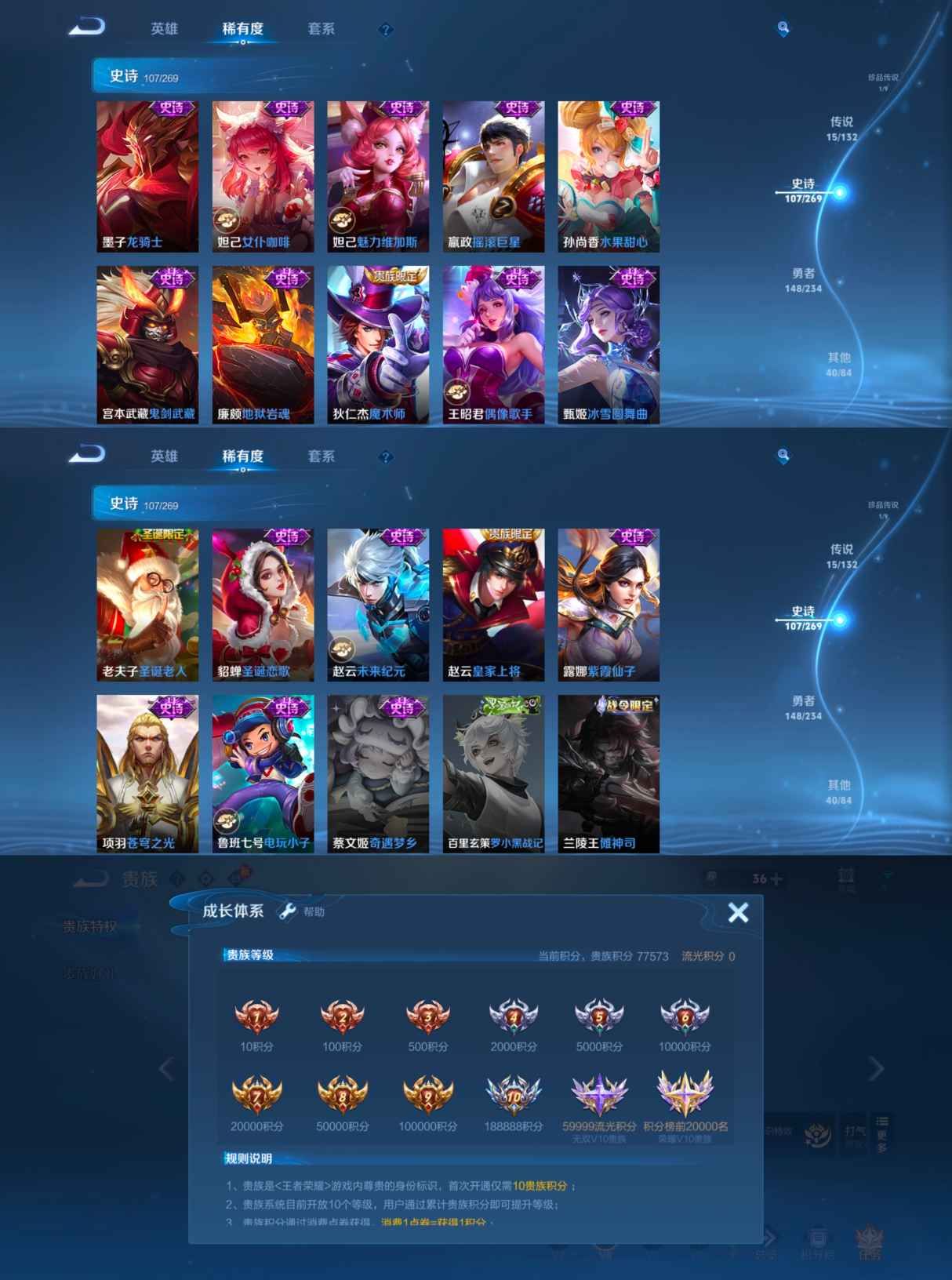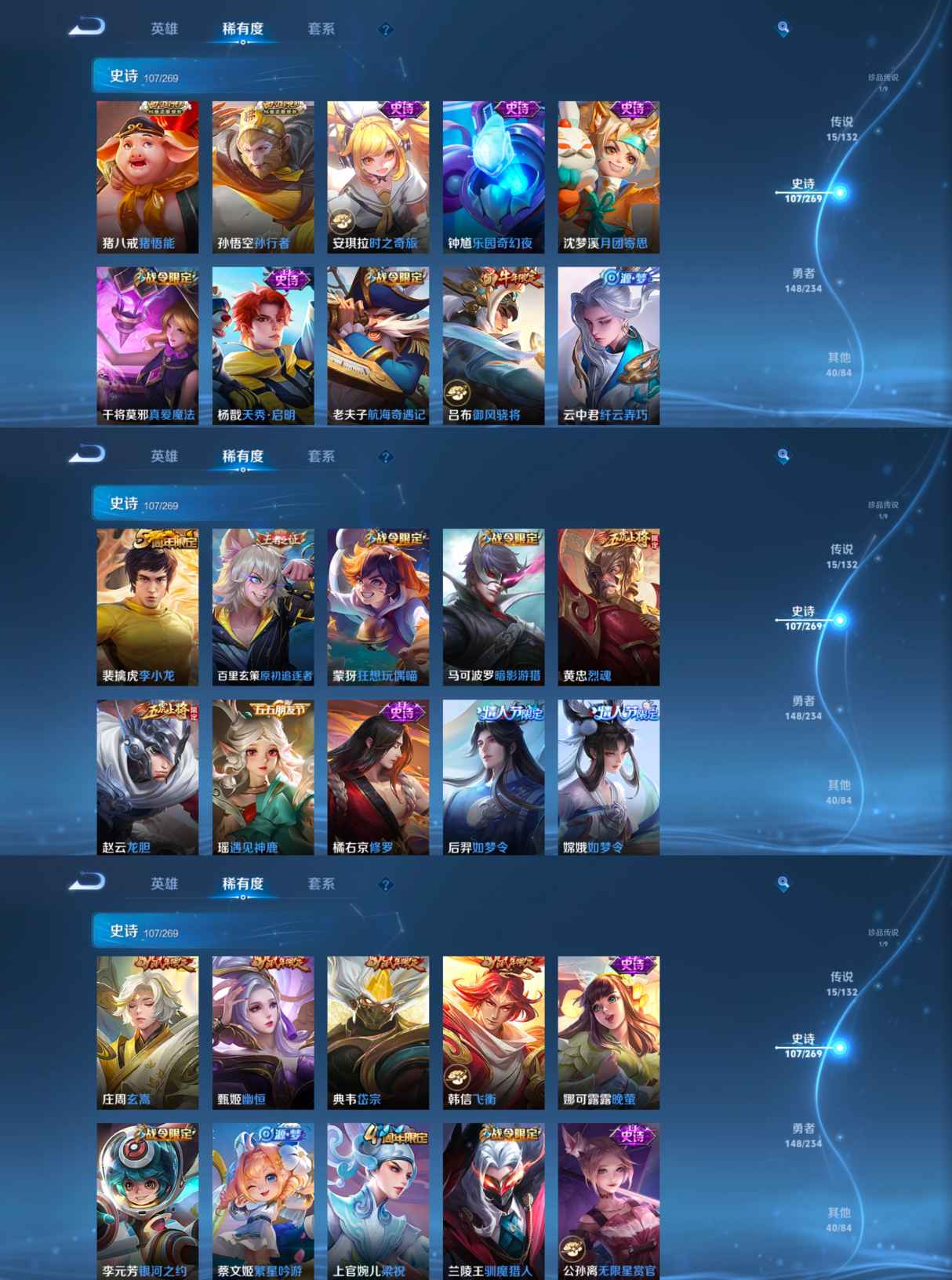 贵族等级:v8皮肤数:314传说品质15 情人节限定4 生肖限定11 无双1 珍品传说1 荣耀典藏2 英雄数:126