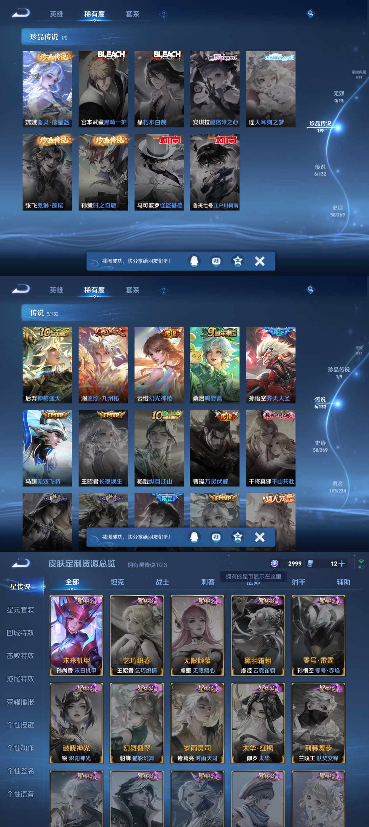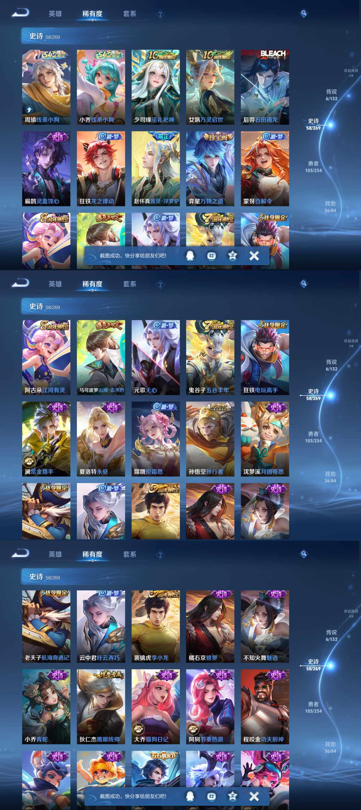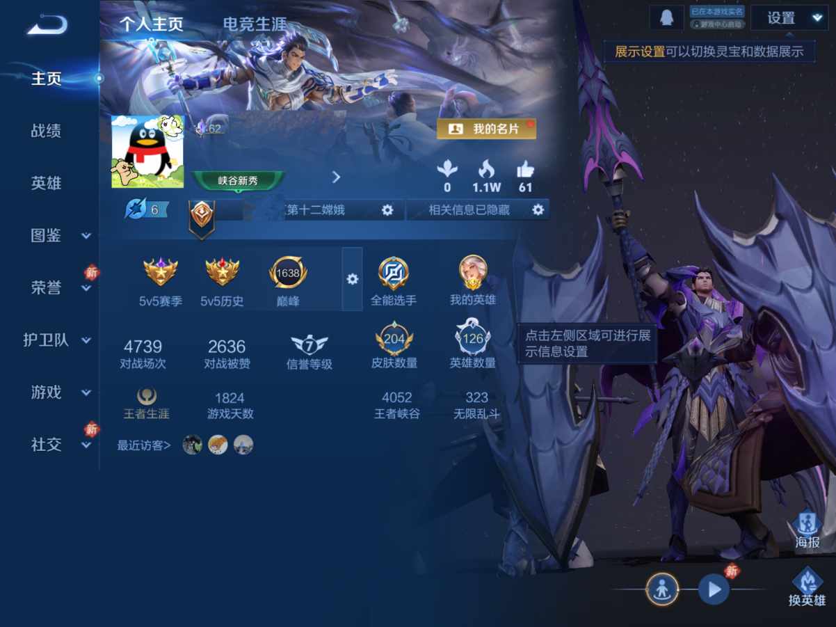 贵族等级:v6皮肤数:206传说品质6 生肖限定2 珍品传说1 英雄数:126