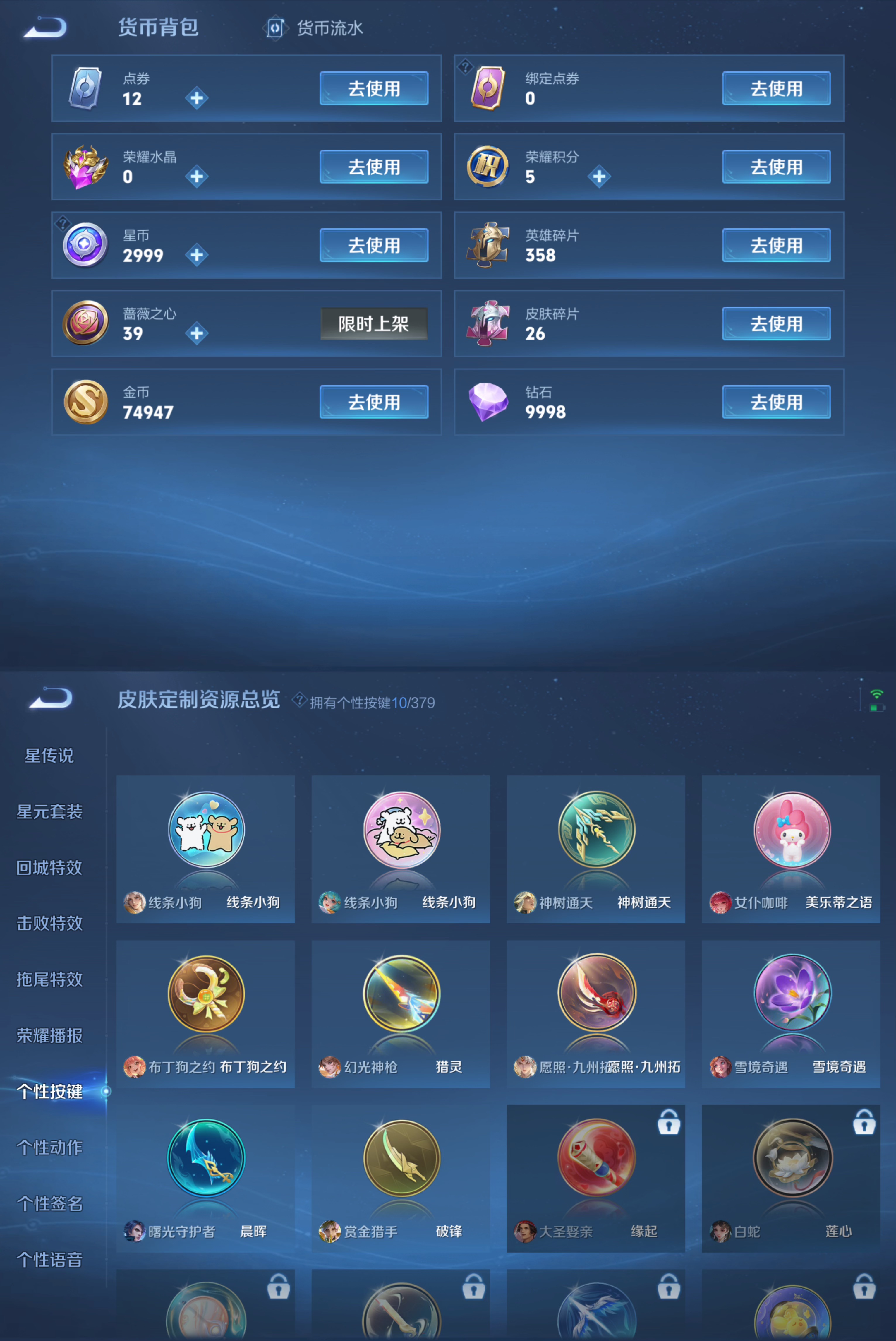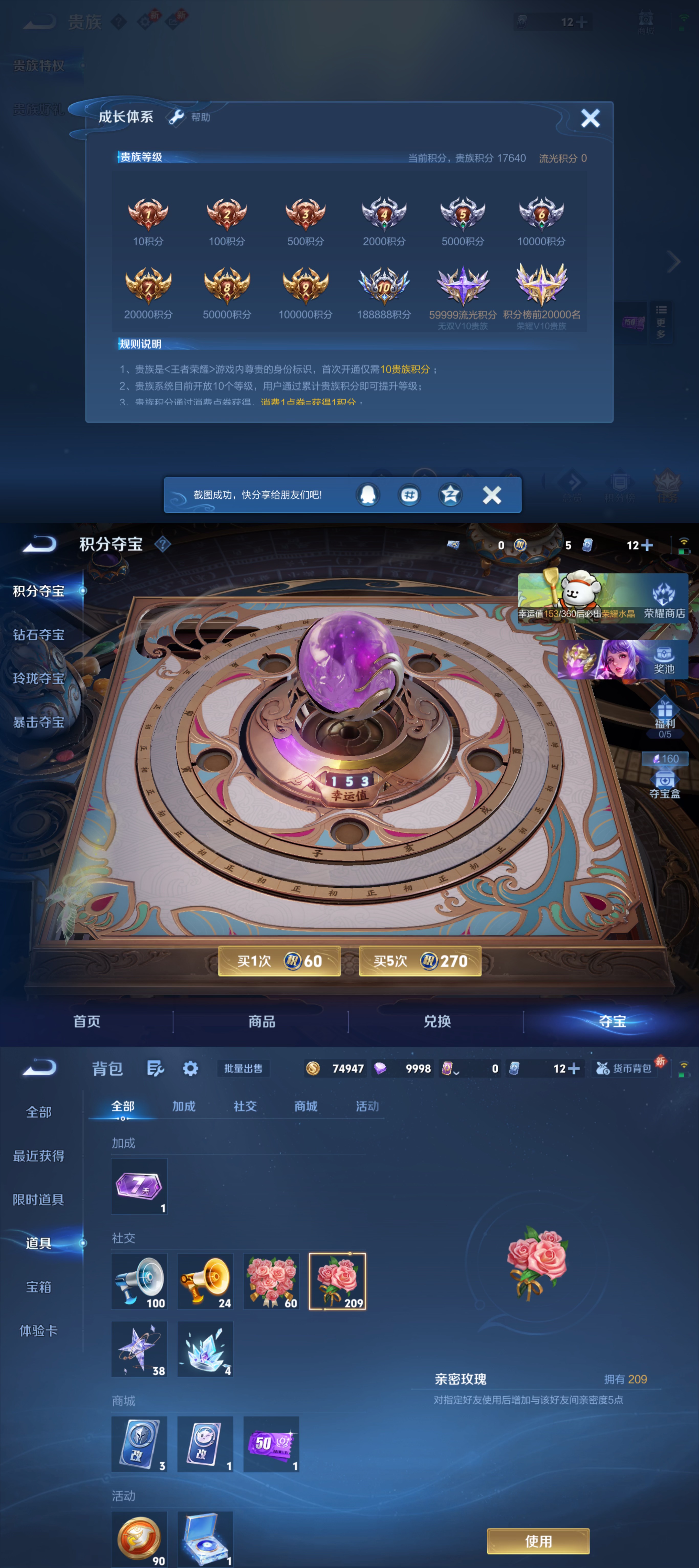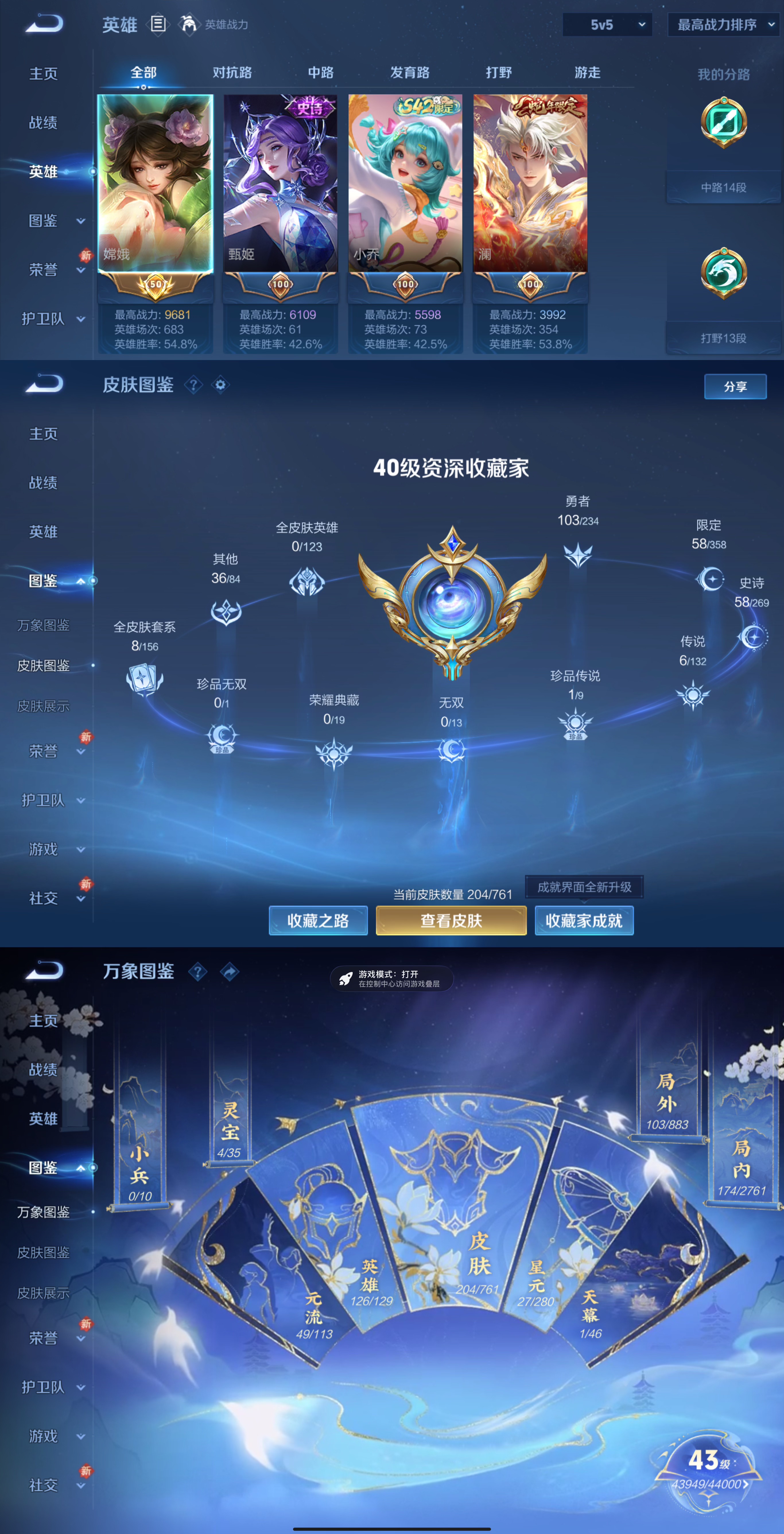 贵族等级:v6皮肤数:206传说品质6 生肖限定2 珍品传说1 英雄数:126