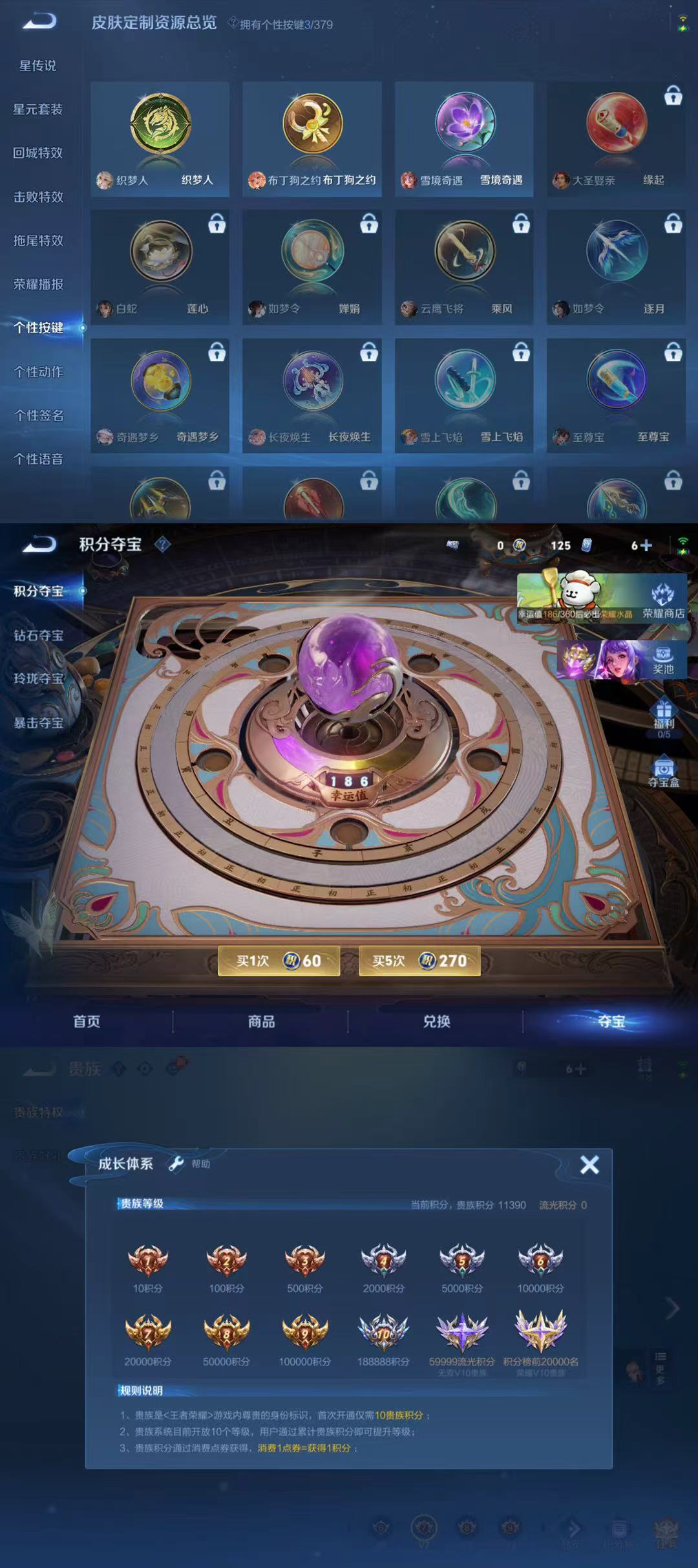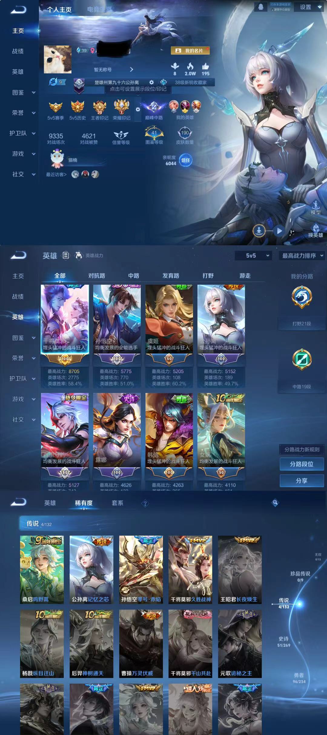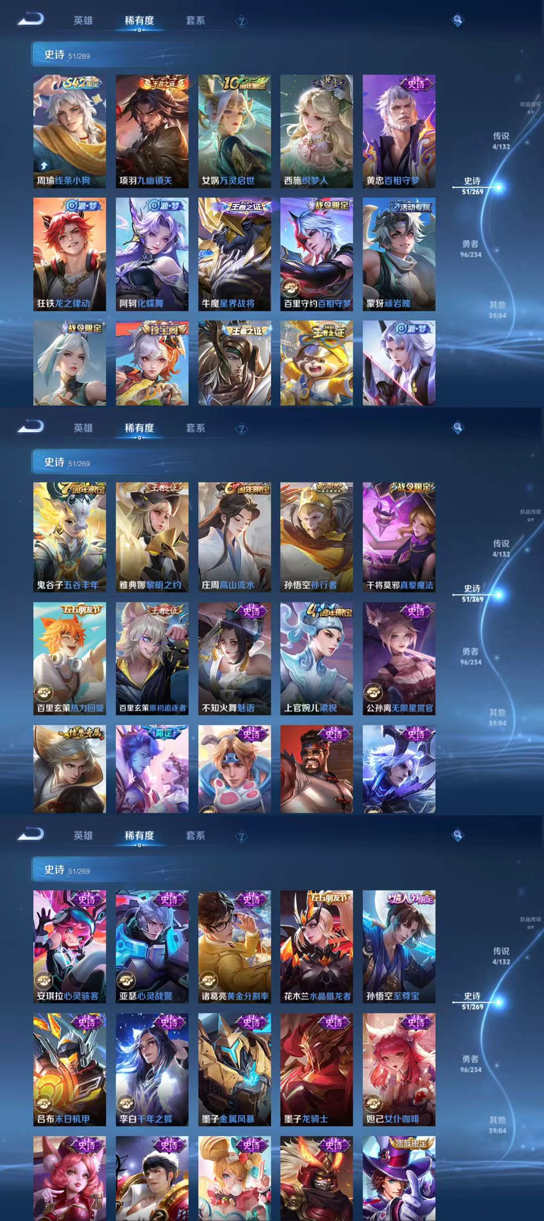 贵族等级:v4皮肤数:190情人节限定1 传说品质4 英雄数:126