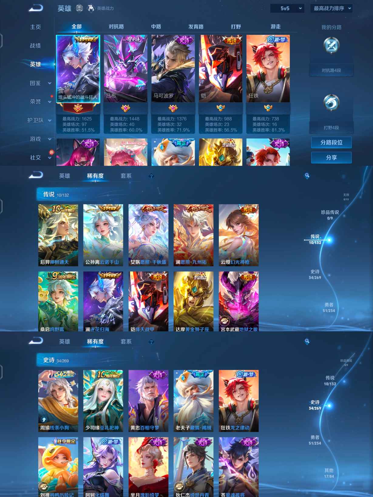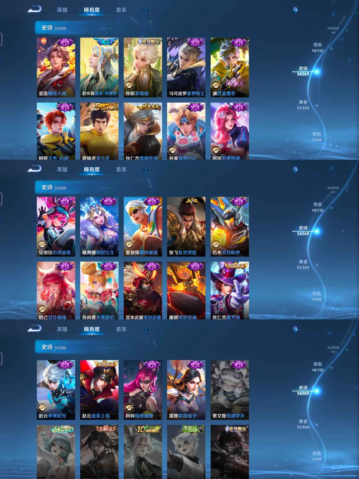 贵族等级:v6皮肤数:112传说品质10 生肖限定2 英雄数:104