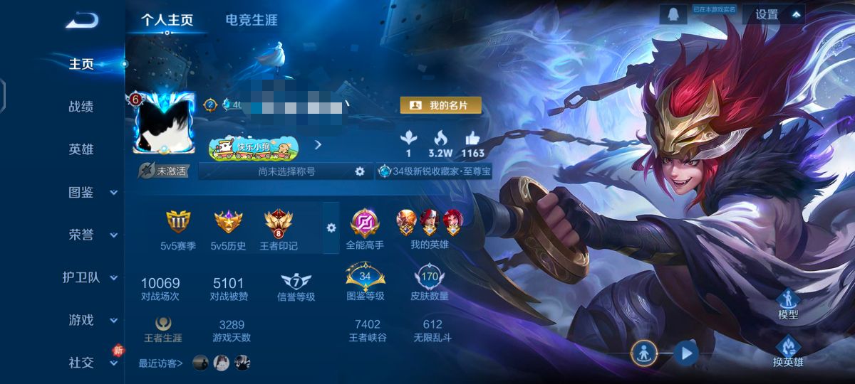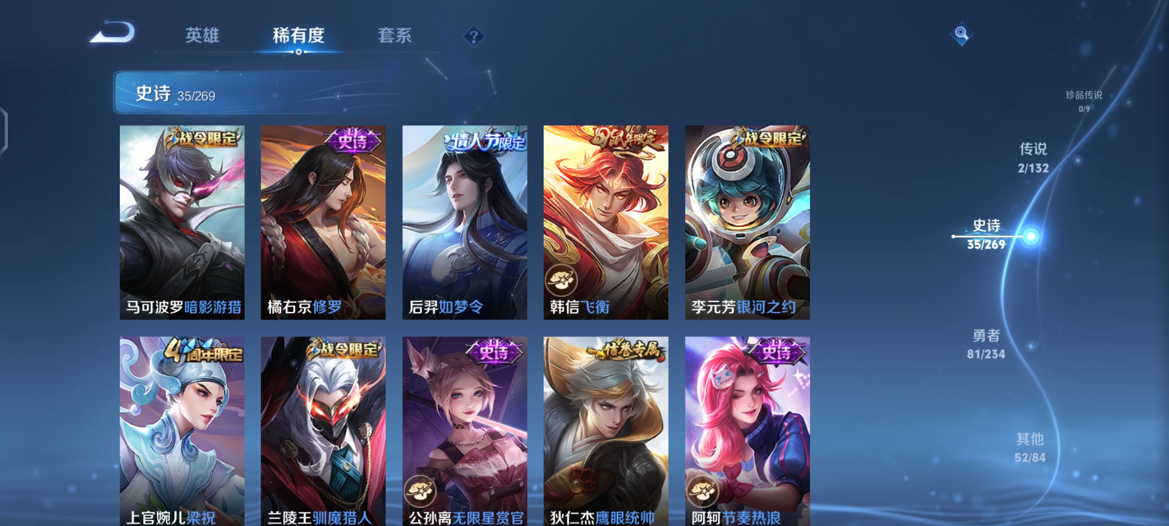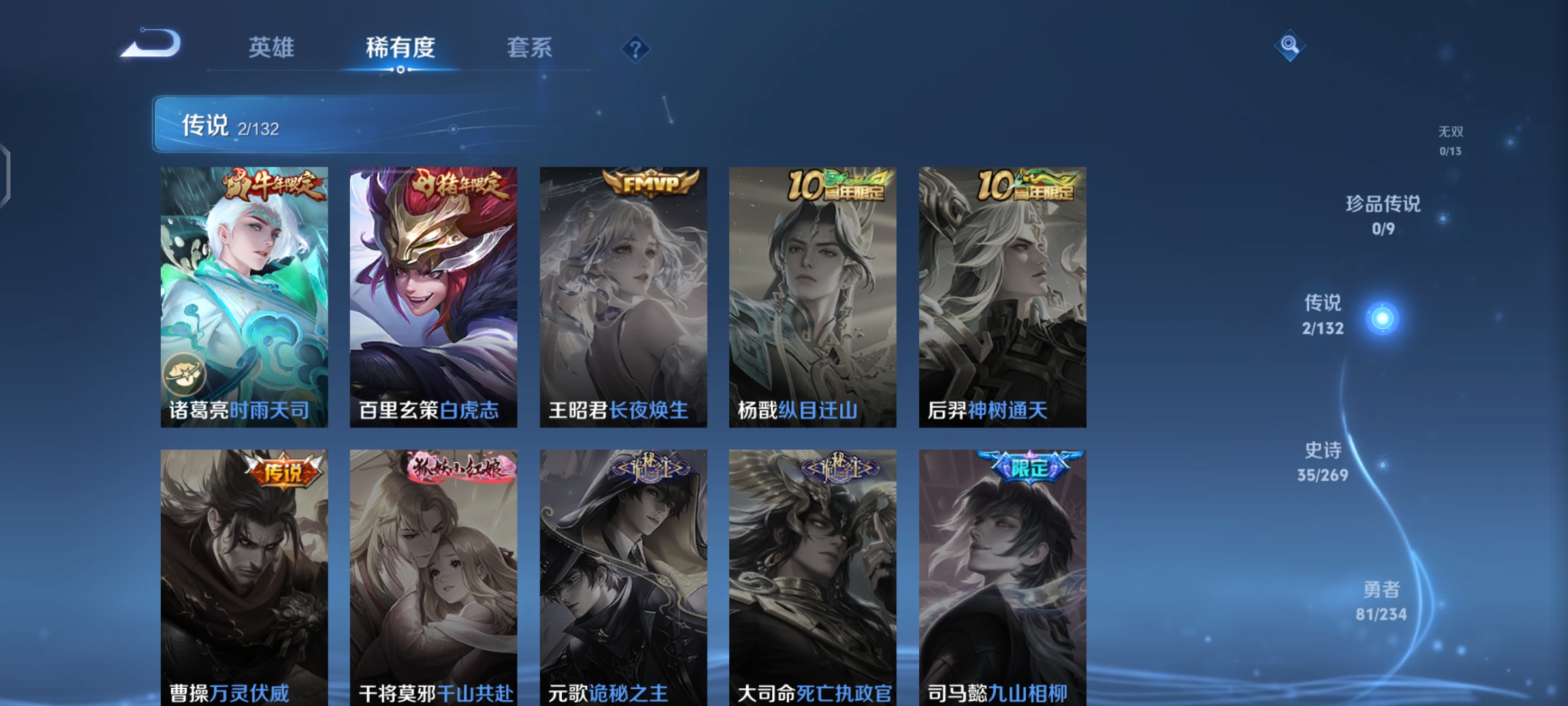 贵族等级:v6皮肤数:170情人节限定2 传说品质2 生肖限定3 英雄数:126