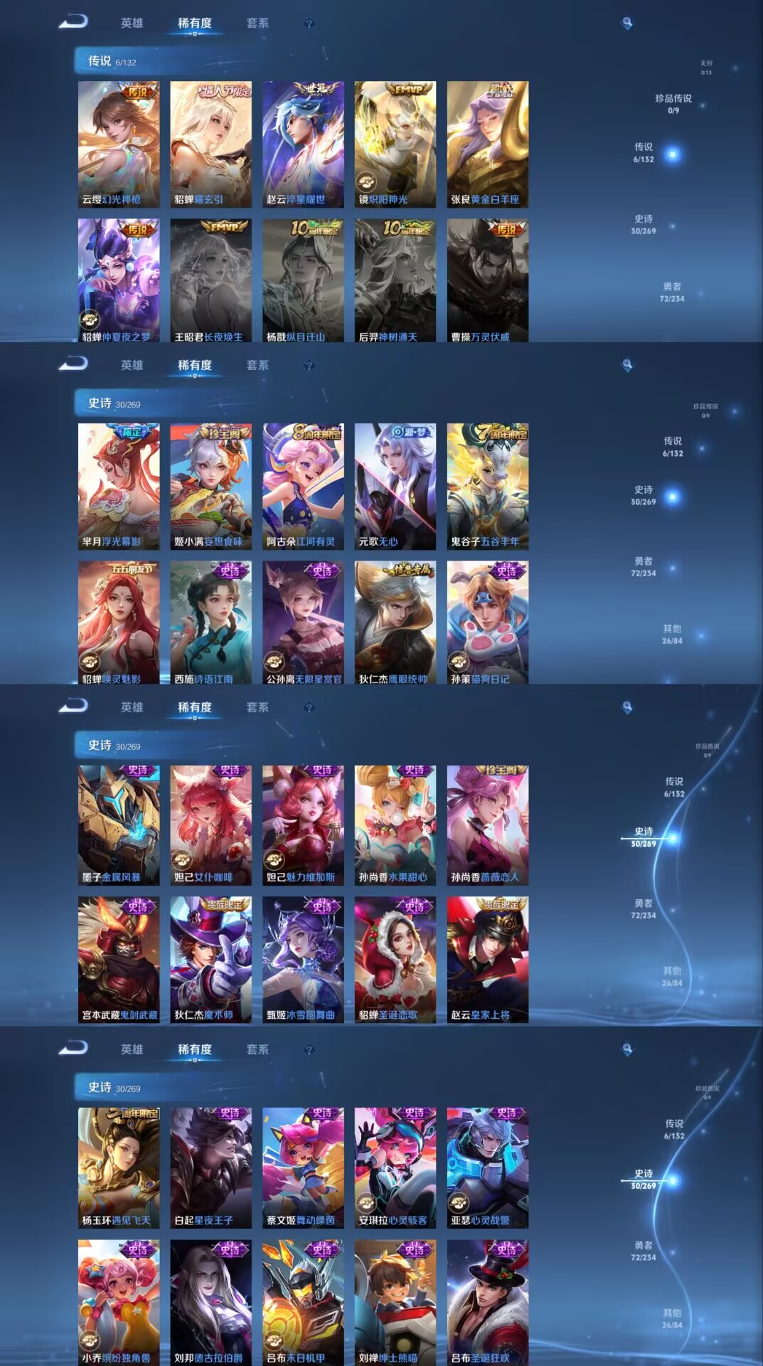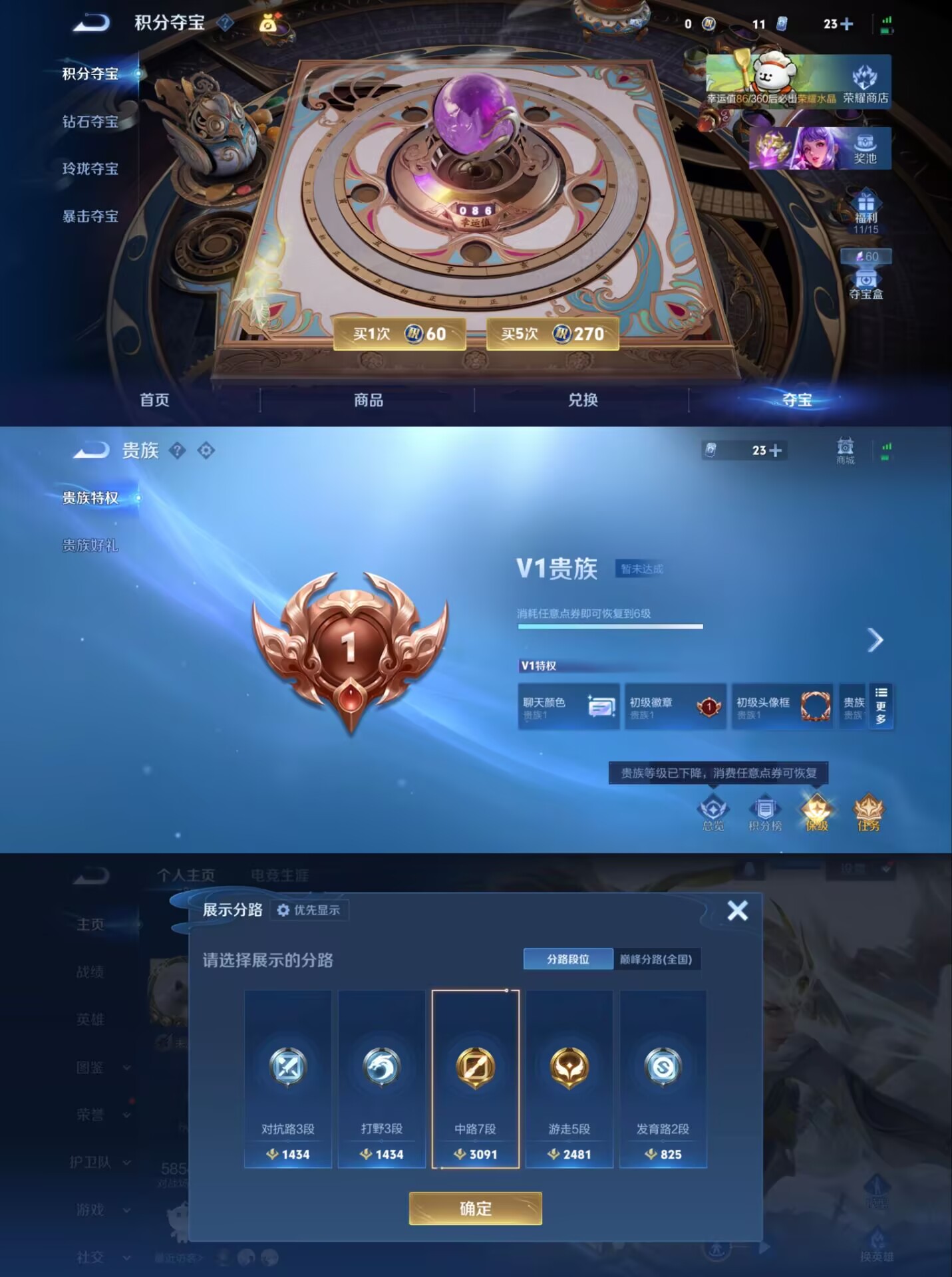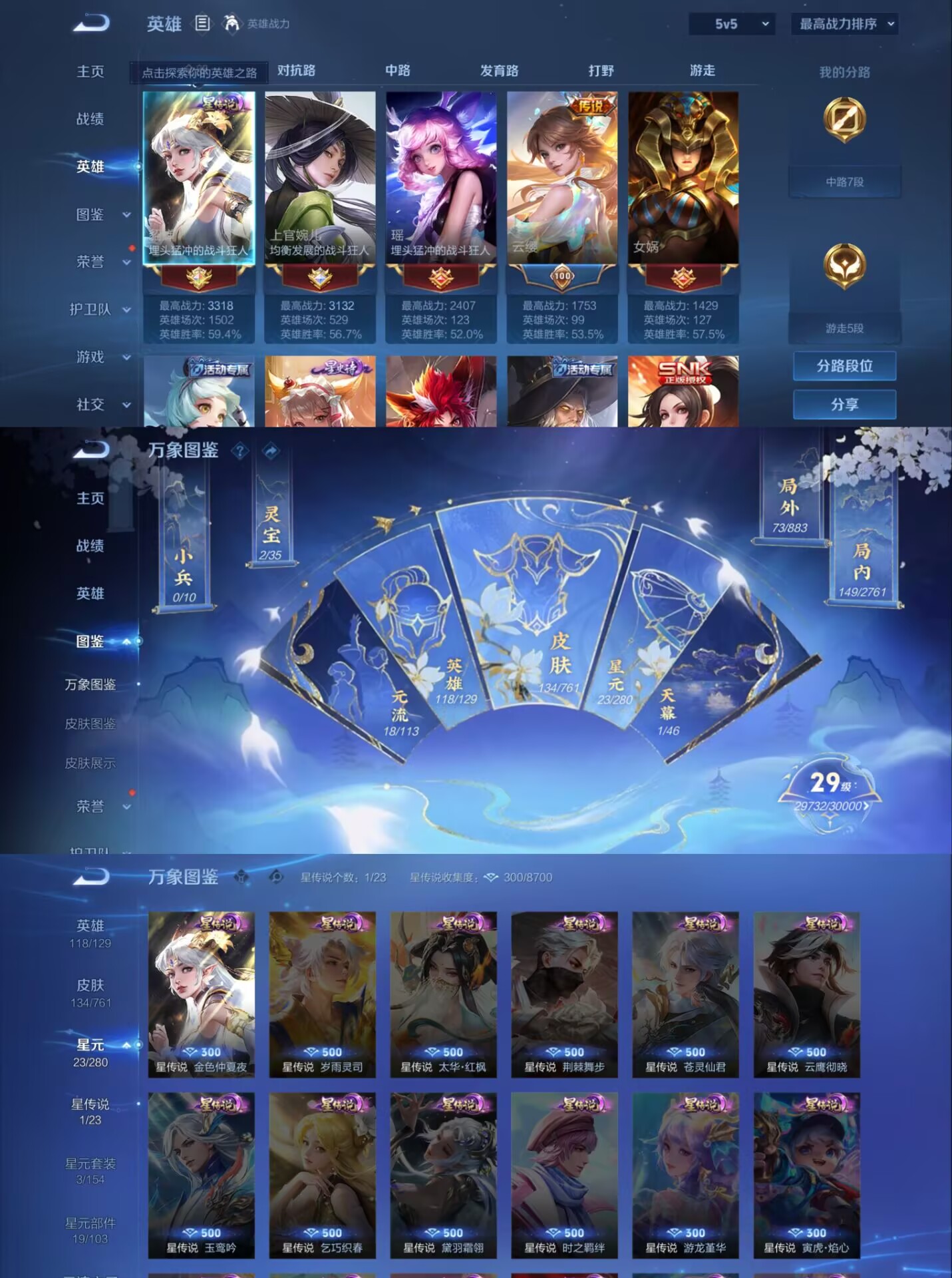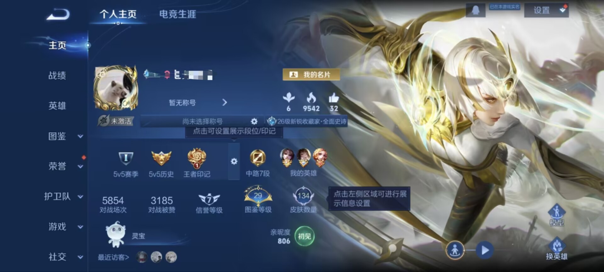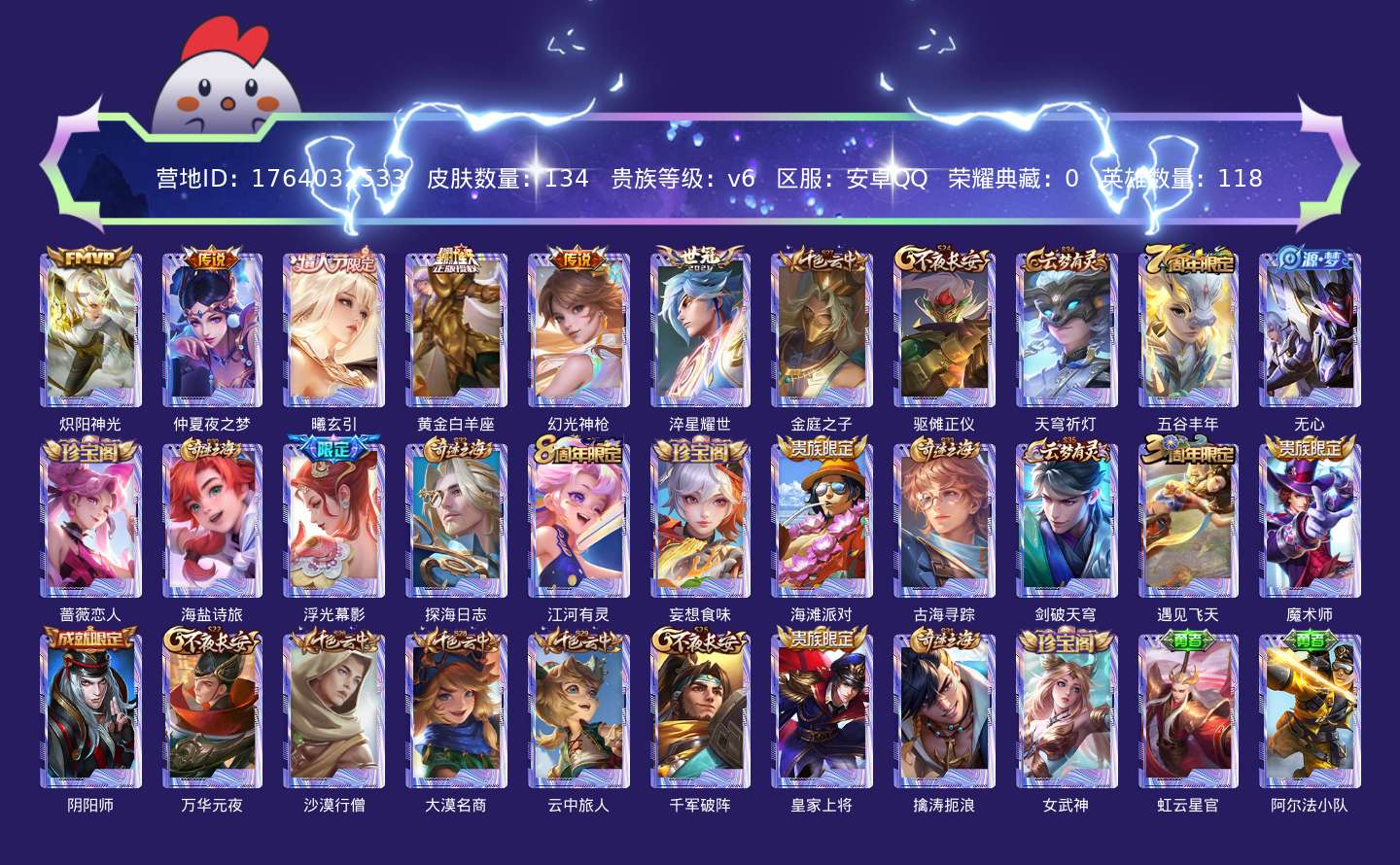贵族等级:v6皮肤数:134传说品质6 情人节限定1 英雄数:118