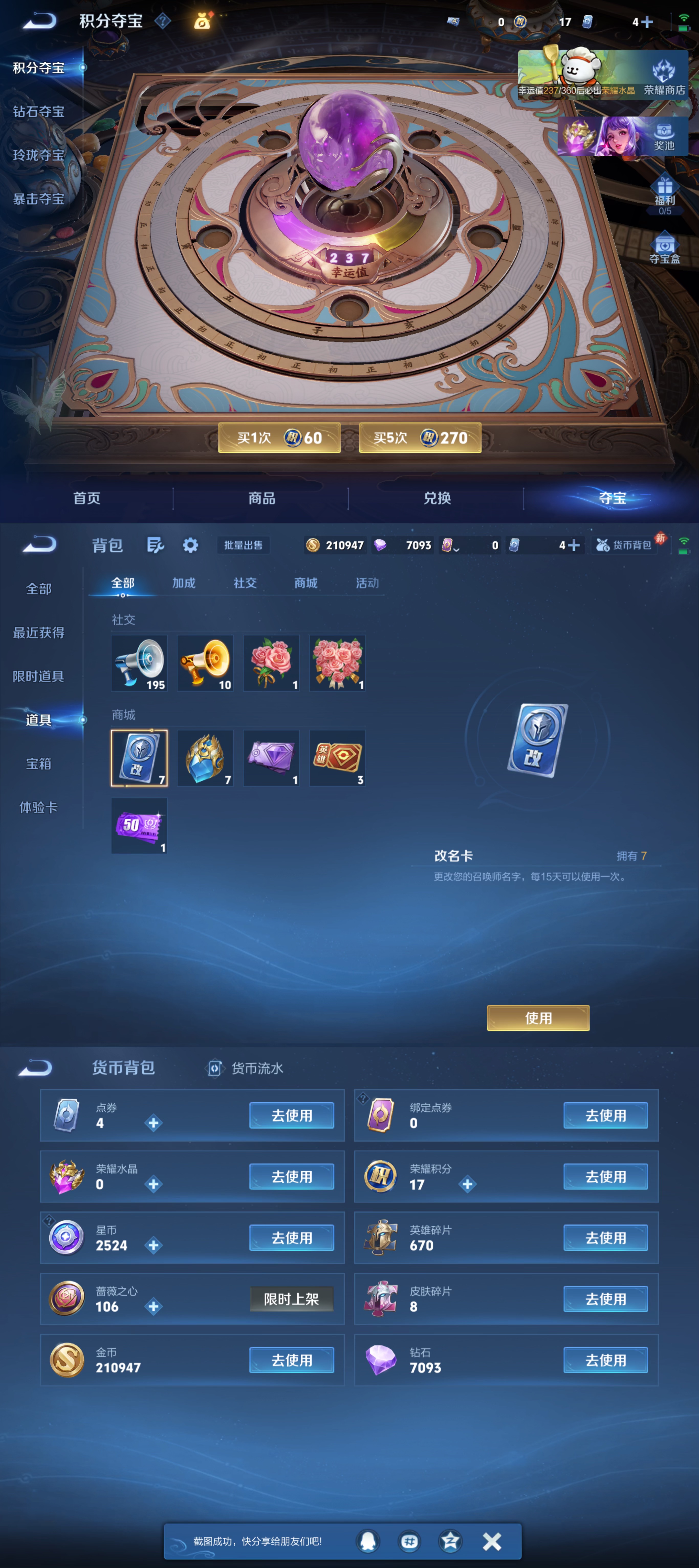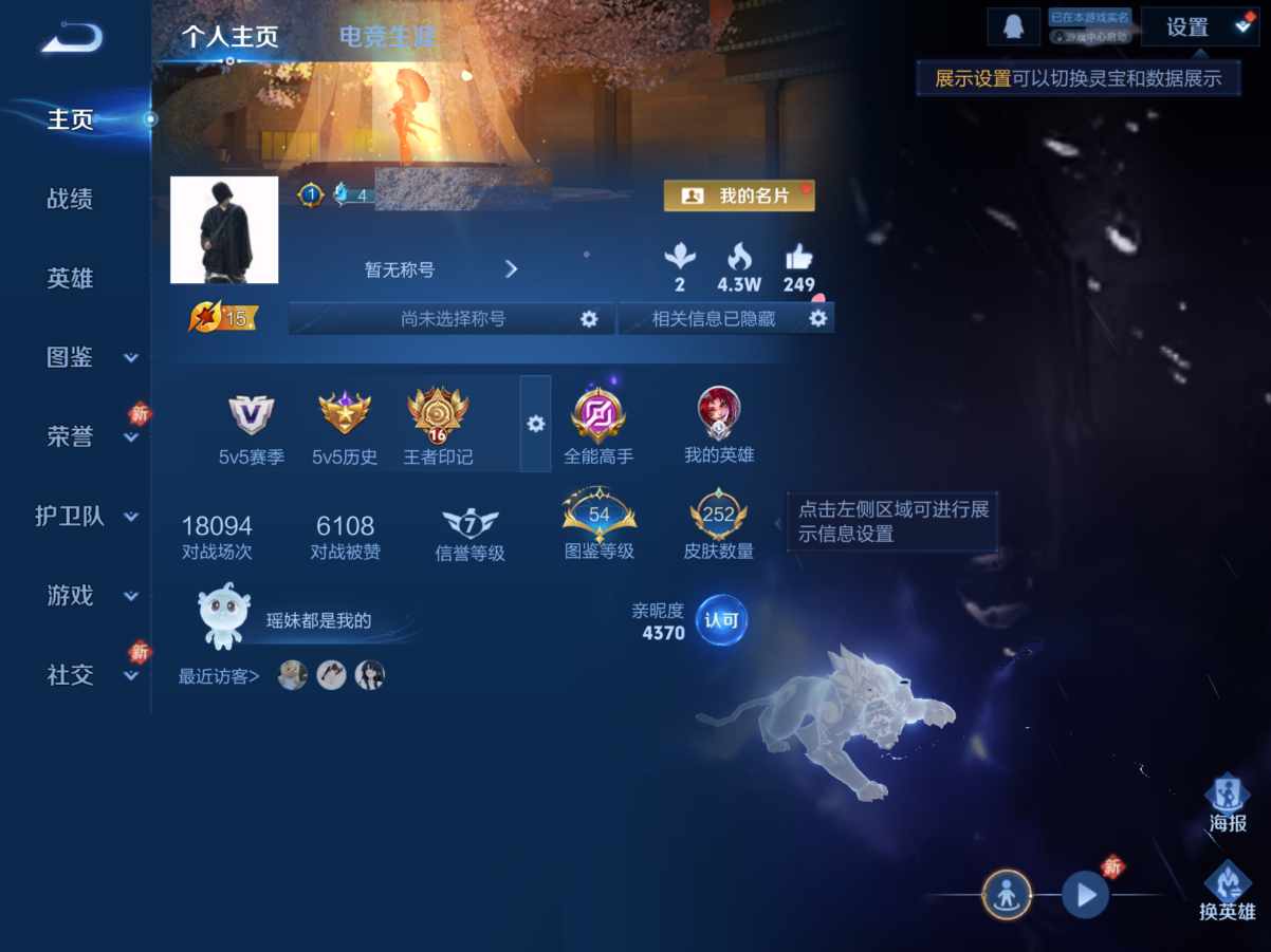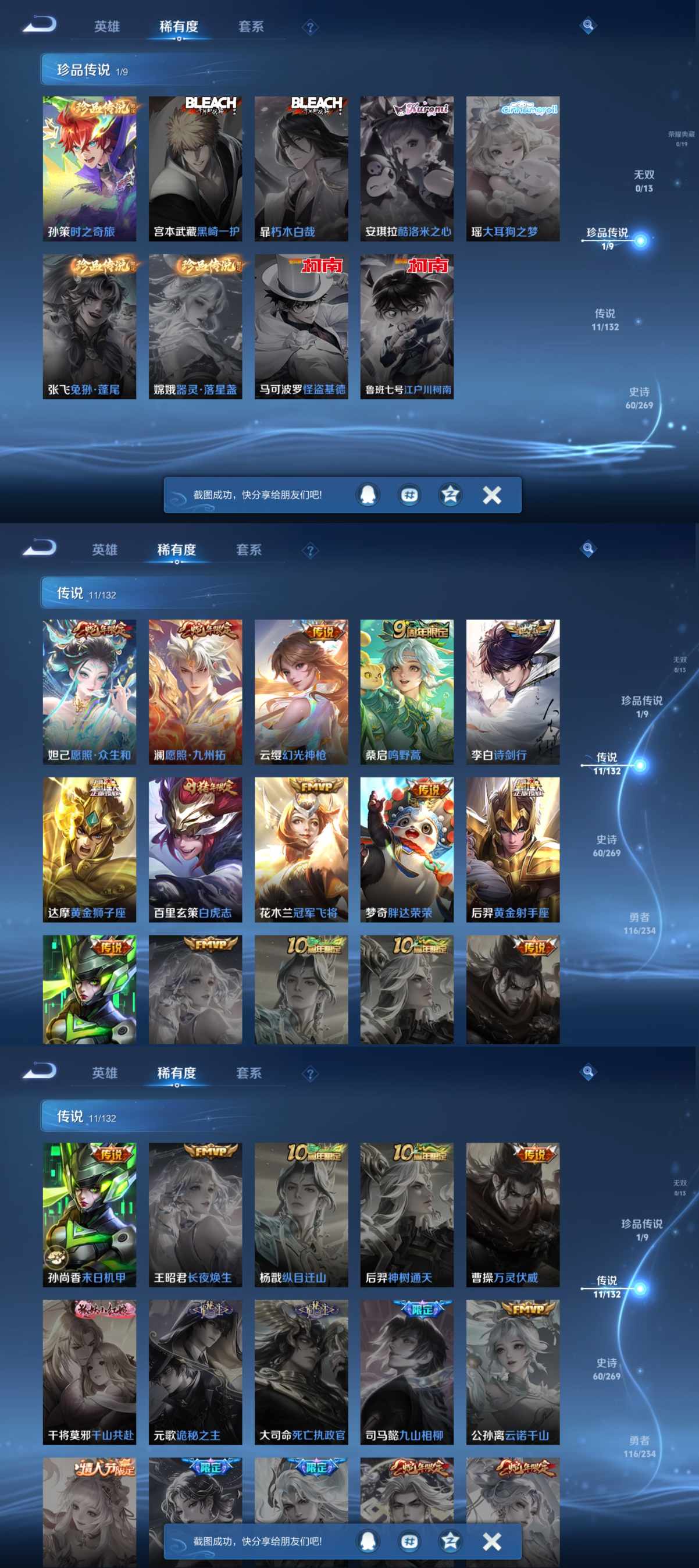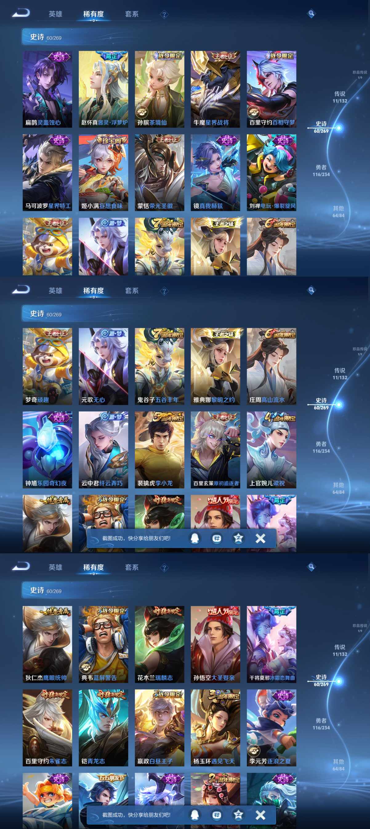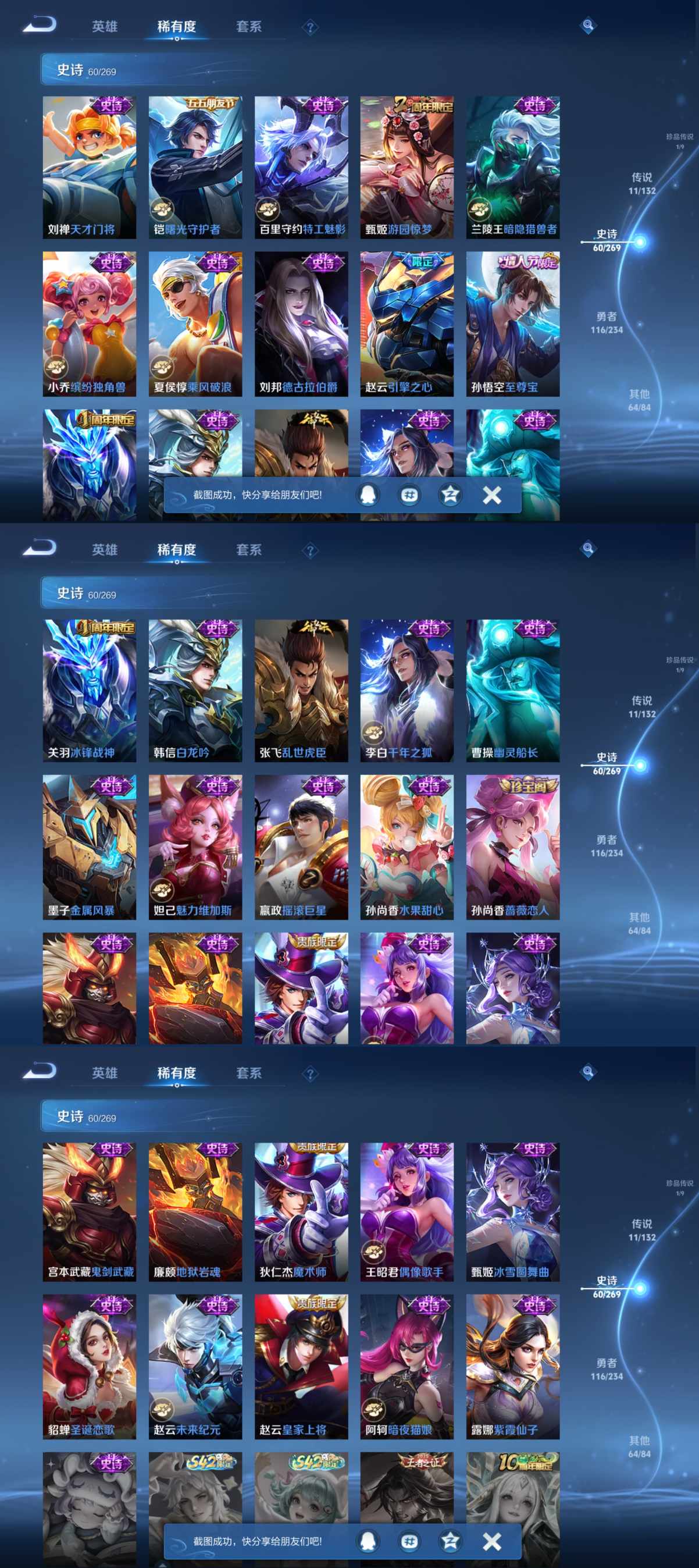 贵族等级:v7皮肤数:252传说品质11 生肖限定6 情人节限定2 珍品传说1 英雄数:128