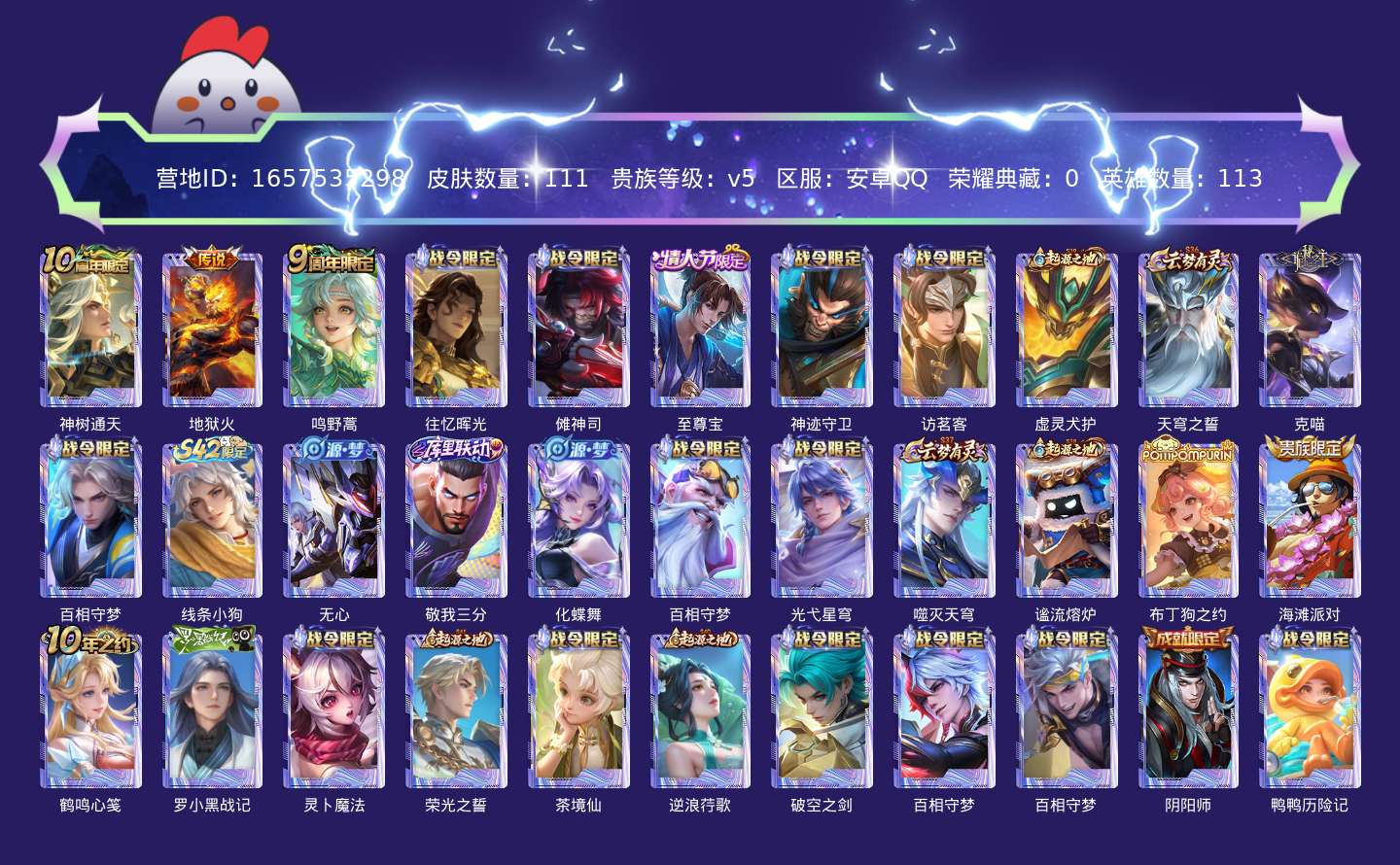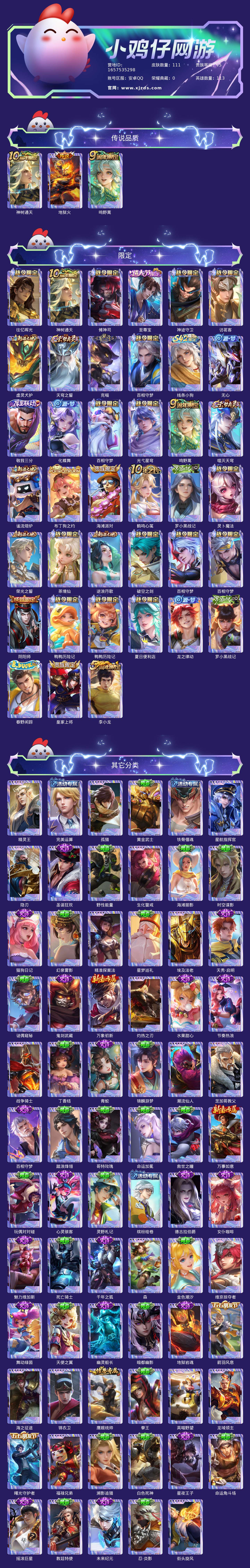 贵族等级:v5皮肤数:111传说品质3 情人节限定1 英雄数:113