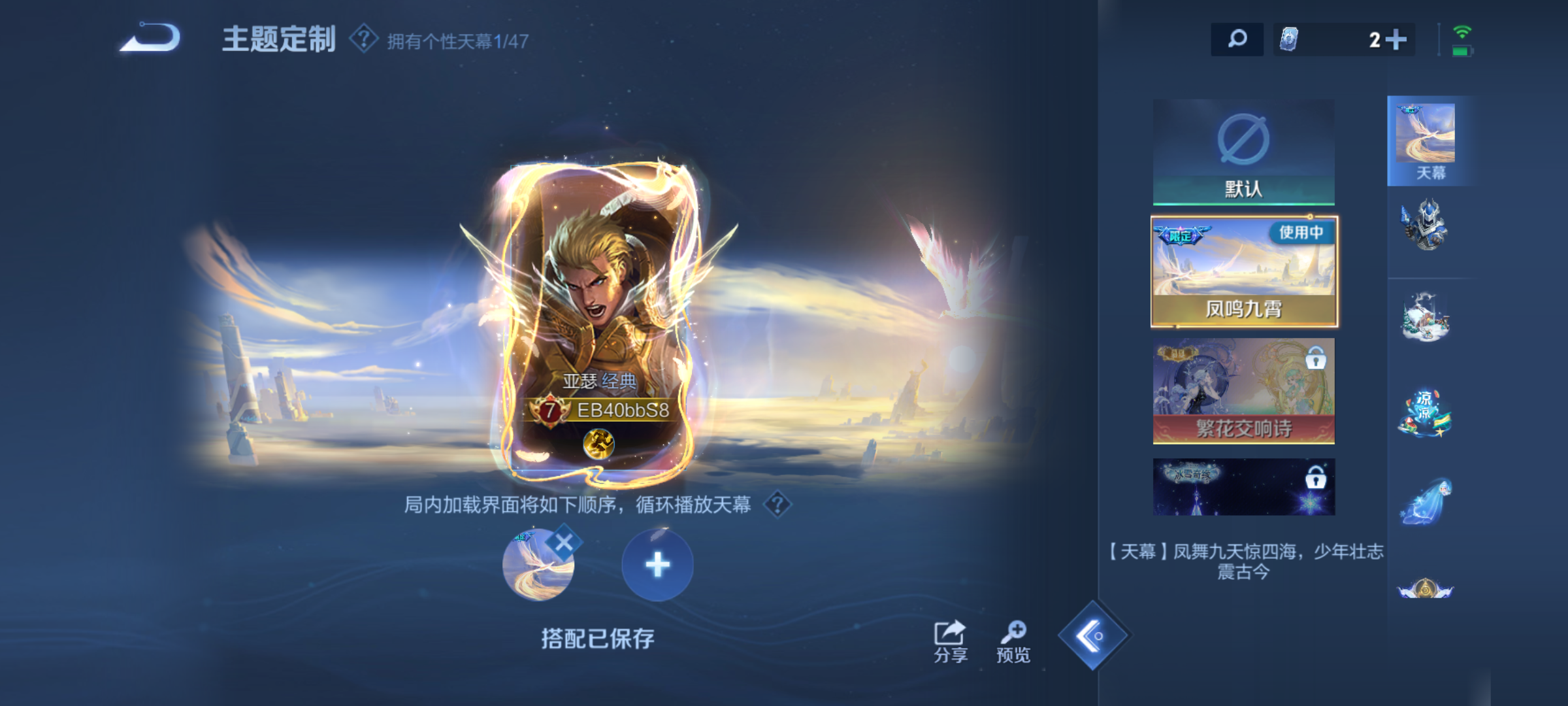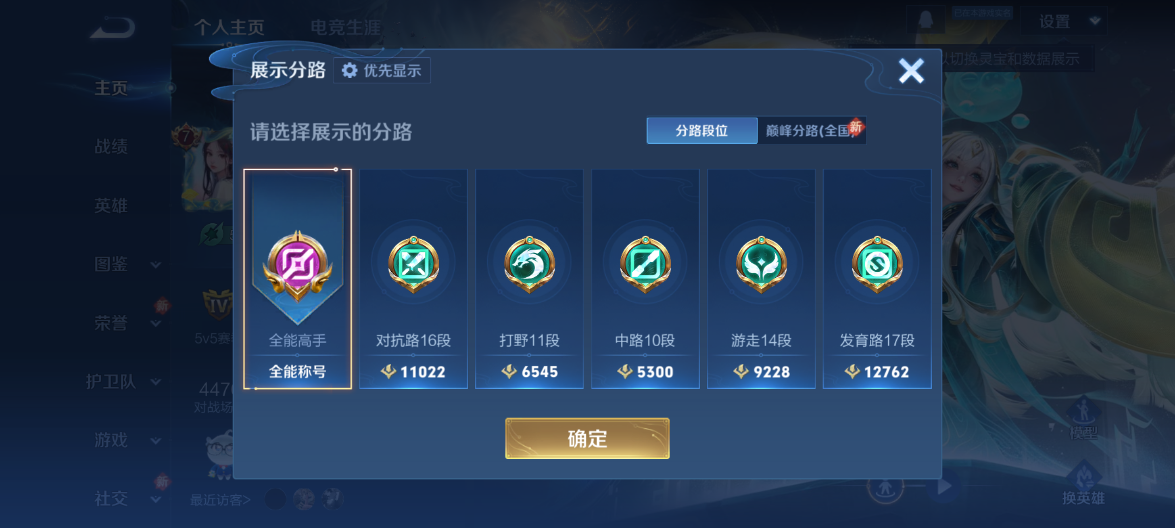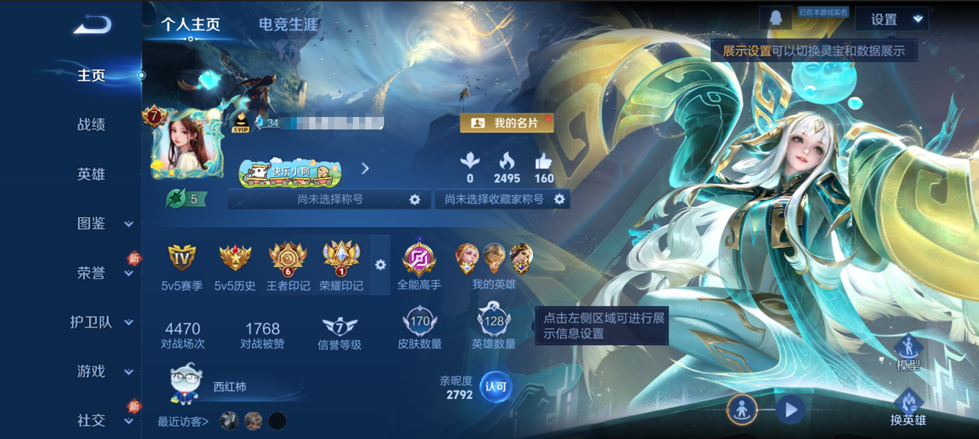 贵族等级:v7皮肤数:170情人节限定1 传说品质8 生肖限定3 荣耀典藏1 英雄数:128