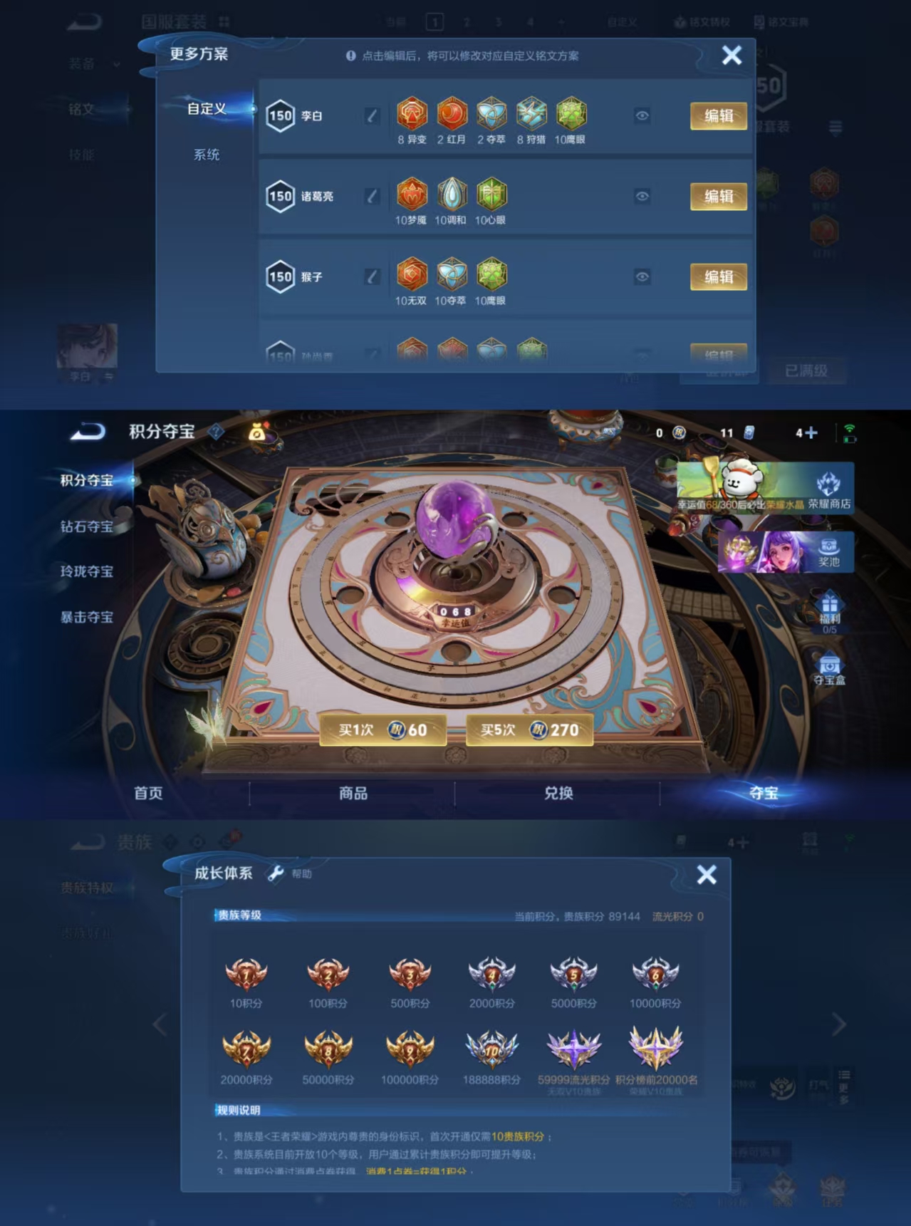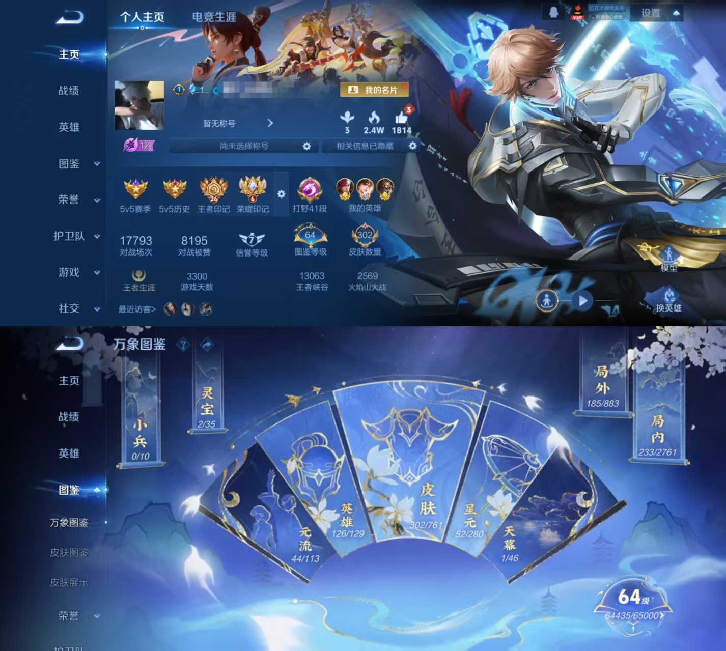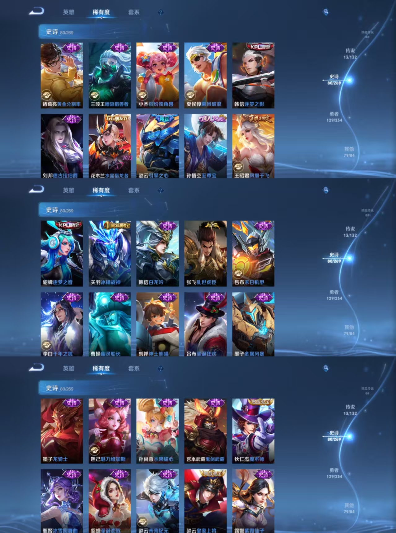 贵族等级:v8皮肤数:302情人节限定4 传说品质13 生肖限定5 荣耀典藏1 英雄数:126