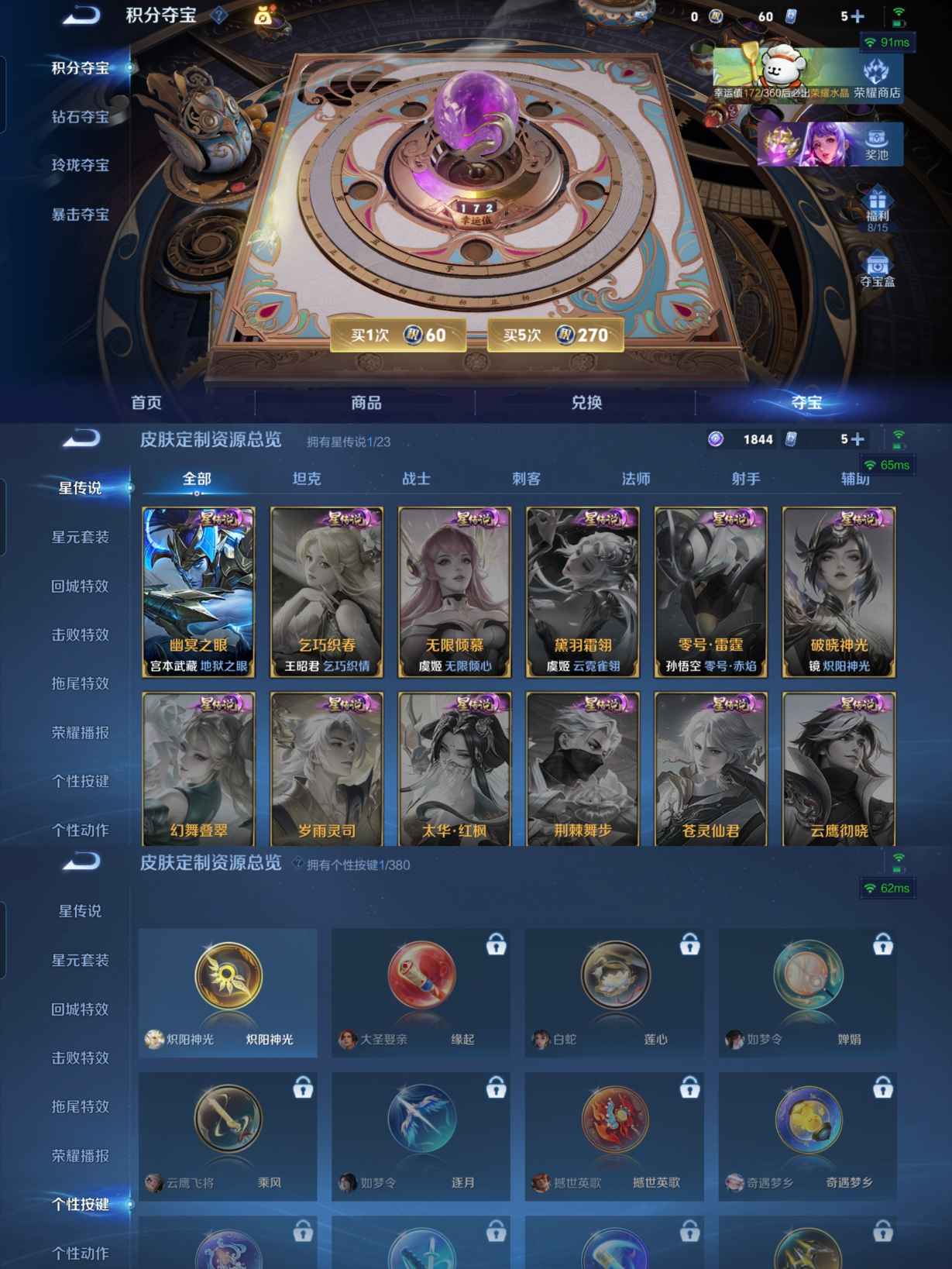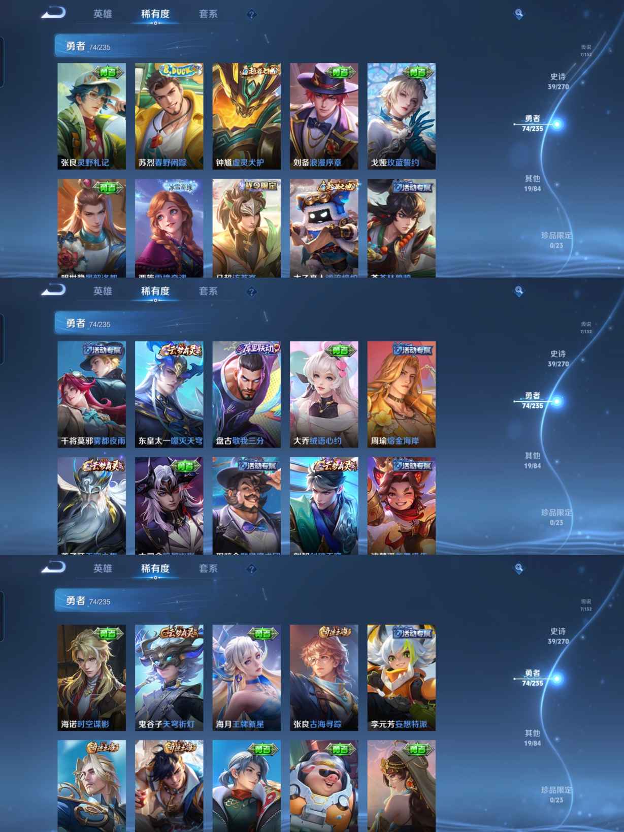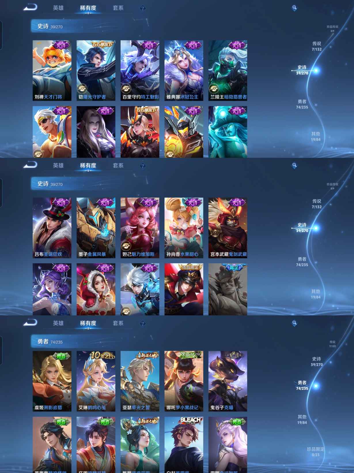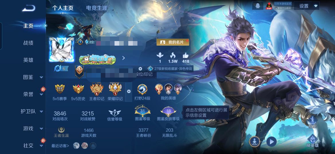 贵族等级:v5皮肤数:140传说品质7 生肖限定1 英雄数:125