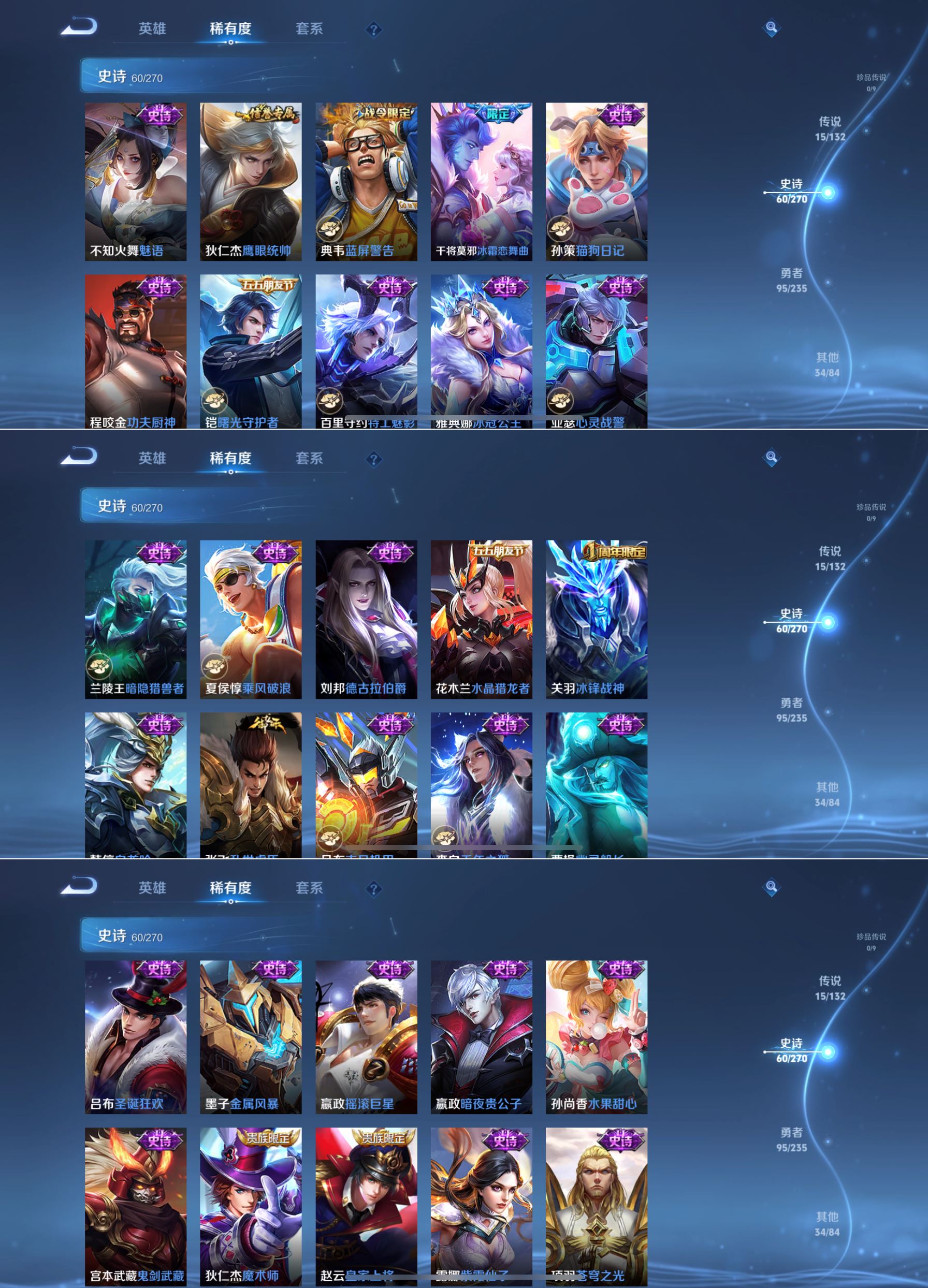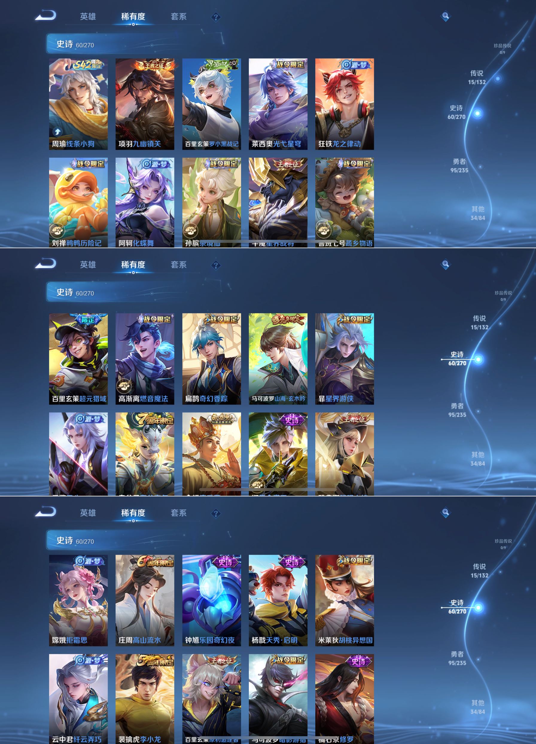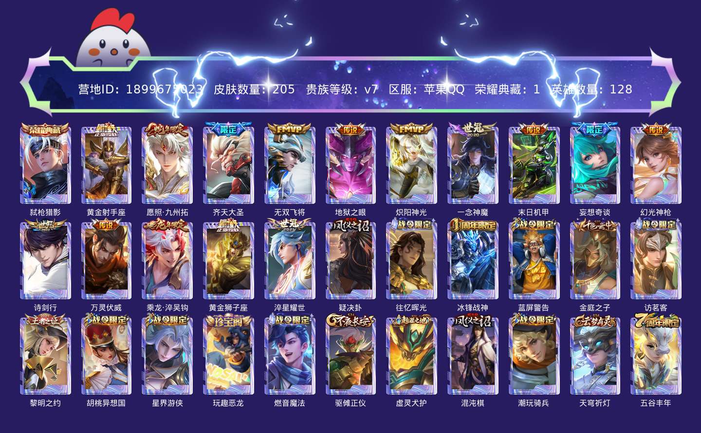 贵族等级:v7皮肤数:207传说品质15 生肖限定3 荣耀典藏1 英雄数:128