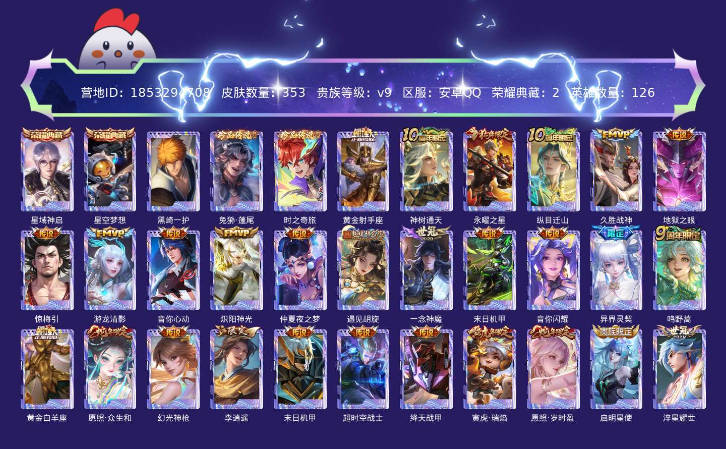 传说品质_后羿_黄金射手座传说品质_后羿_神树通天传说品质_杨戬_永曜之星传说品质_杨戬_纵目迁山传说品质_干将莫邪_久胜战神传说品质_宫本武藏_地狱之眼传说品质_宫本武藏_惊梅引传说品质_西施_游龙清影传说品质_周瑜_音你心动传说品质_镜_炽阳神光传说品质_貂蝉_仲夏夜之梦传说品质_貂蝉_遇见胡旋传说品质_李信_一念神魔传说品质_孙尚香_末日机甲传说品质_孙尚香_音你闪耀传说品质_孙尚香_异界灵契传说品质_桑启_鸣野蒿传说品质_张良_黄金白羊座传说品质_妲己_愿照·众生和传说品质_云缨_幻光神枪传说品质_曜_李逍遥 传说品质_孙策_末日机甲传说品质_狄仁杰_超时空战士传说品质_铠_绛天战甲传说品质_鲁班七号_寅虎·瑞焰传说品质_虞姬_愿照·岁时盈传说品质_虞姬_启明星使传说品质_赵云_淬星耀世传说品质_裴擒虎_寅虎·赤拳传说品质_王昭君_乞巧织情
