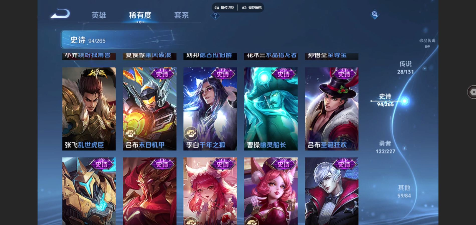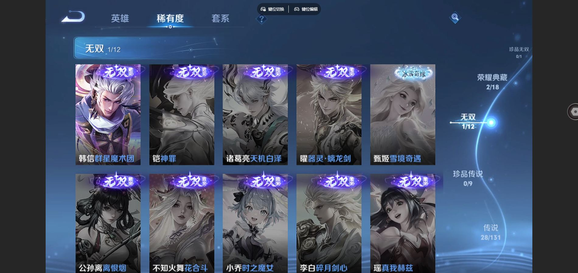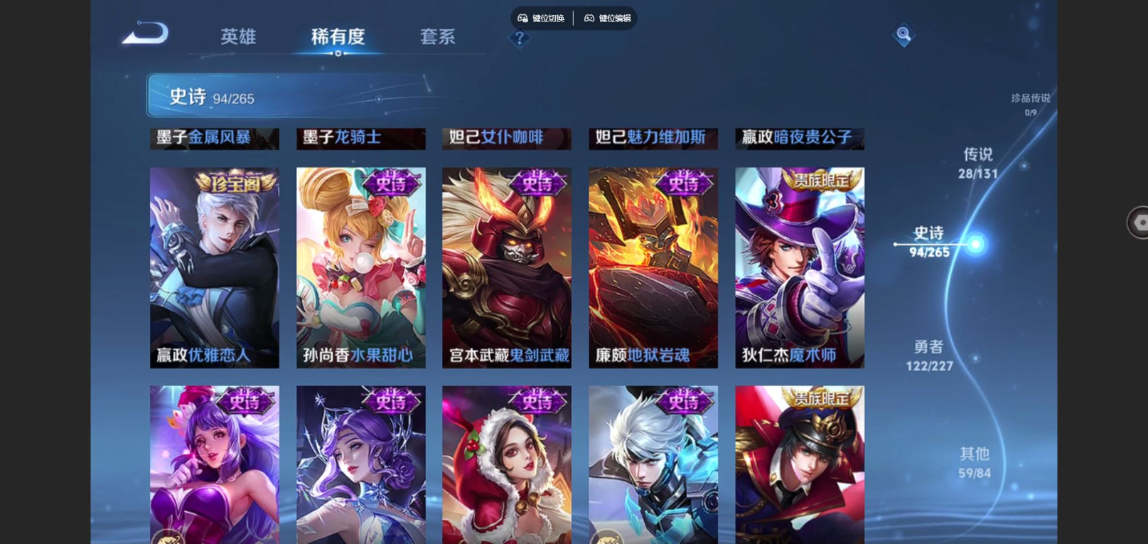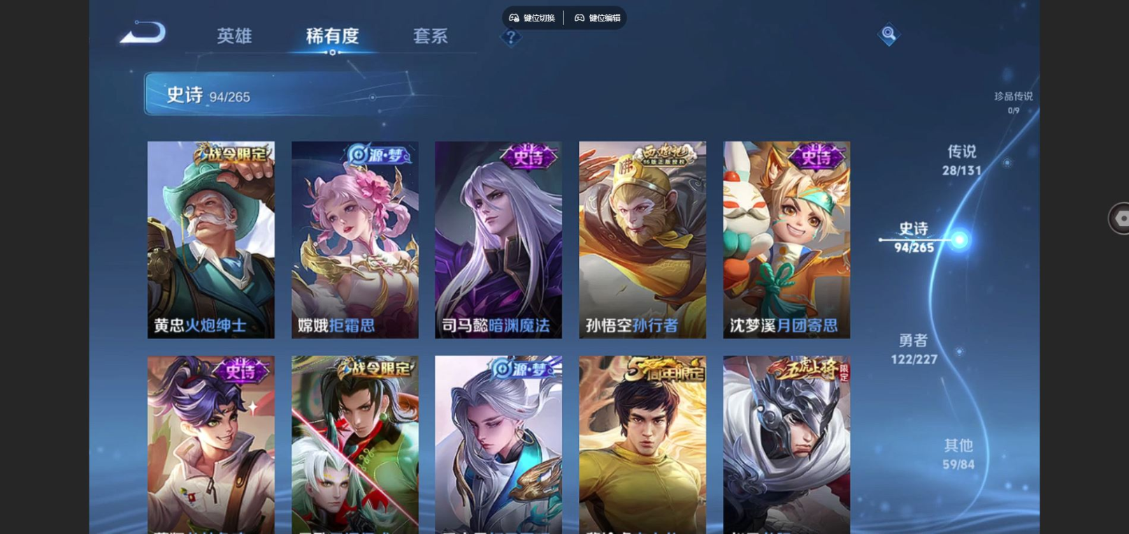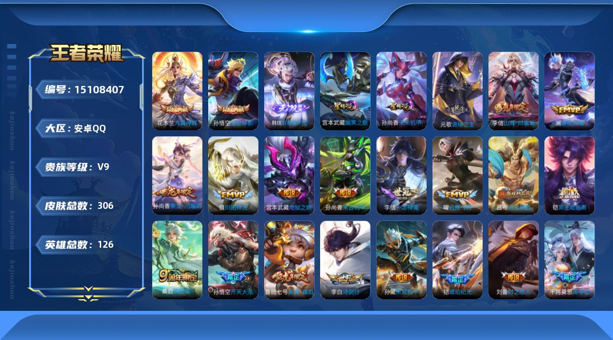 传说品质_澜_逐花归海传说品质_孙悟空_零号·赤焰传说品质_孙悟空_齐天大圣传说品质_吕布_遇见神鼓传说品质_干将莫邪_画中仙传说品质_宫本武藏_地狱之眼传说品质_元歌_诡秘之主传说品质_花木兰_燃星之曲传说品质_镜_炽阳神光传说品质_李信_山海·炽霜斩传说品质_李信_一念神魔传说品质_孙尚香_末日机甲传说品质_孙尚香_乘龙·问璇玑传说品质_庄周_牧神诗旅传说品质_桑启_鸣野蒿传说品质_刘备_时之恋人传说品质_张良_黄金白羊座传说品质_马可波罗_妄想实况传说品质_李白_诗剑行传说品质_曜_云鹰飞将传说品质_孙策_末日机甲传说品质_狄仁杰_超时空战士传说品质_铠_绛天战甲传说品质_铠_琥珀纪元传说品质_铠_冥王哈迪斯传说品质_鲁班七号_寅虎·瑞焰传说品质_虞姬_启明星使传说品质_王昭君_乞巧织情