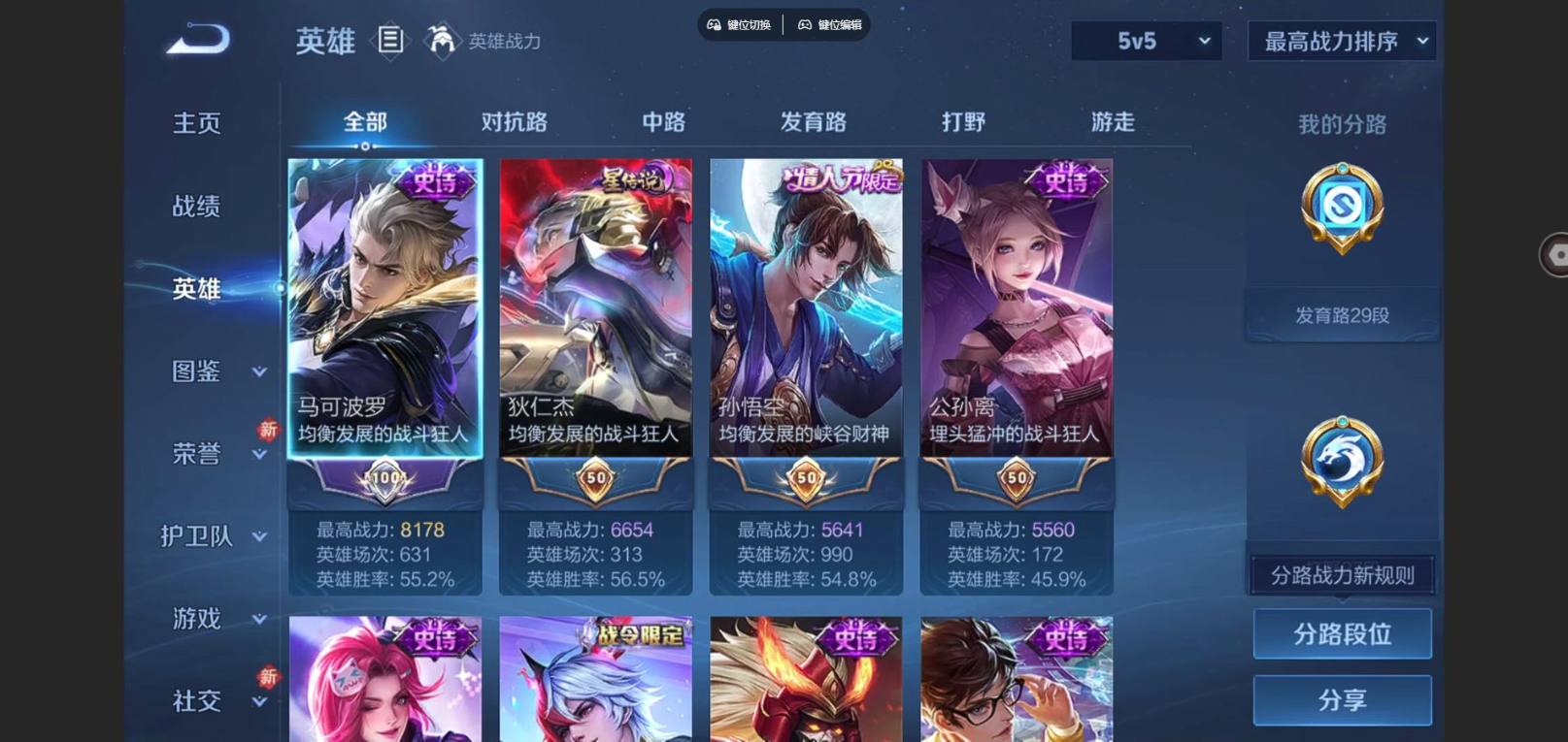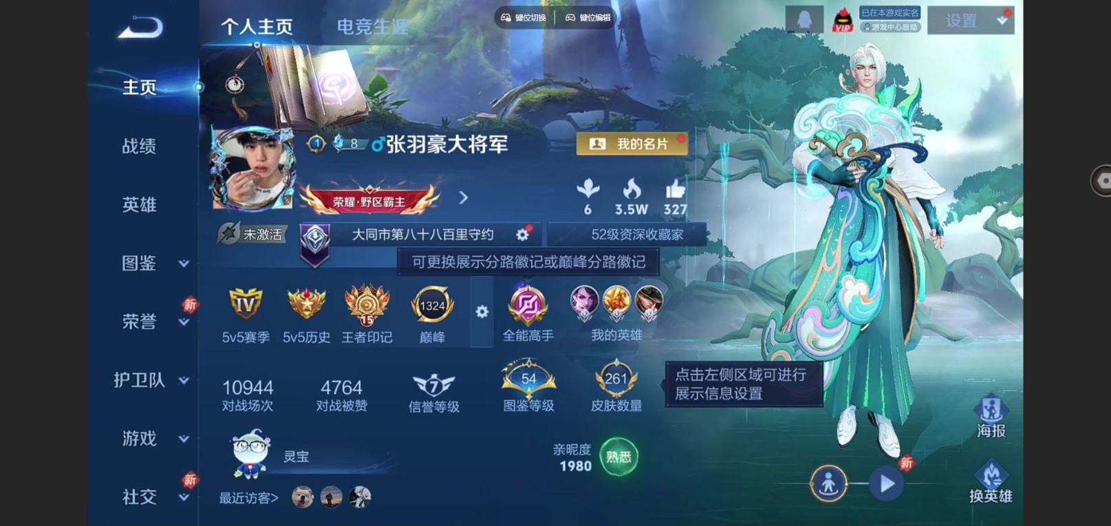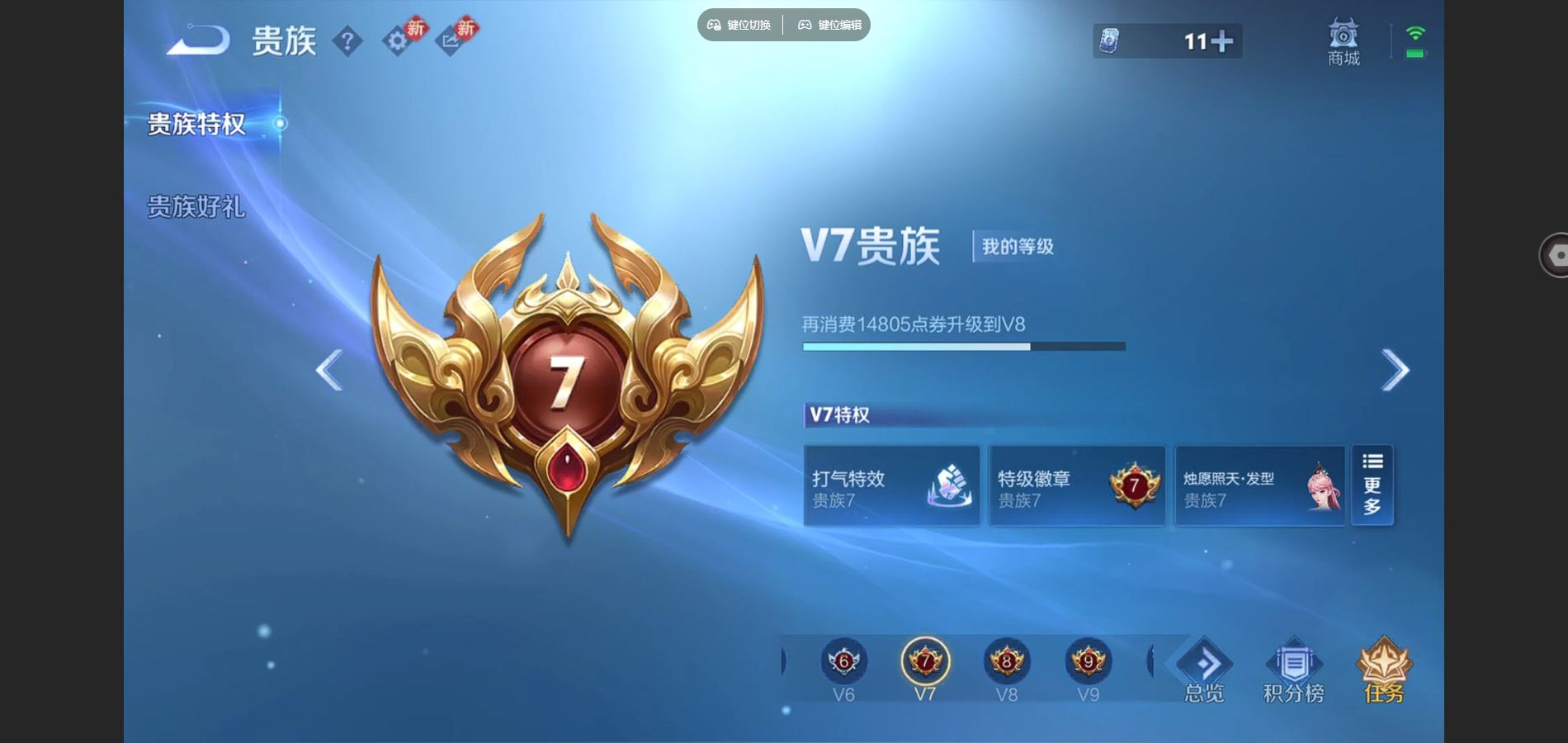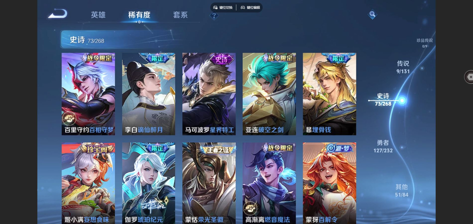 贵族等级:v7皮肤数:261传说品质9 生肖限定3 情人节限定2 荣耀典藏1 英雄数:127