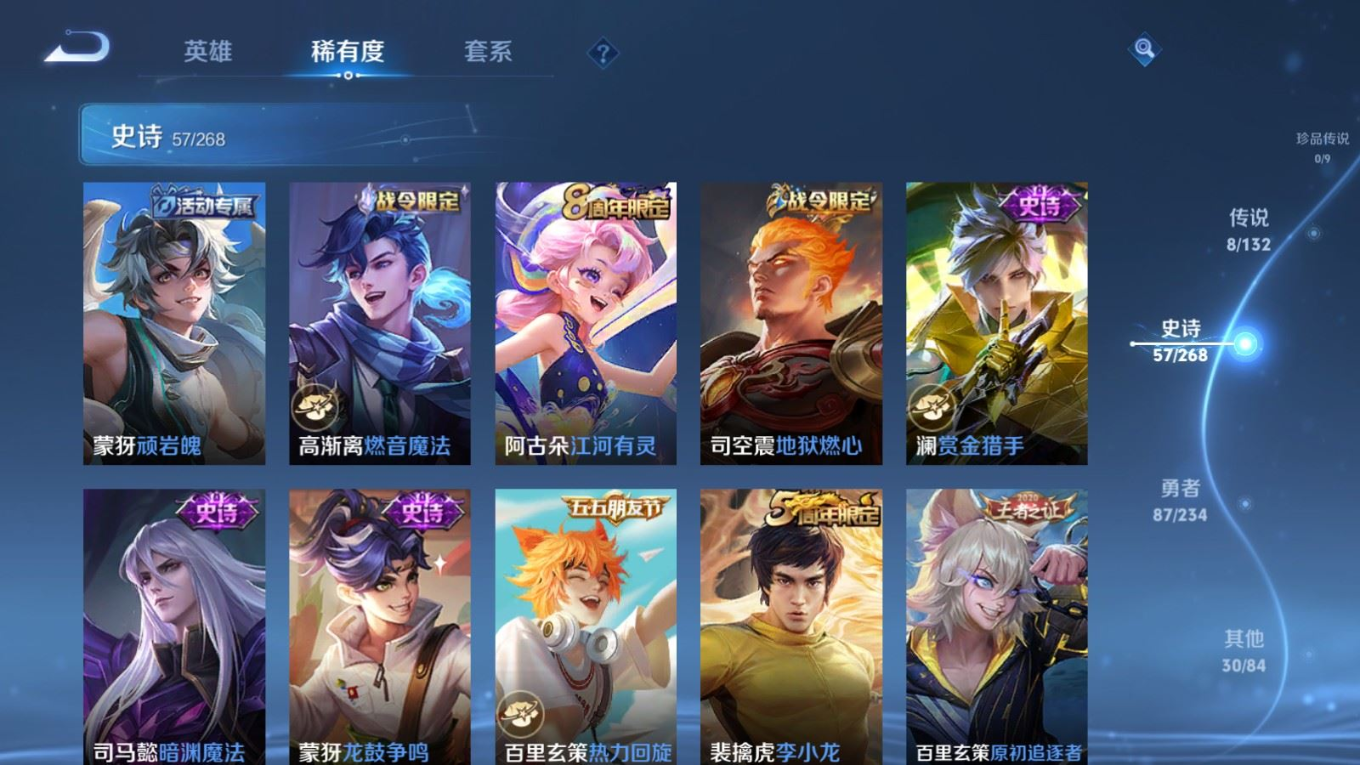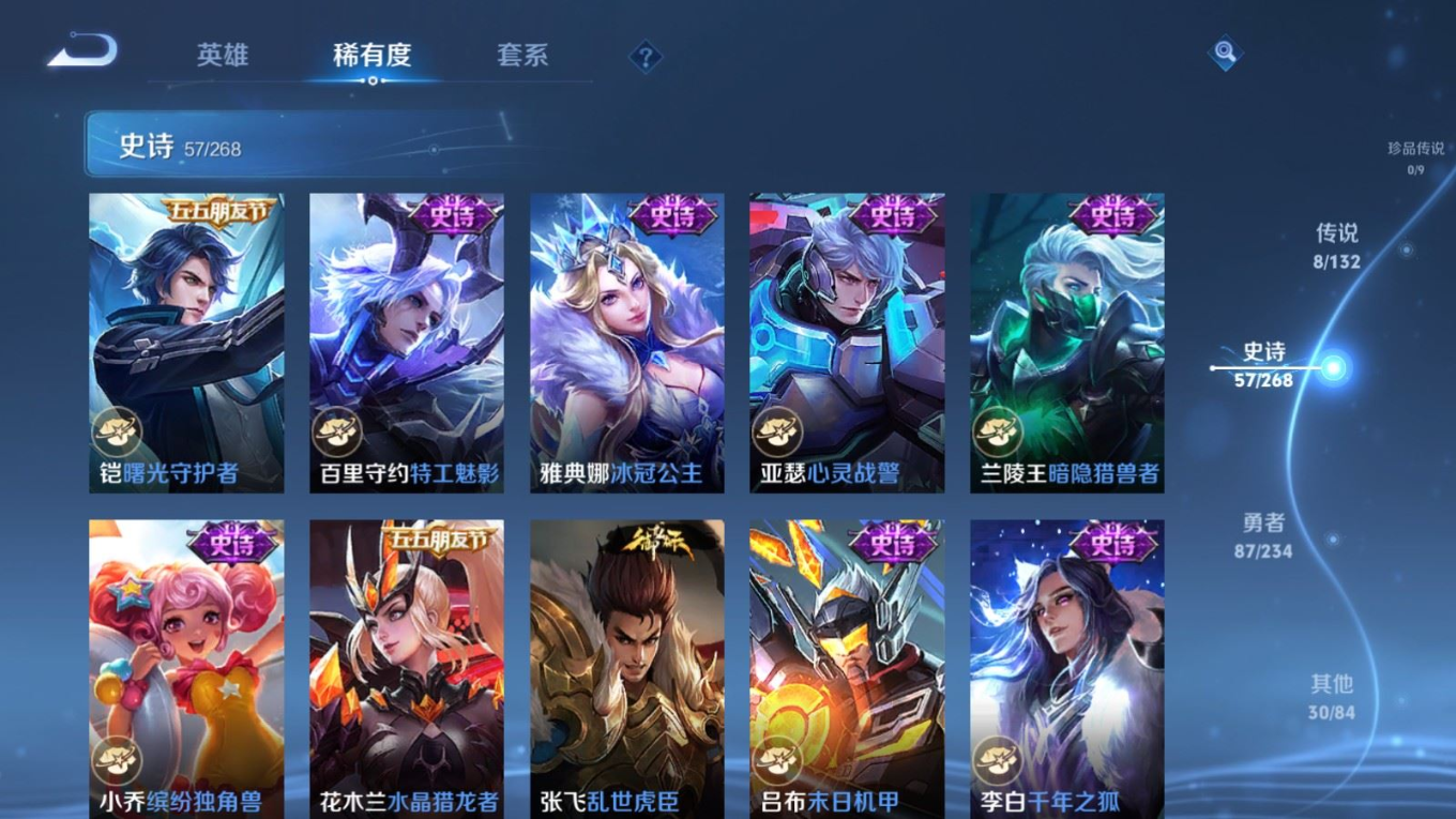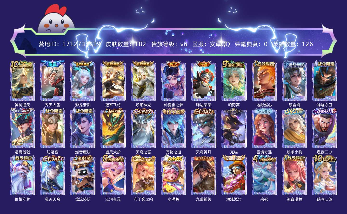 贵族等级:v6皮肤数:182传说品质8 英雄数:126