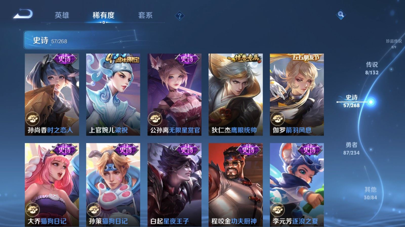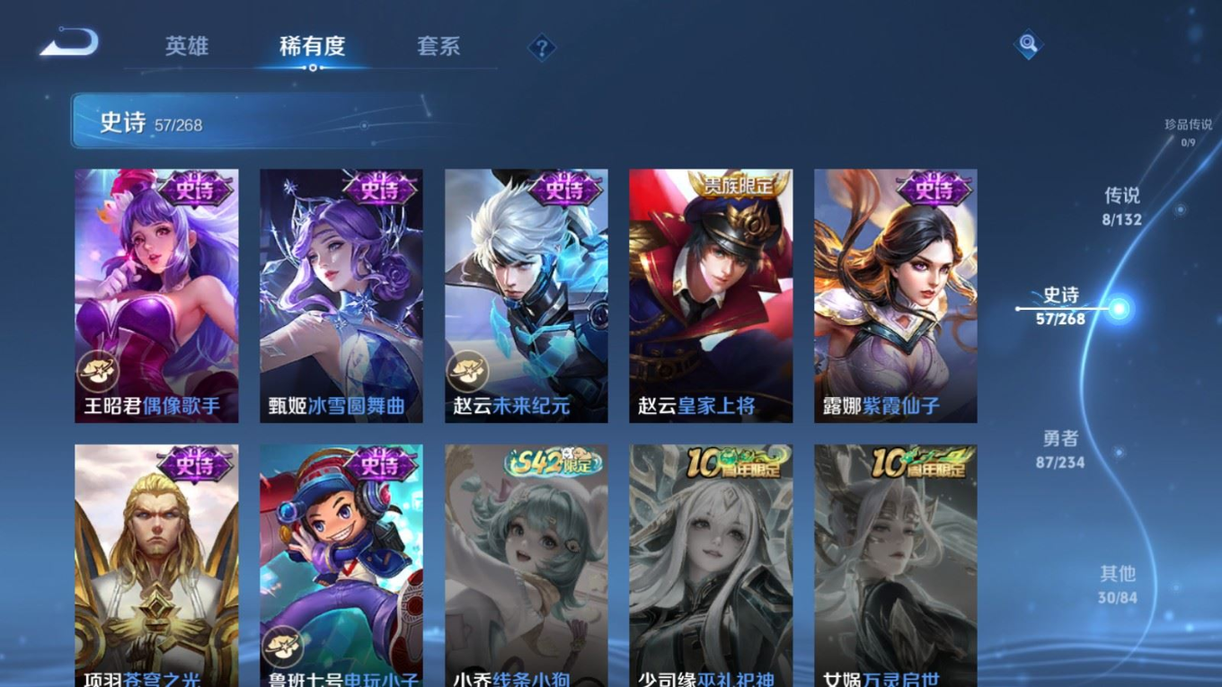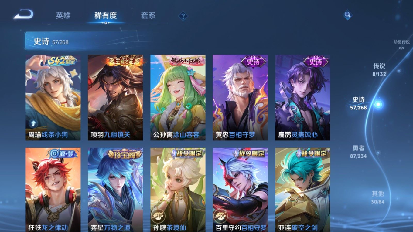 贵族等级:v6皮肤数:182传说品质8 英雄数:126