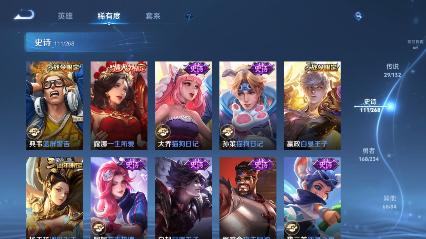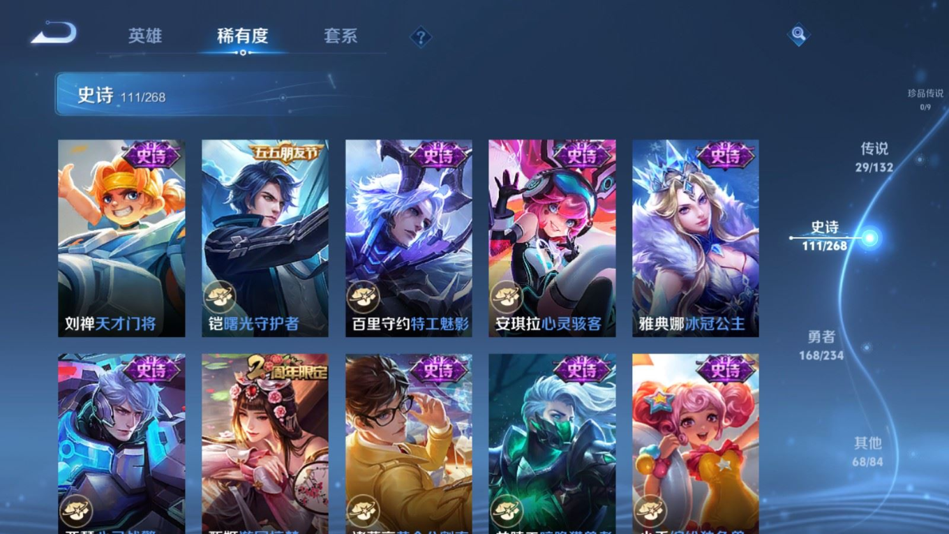 传说品质_后羿_神树通天传说品质_澜_逐花归海传说品质_澜_愿照·九州拓传说品质_马超_无双飞将传说品质_宫本武藏_地狱之眼传说品质_宫本武藏_惊梅引传说品质_西施_游龙清影传说品质_镜_炽阳神光传说品质_貂蝉_仲夏夜之梦传说品质_孙尚香_末日机甲传说品质_孙尚香_乘龙·问璇玑传说品质_梦奇_胖达荣荣传说品质_桑启_鸣野蒿传说品质_露娜_启示之音传说品质_露娜_霜月吟传说品质_女娲_愿照·千秋盛传说品质_云缨_鹤归松栖传说品质_云缨_幻光神枪传说品质_李白_凤求凰传说品质_李白_诗剑行传说品质_伽罗_炽翼辉光传说品质_曜_李逍遥 传说品质_曜_山海·苍雷引传说品质_孙策_挚爱之约传说品质_孙策_乘龙·淬吴钩传说品质_狄仁杰_神器·狴犴令传说品质_达摩_黄金狮子座传说品质_虞姬_启明星使传说品质_赵云_乘龙·铭钟鼎