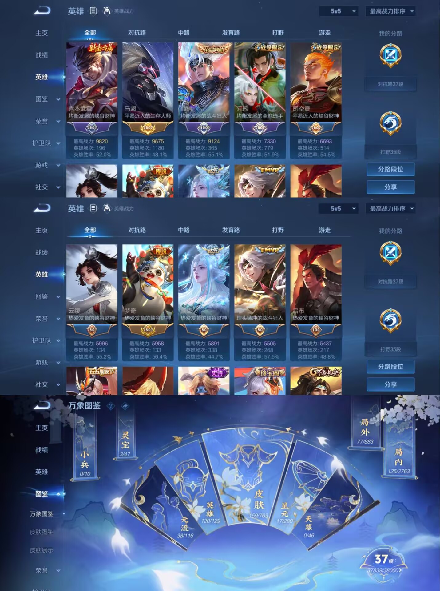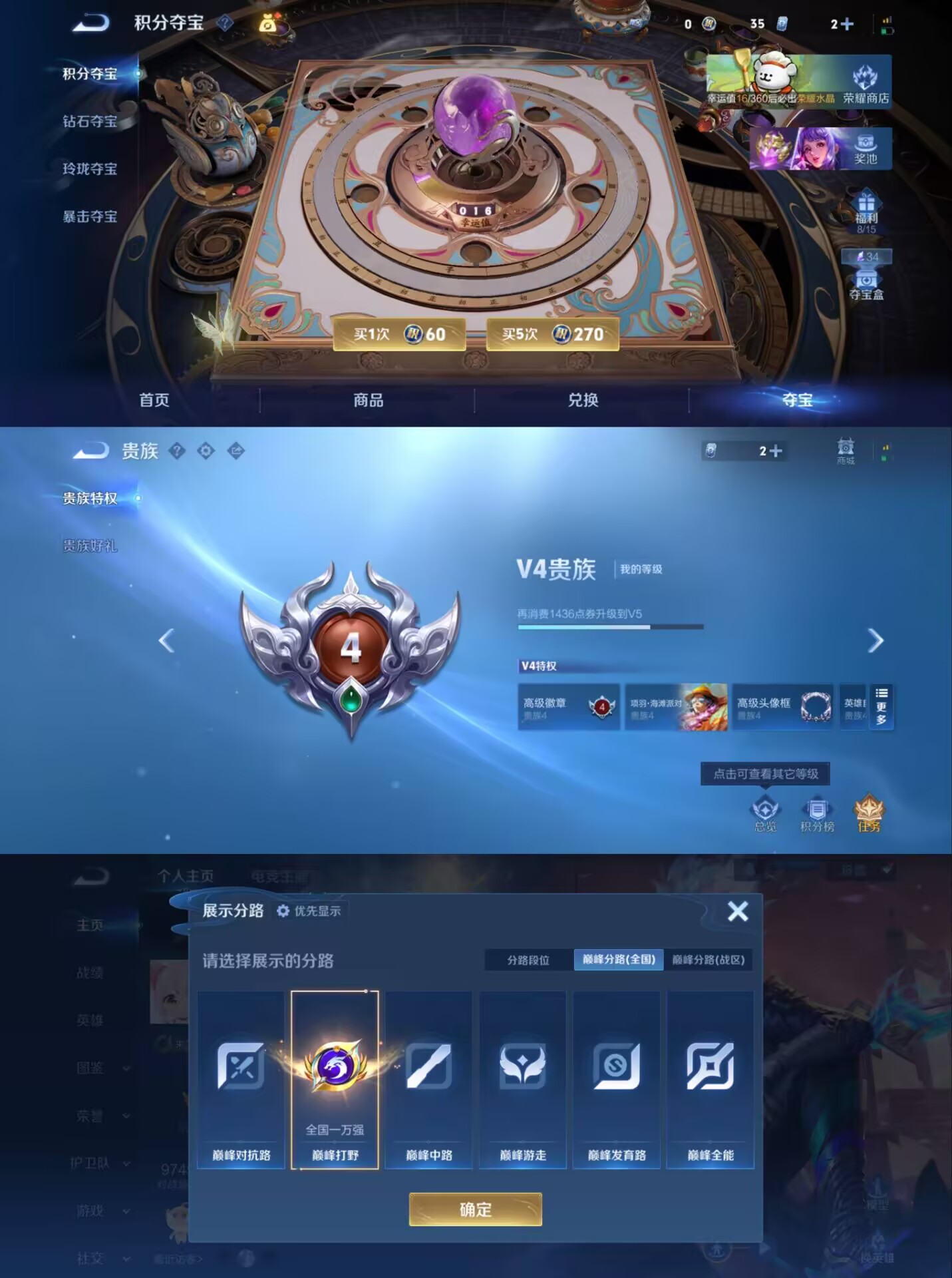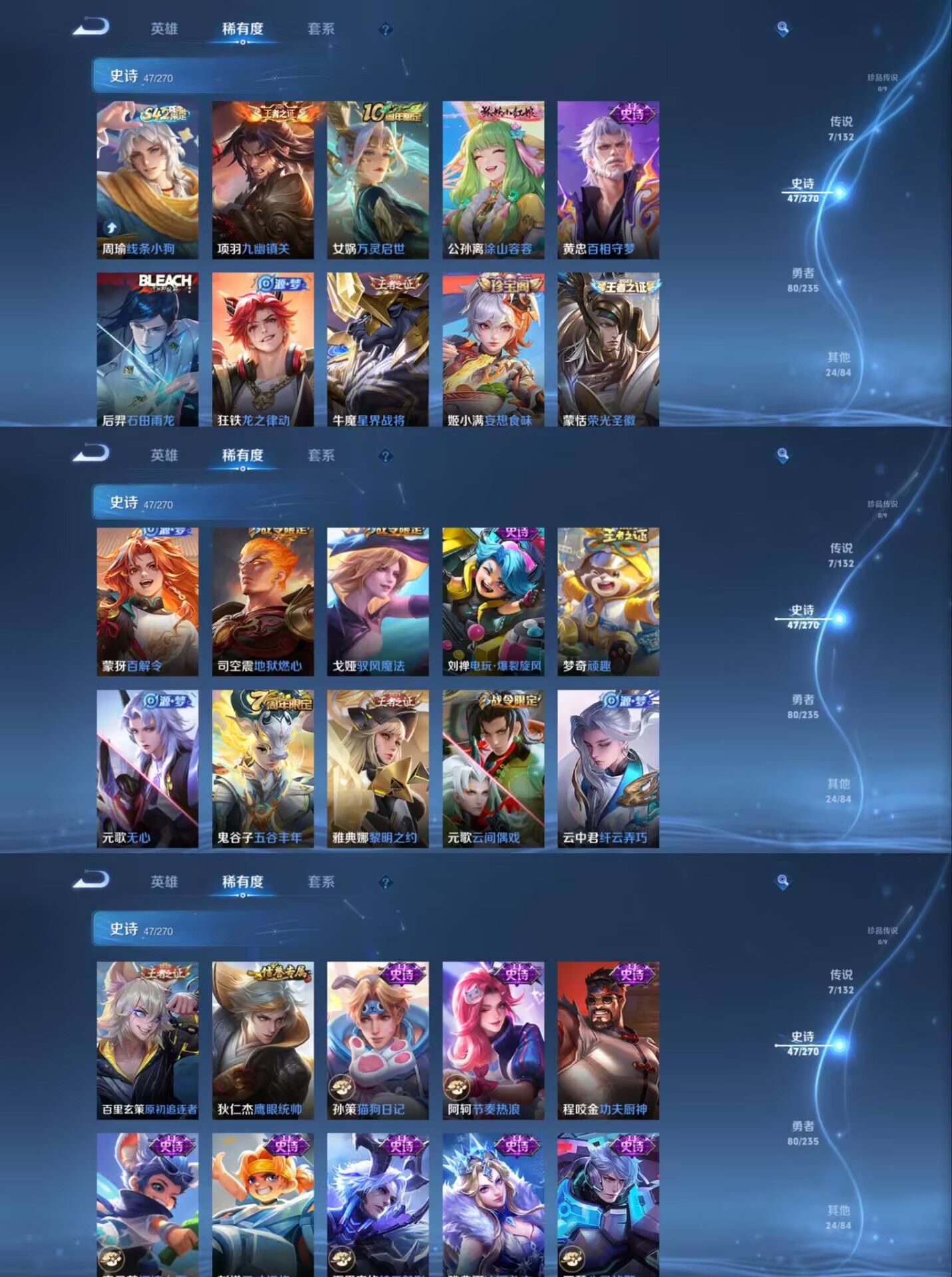 贵族等级:v4皮肤数:159传说品质7 荣耀典藏1 英雄数:120