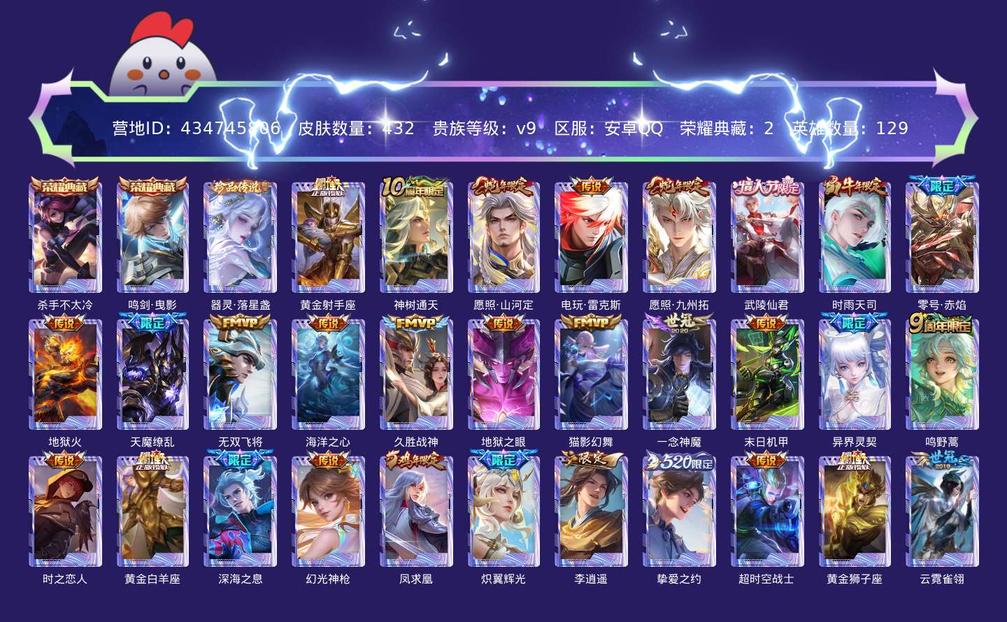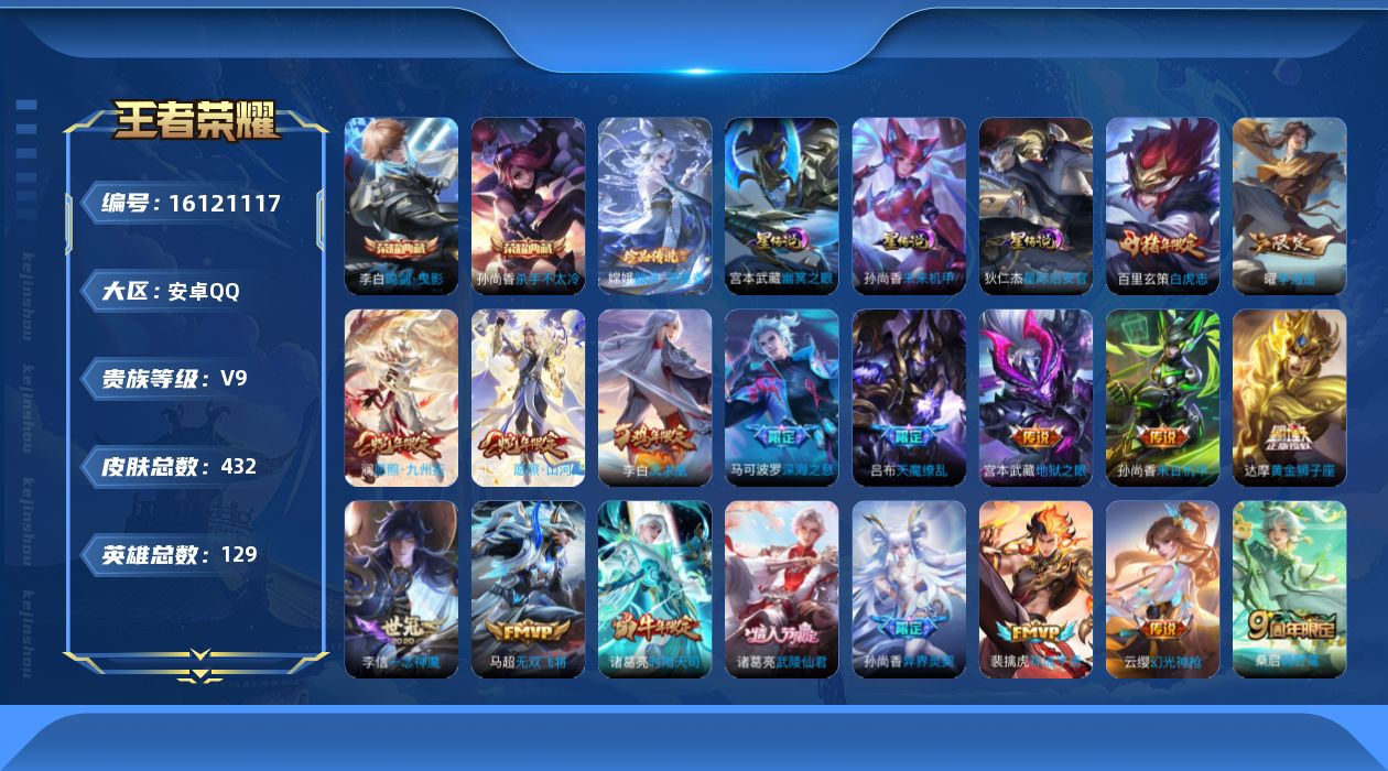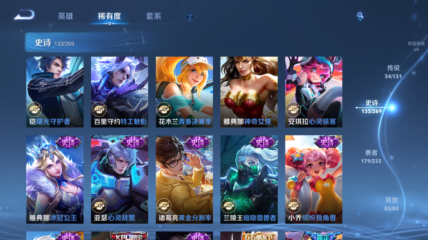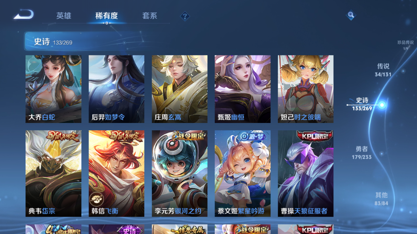 传说品质_后羿_黄金射手座传说品质_后羿_神树通天传说品质_司空震_愿照·山河定传说品质_澜_电玩·雷克斯传说品质_澜_愿照·九州拓传说品质_诸葛亮_武陵仙君传说品质_诸葛亮_时雨天司传说品质_孙悟空_零号·赤焰传说品质_孙悟空_地狱火传说品质_吕布_天魔缭乱传说品质_马超_无双飞将传说品质_武则天_海洋之心传说品质_干将莫邪_久胜战神传说品质_宫本武藏_地狱之眼传说品质_貂蝉_猫影幻舞传说品质_李信_一念神魔传说品质_孙尚香_末日机甲传说品质_孙尚香_异界灵契传说品质_桑启_鸣野蒿传说品质_刘备_时之恋人传说品质_张良_黄金白羊座传说品质_马可波罗_深海之息传说品质_云缨_幻光神枪传说品质_李白_凤求凰传说品质_伽罗_炽翼辉光传说品质_曜_李逍遥 传说品质_孙策_挚爱之约传说品质_狄仁杰_超时空战士传说品质_达摩_黄金狮子座传说品质_虞姬_云霓雀翎传说品质_虞姬_启明星使传说品质_百里玄策_白虎志传说品质_裴擒虎_祥瑞亨通传说品质_王昭君_乞巧织情