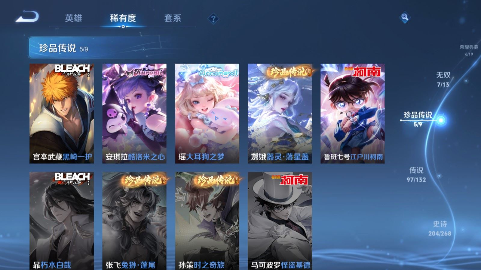 珍品传说_宫本武藏_黑崎一护珍品传说_安琪拉_酷洛米之心珍品传说_嫦娥_器灵·落星盏珍品传说_瑶_大耳狗之梦珍品传说_鲁班七号_江户川柯南