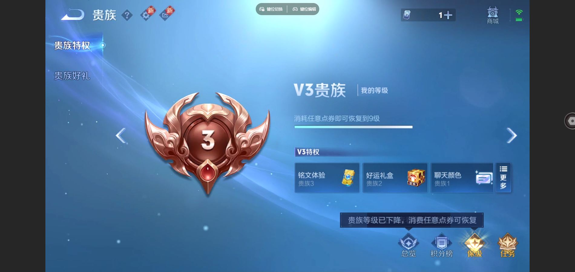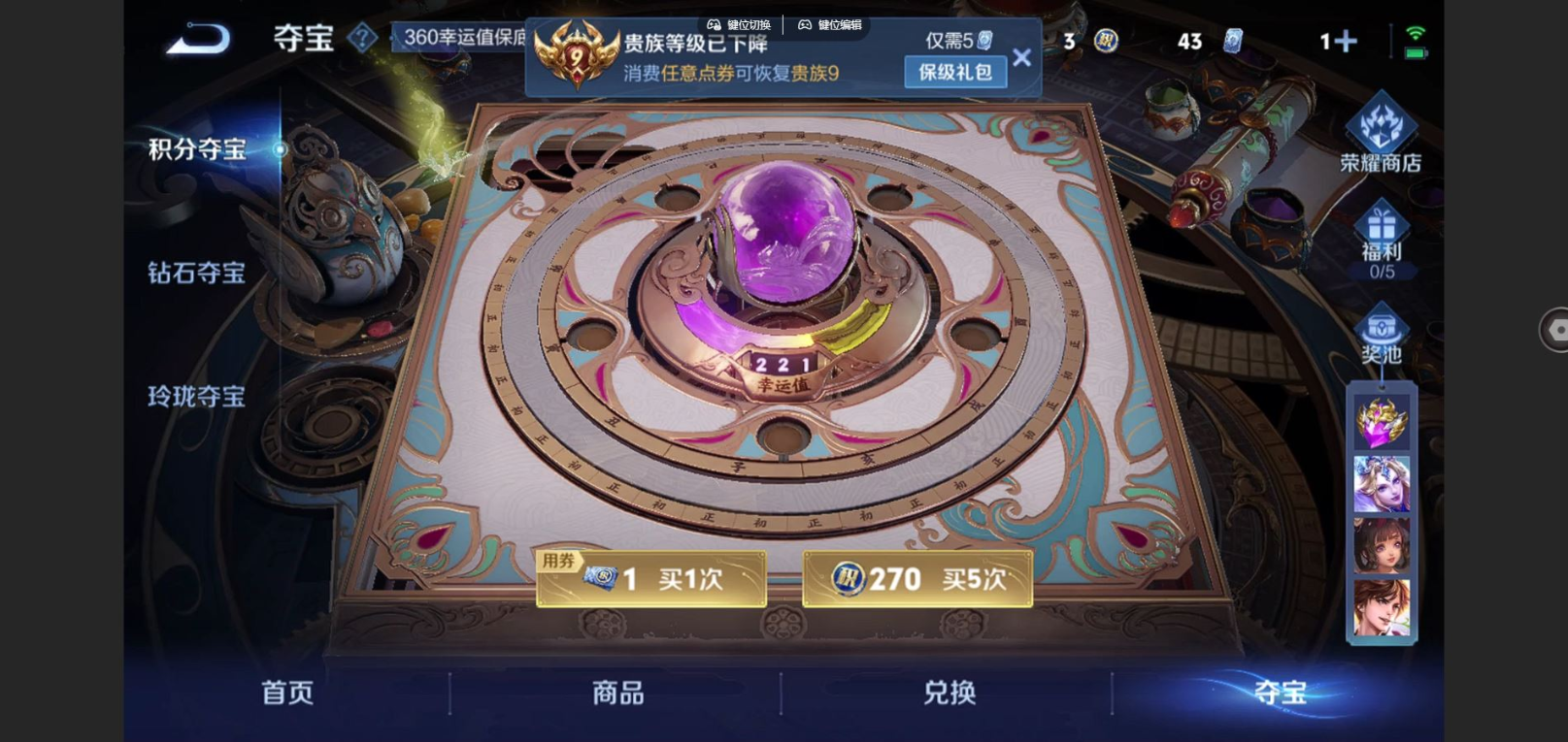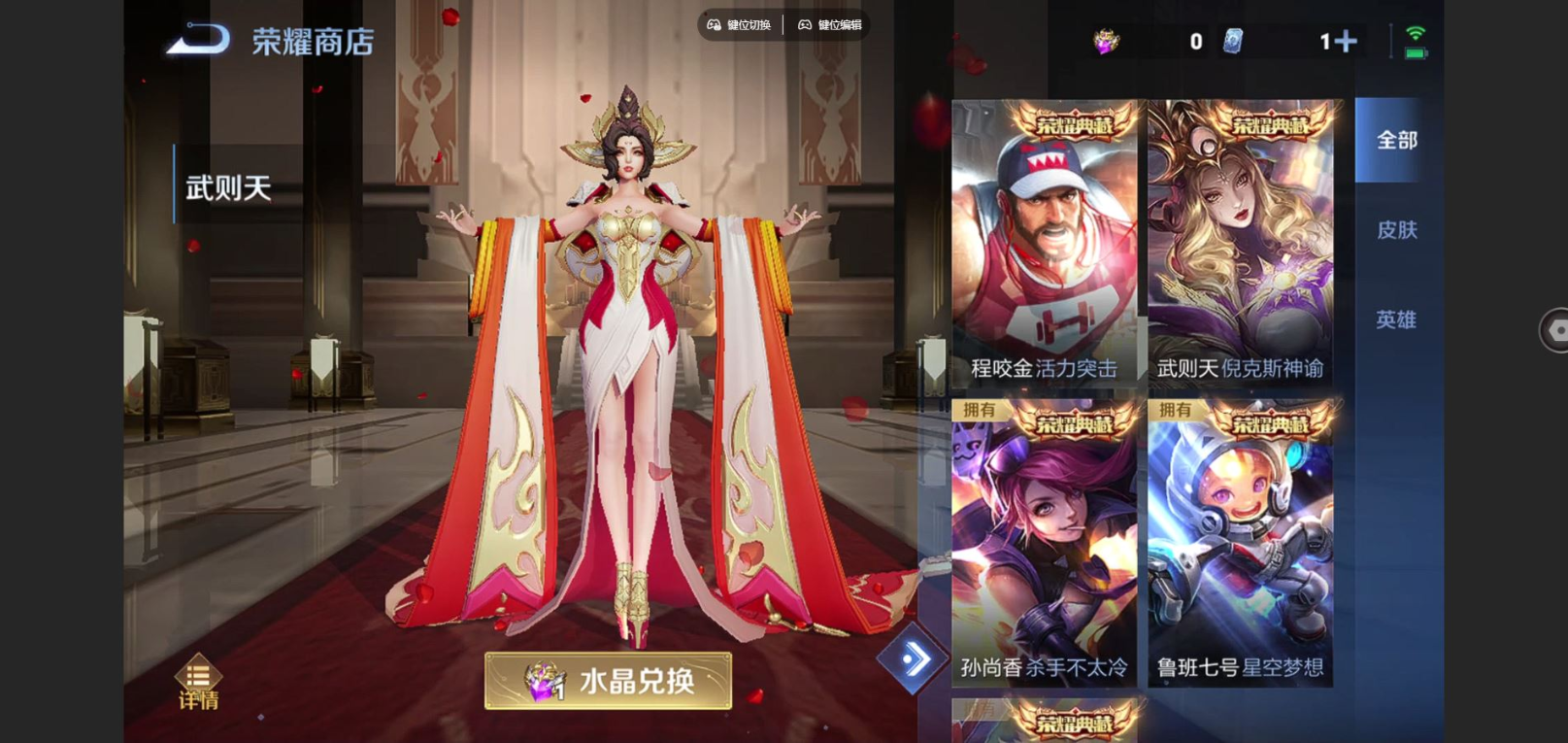 贵族等级:v9皮肤数:231传说品质12 情人节限定1 荣耀典藏3 无双1 生肖限定4 珍品传说1 英雄数:124