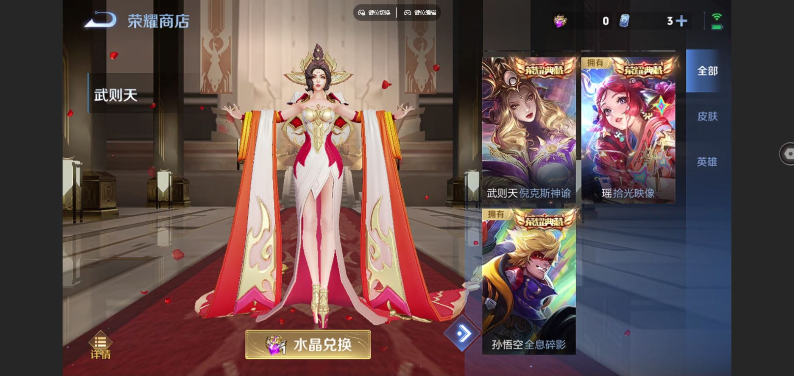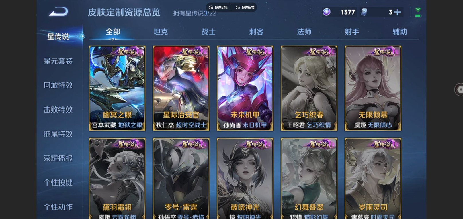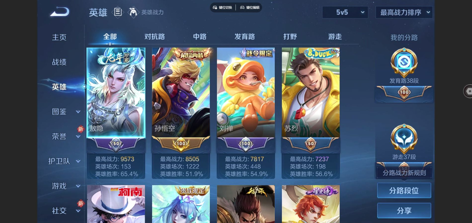 贵族等级:v8皮肤数:329传说品质17 生肖限定8 情人节限定3 荣耀典藏2 珍品传说3 英雄数:127