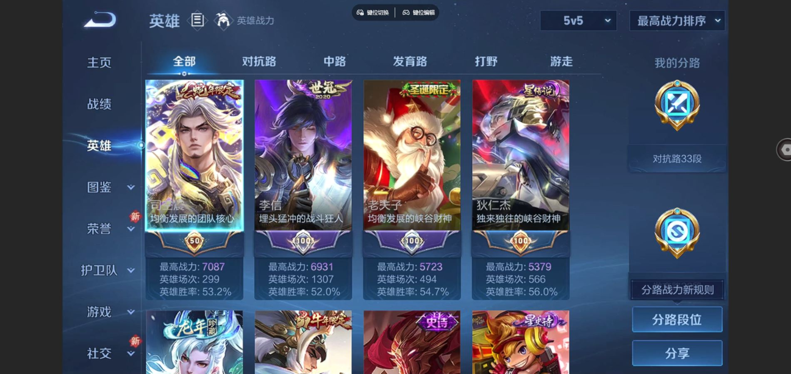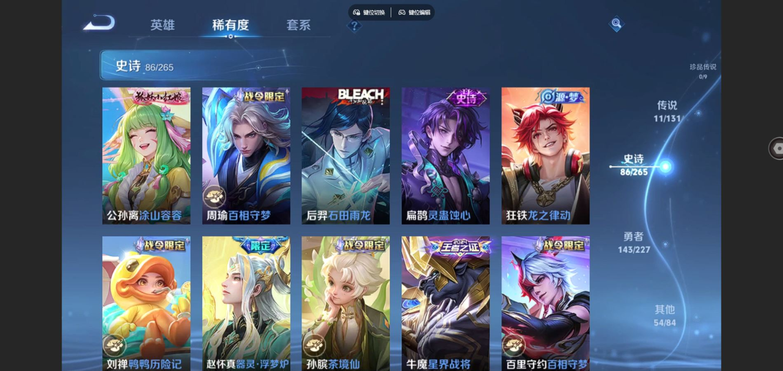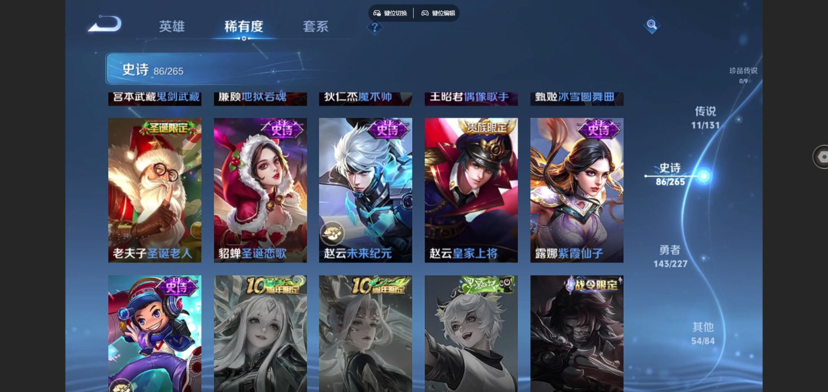 贵族等级:v7皮肤数:295传说品质11 生肖限定5 荣耀典藏1 英雄数:126