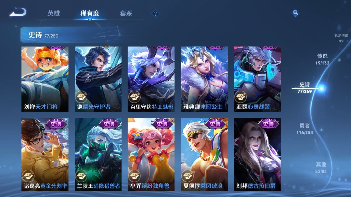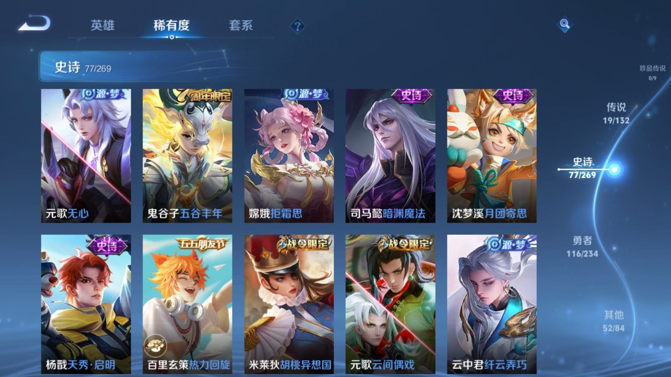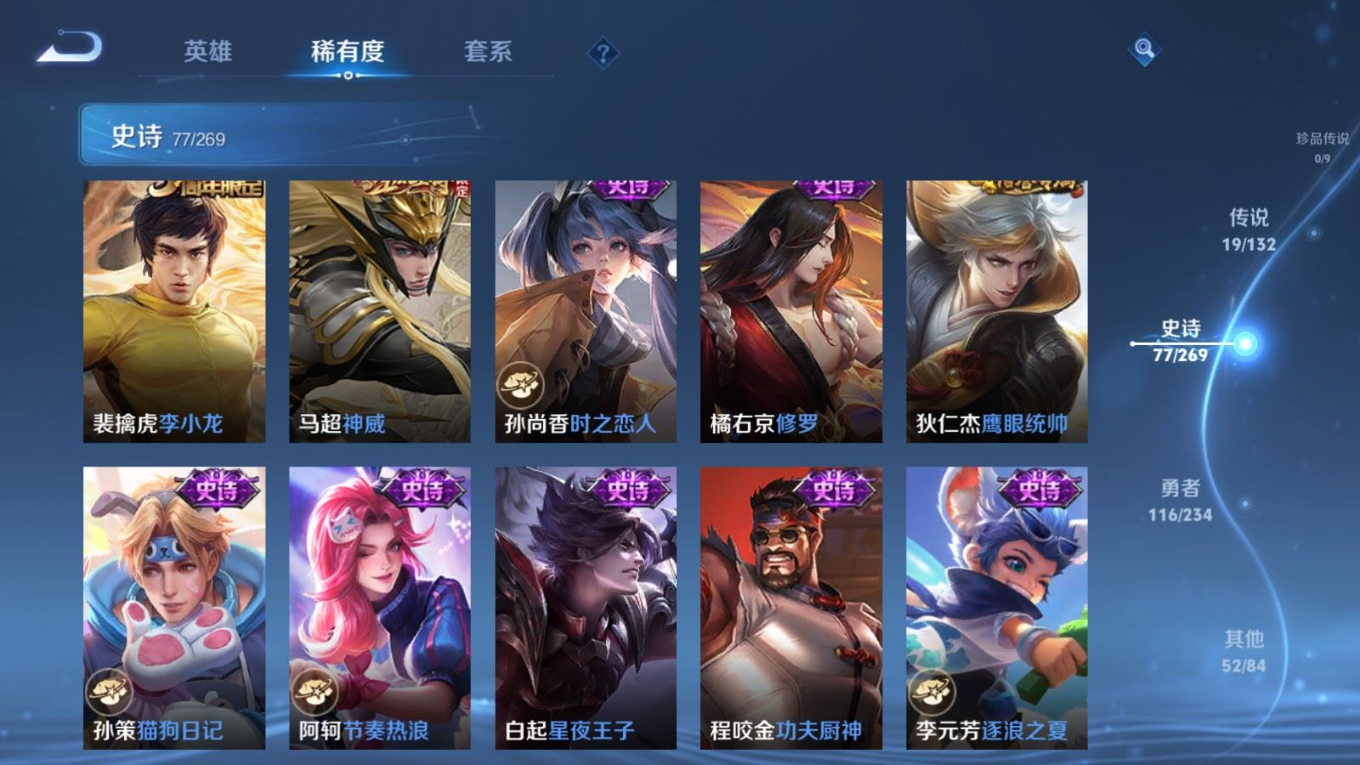 贵族等级:v8皮肤数:266传说品质19 生肖限定6 荣耀典藏1 无双1 英雄数:128
