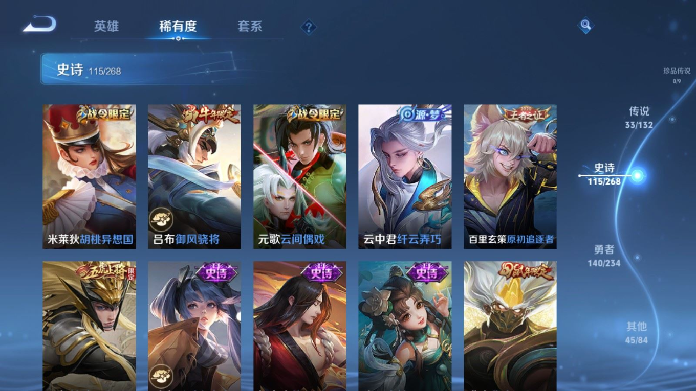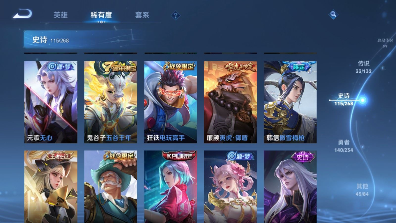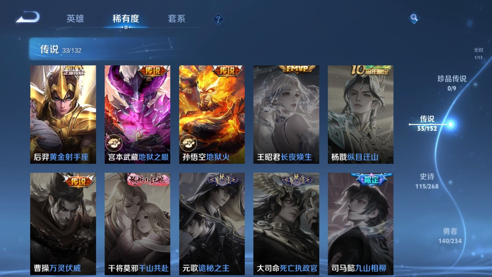 传说品质_后羿_黄金射手座传说品质_后羿_神树通天传说品质_司空震_愿照·山河定传说品质_澜_逐花归海传说品质_澜_愿照·九州拓传说品质_典韦_战鼓燎原传说品质_诸葛亮_鹤羽星尊传说品质_孙悟空_齐天大圣传说品质_孙悟空_地狱火传说品质_吕布_怒海麟威传说品质_马超_无双飞将传说品质_干将莫邪_久胜战神传说品质_宫本武藏_地狱之眼传说品质_周瑜_音你心动传说品质_镜_炽阳神光传说品质_貂蝉_遇见胡旋传说品质_李信_山海·炽霜斩传说品质_李信_一念神魔传说品质_梦奇_胖达荣荣传说品质_桑启_鸣野蒿传说品质_刘备_时之恋人传说品质_女娲_愿照·千秋盛传说品质_云缨_幻光神枪传说品质_亚瑟_追逃游戏传说品质_夏洛特_浮生妄传说品质_曜_云鹰飞将传说品质_曜_山海·苍雷引传说品质_达摩_黄金狮子座传说品质_铠_绛天战甲传说品质_虞姬_启明星使传说品质_赵云_淬星耀世传说品质_裴擒虎_寅虎·赤拳传说品质_王昭君_乞巧织情