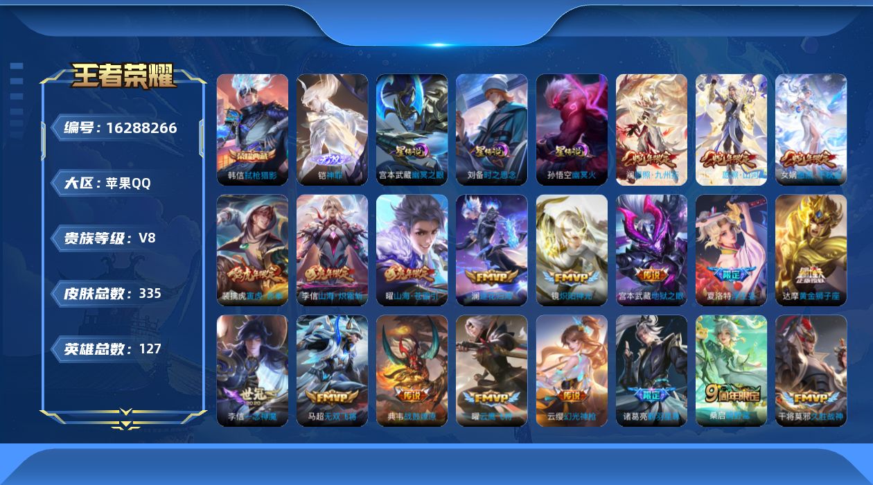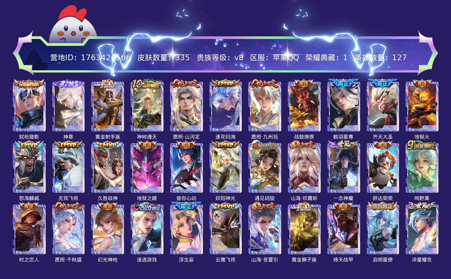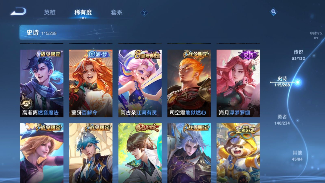 传说品质_后羿_黄金射手座传说品质_后羿_神树通天传说品质_司空震_愿照·山河定传说品质_澜_逐花归海传说品质_澜_愿照·九州拓传说品质_典韦_战鼓燎原传说品质_诸葛亮_鹤羽星尊传说品质_孙悟空_齐天大圣传说品质_孙悟空_地狱火传说品质_吕布_怒海麟威传说品质_马超_无双飞将传说品质_干将莫邪_久胜战神传说品质_宫本武藏_地狱之眼传说品质_周瑜_音你心动传说品质_镜_炽阳神光传说品质_貂蝉_遇见胡旋传说品质_李信_山海·炽霜斩传说品质_李信_一念神魔传说品质_梦奇_胖达荣荣传说品质_桑启_鸣野蒿传说品质_刘备_时之恋人传说品质_女娲_愿照·千秋盛传说品质_云缨_幻光神枪传说品质_亚瑟_追逃游戏传说品质_夏洛特_浮生妄传说品质_曜_云鹰飞将传说品质_曜_山海·苍雷引传说品质_达摩_黄金狮子座传说品质_铠_绛天战甲传说品质_虞姬_启明星使传说品质_赵云_淬星耀世传说品质_裴擒虎_寅虎·赤拳传说品质_王昭君_乞巧织情