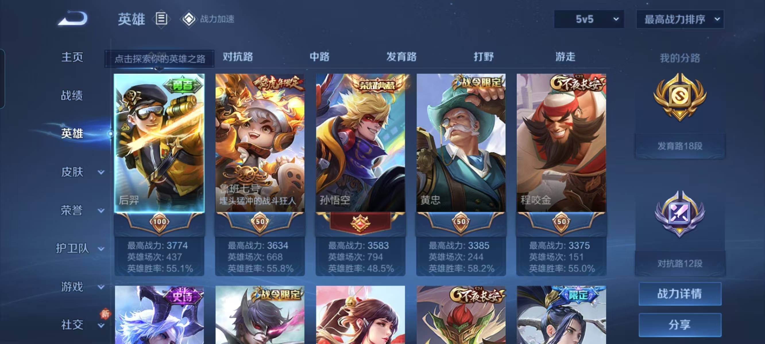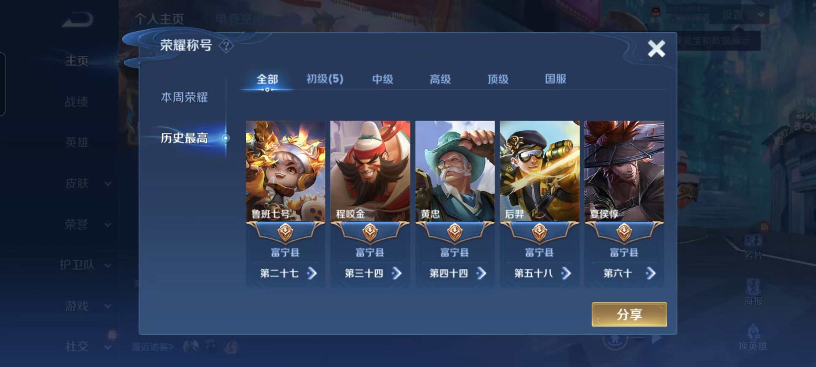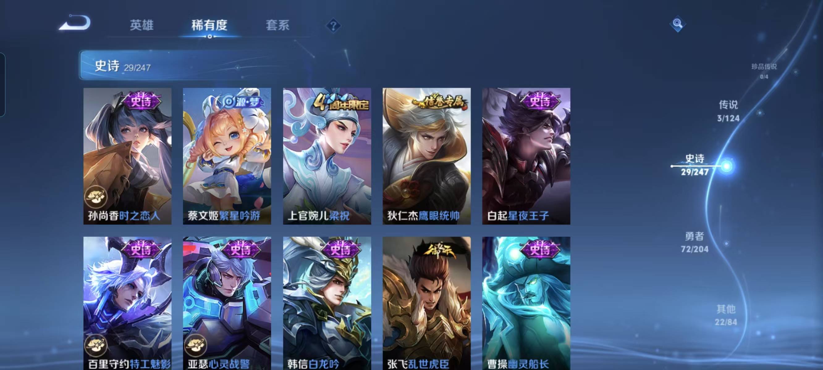 贵族等级:v7皮肤数:127荣耀典藏1 传说品质3 生肖限定2 英雄数:119