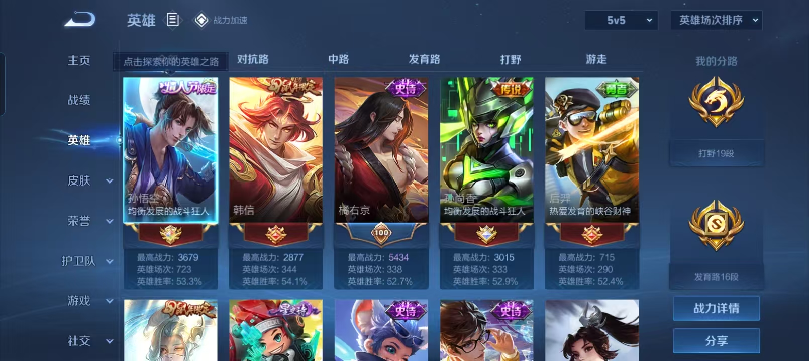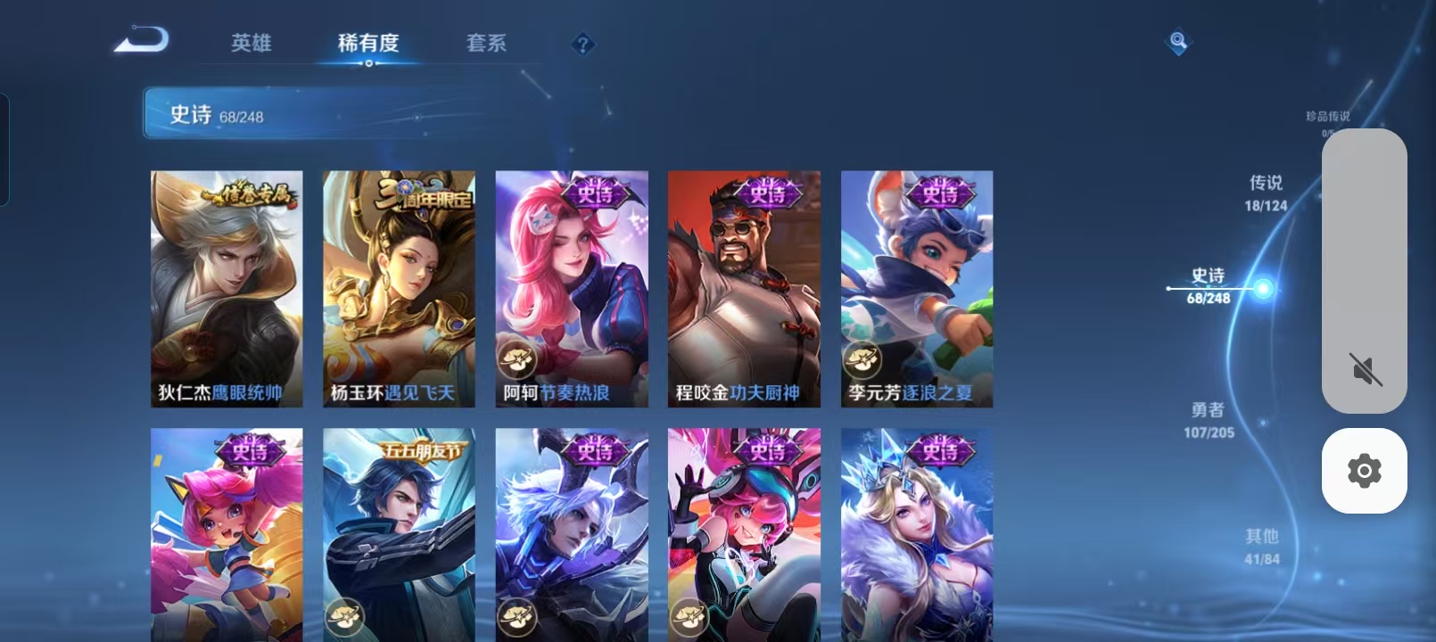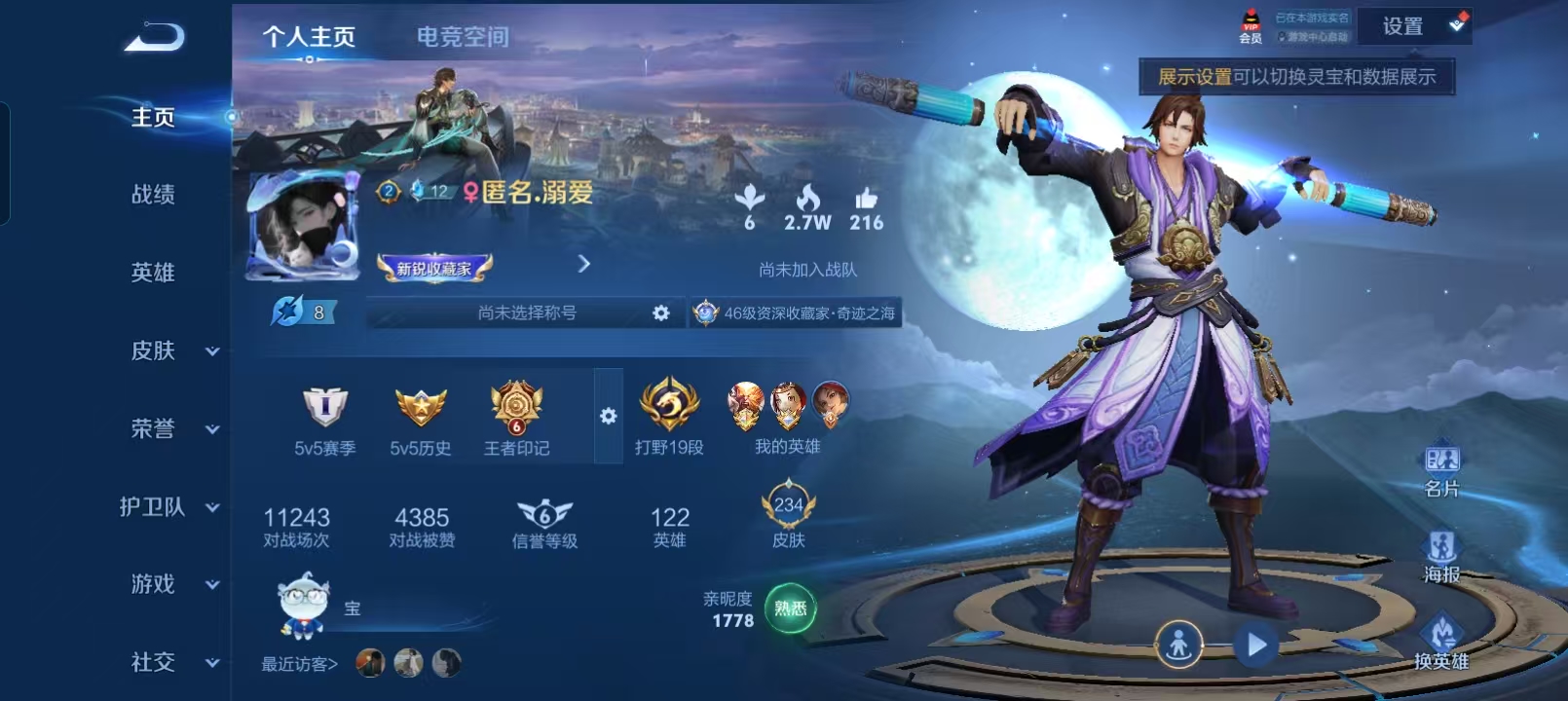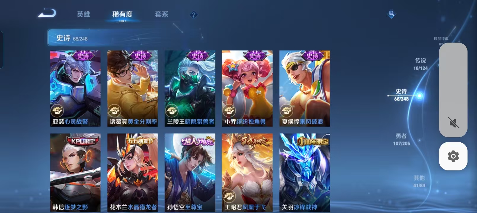 贵族等级:v8皮肤数:234情人节限定2 传说品质18 生肖限定6 英雄数:123