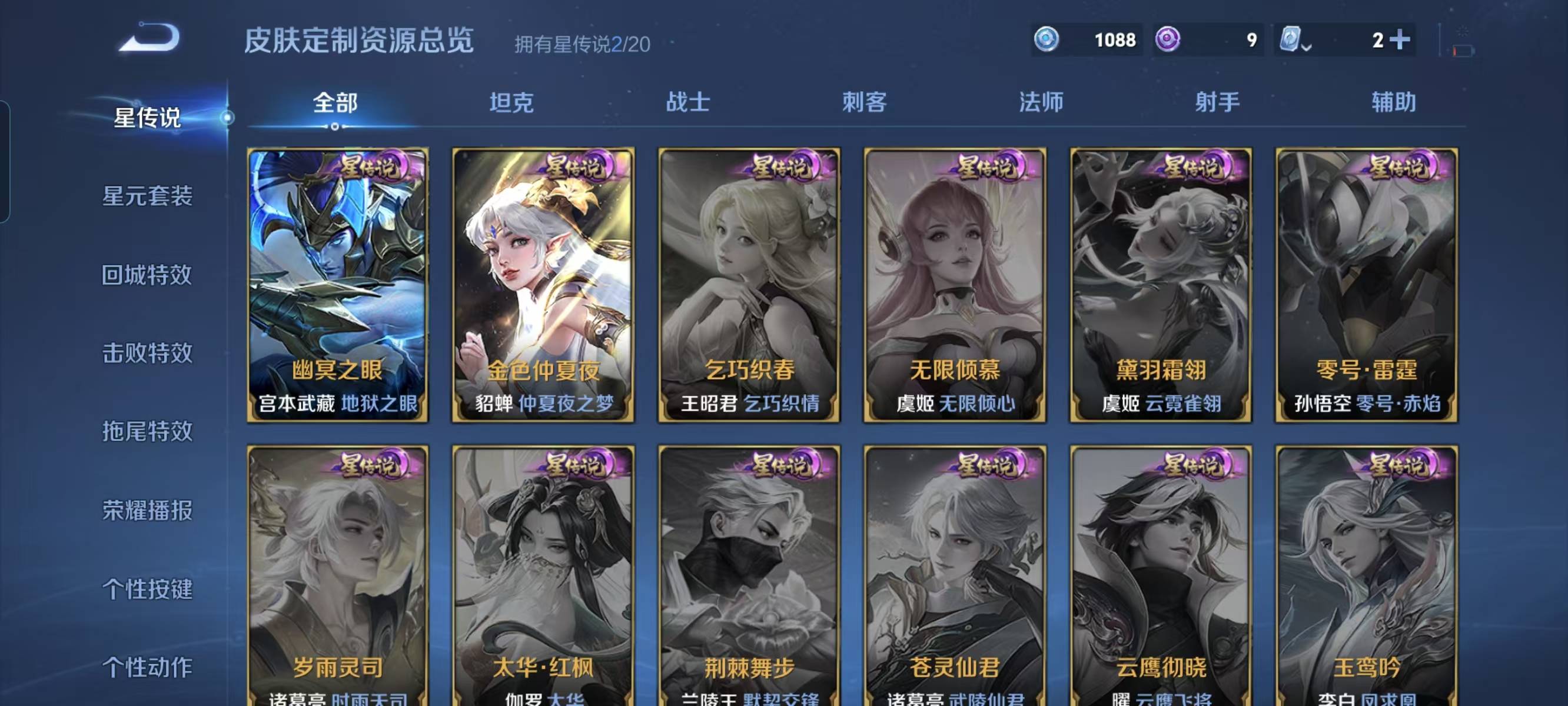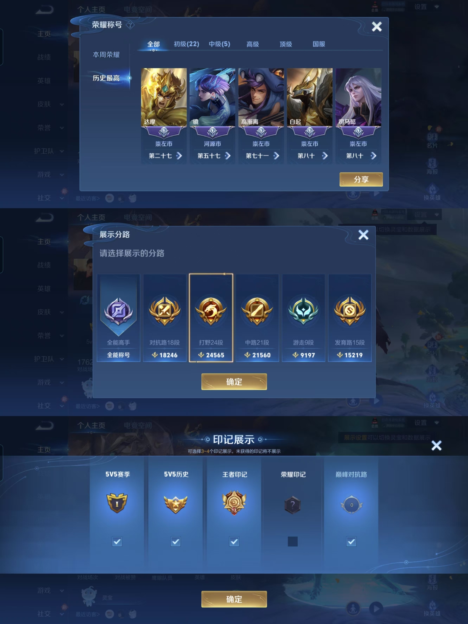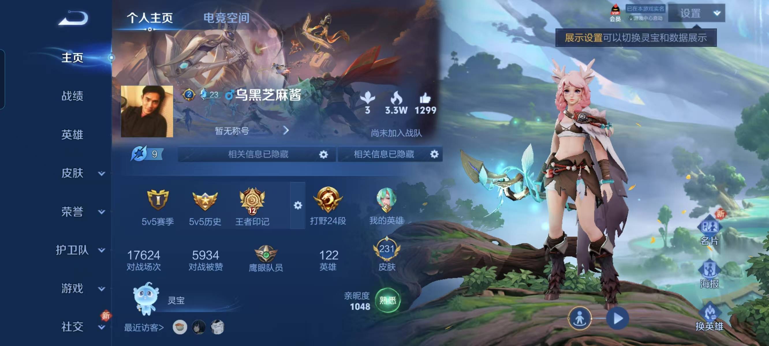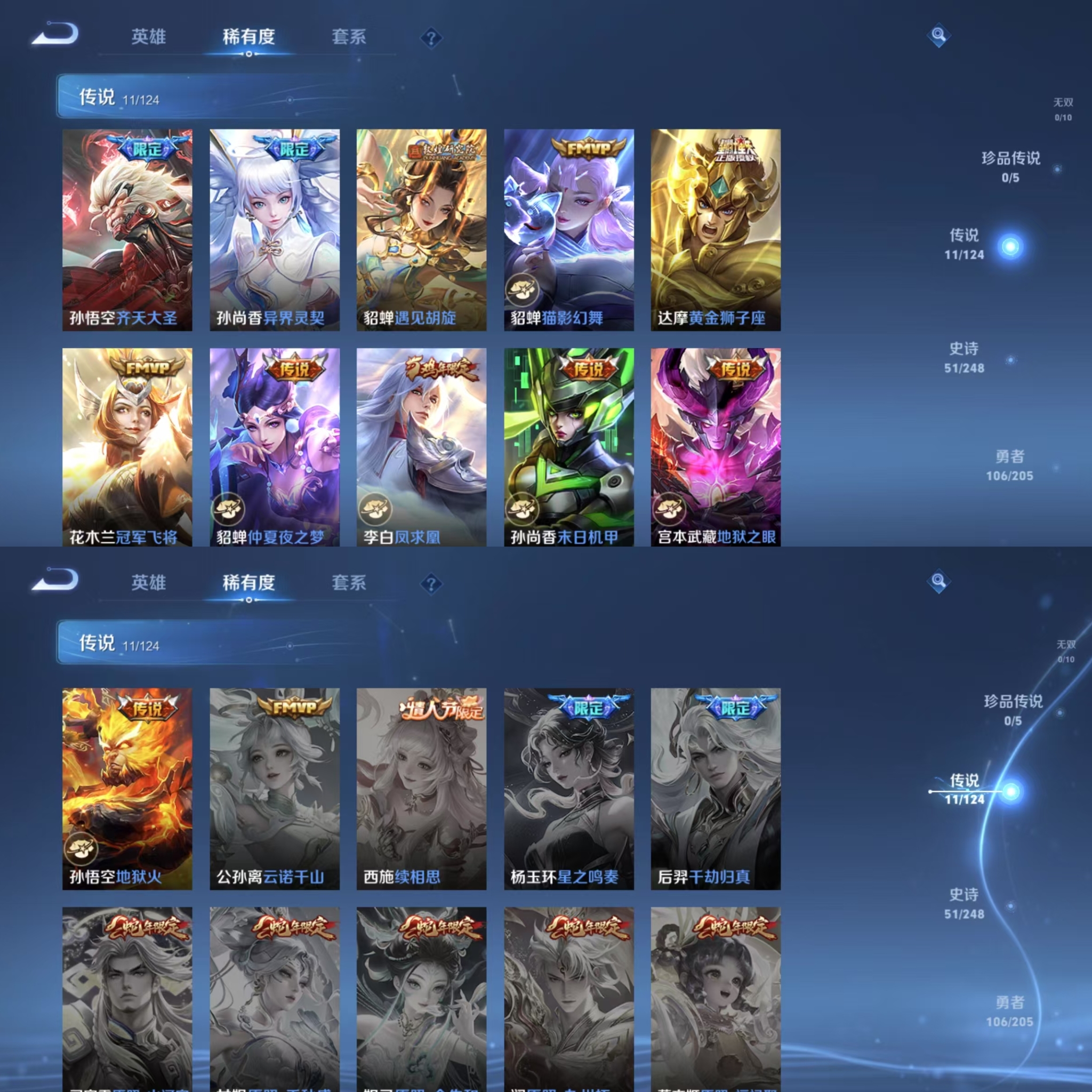 贵族等级:v7皮肤数:231荣耀典藏1 传说品质11 情人节限定1 生肖限定3 英雄数:122