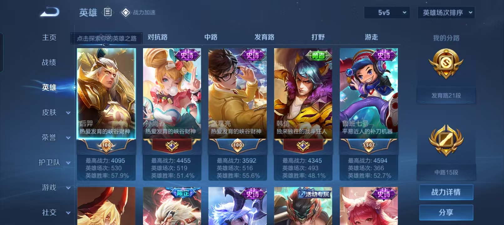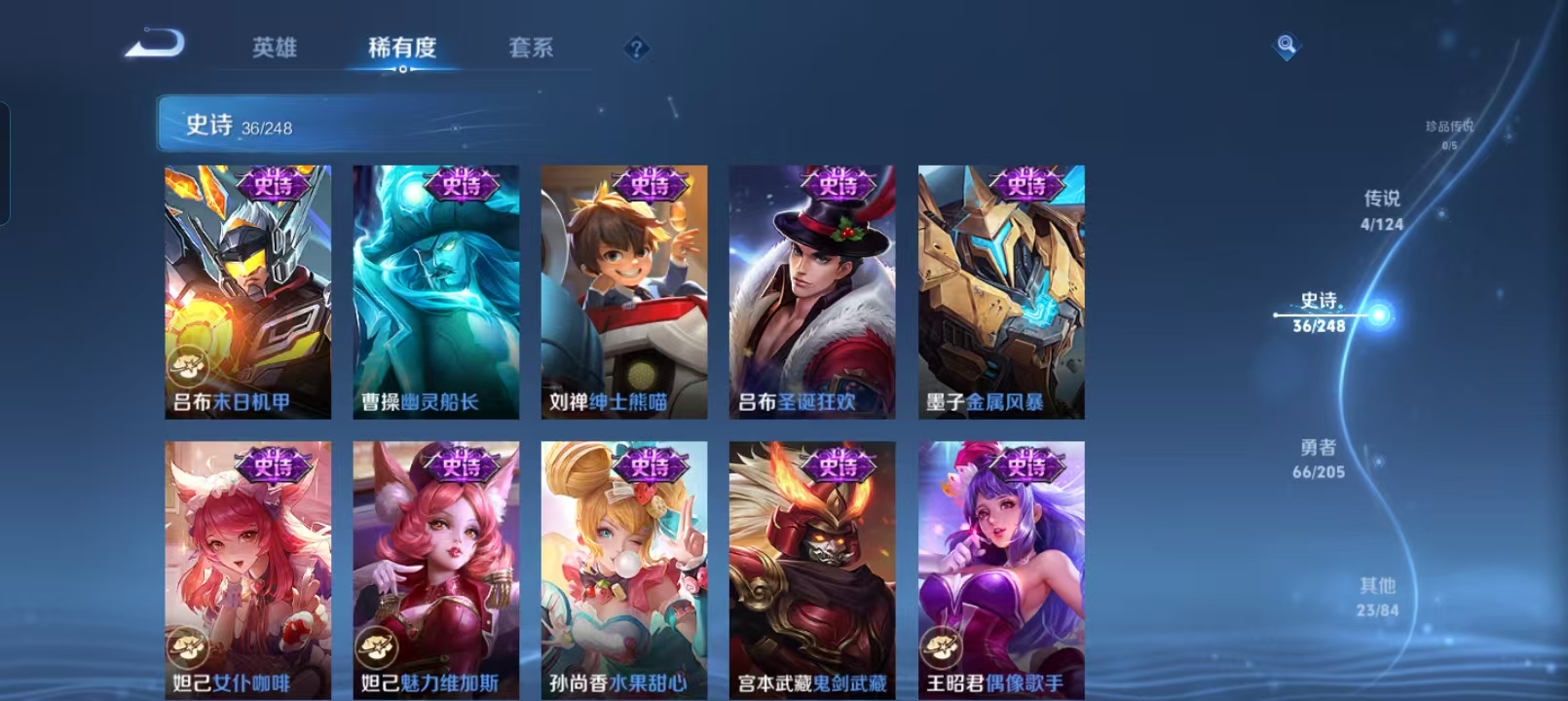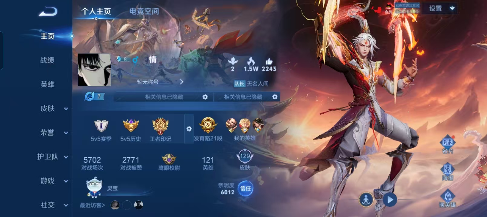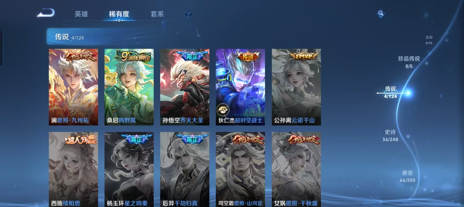 贵族等级:v5皮肤数:129传说品质4 生肖限定1 英雄数:121