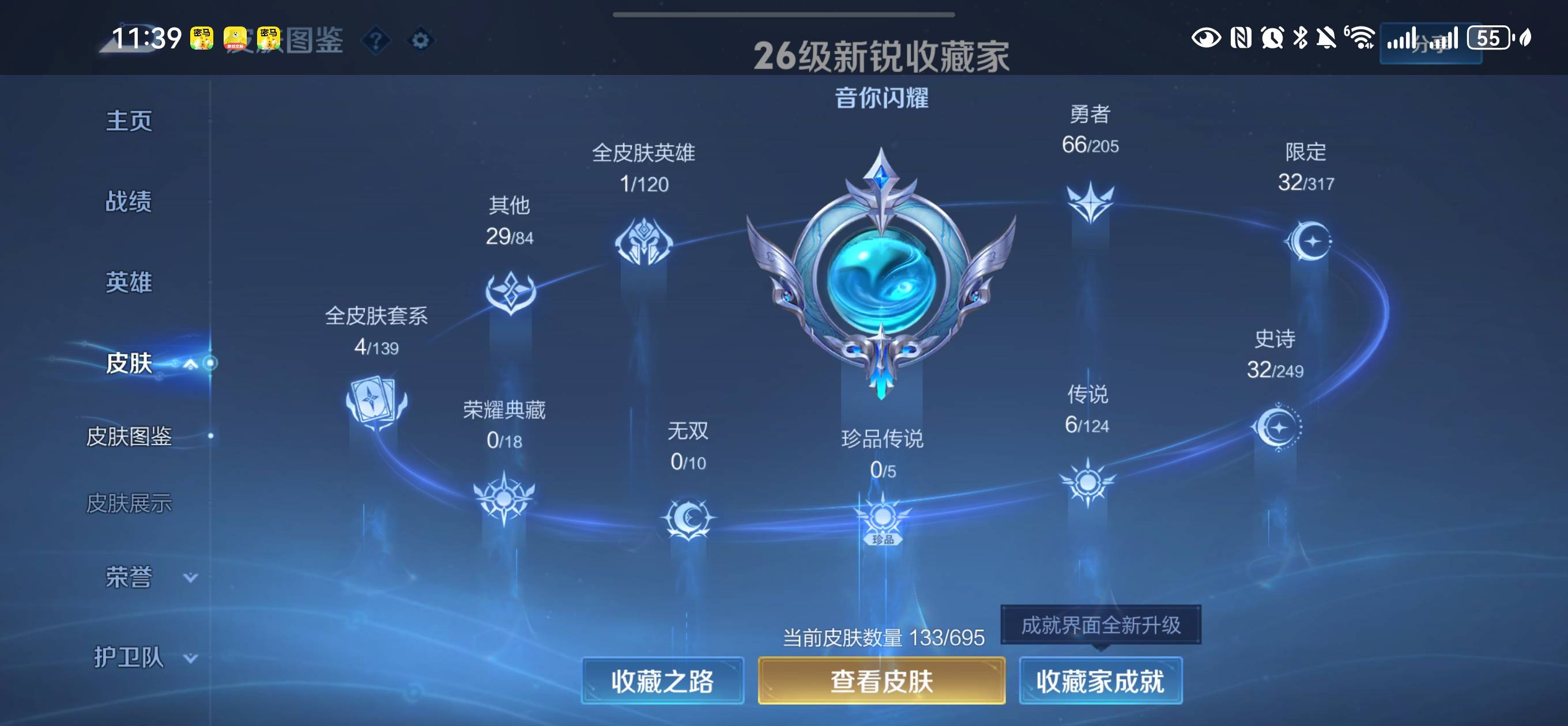 贵族等级:v6皮肤数:133传说品质6 生肖限定1 英雄数:121