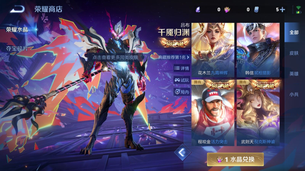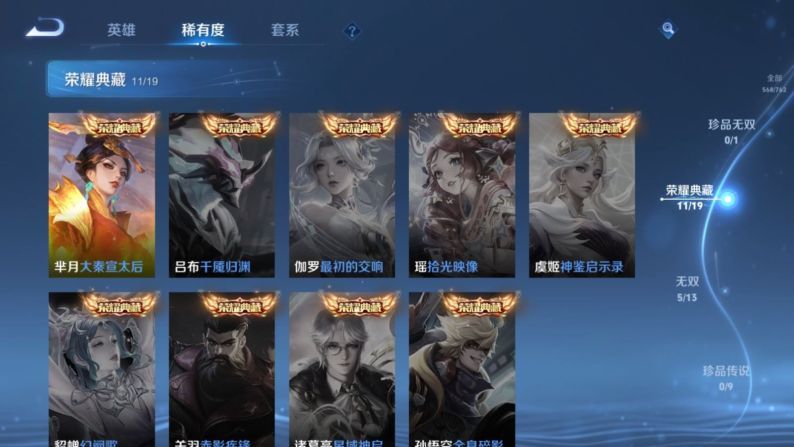 荣耀典藏_武则天_倪克斯神谕荣耀典藏_花木兰_九霄神辉荣耀典藏_孙尚香_杀手不太冷荣耀典藏_夏侯惇_无限飓风号荣耀典藏_小乔_天鹅之梦荣耀典藏_芈月_大秦宣太后荣耀典藏_李白_鸣剑·曳影荣耀典藏_铠_银白咏叹调荣耀典藏_鲁班七号_星空梦想荣耀典藏_程咬金_活力突击荣耀典藏_韩信_弑枪猎影