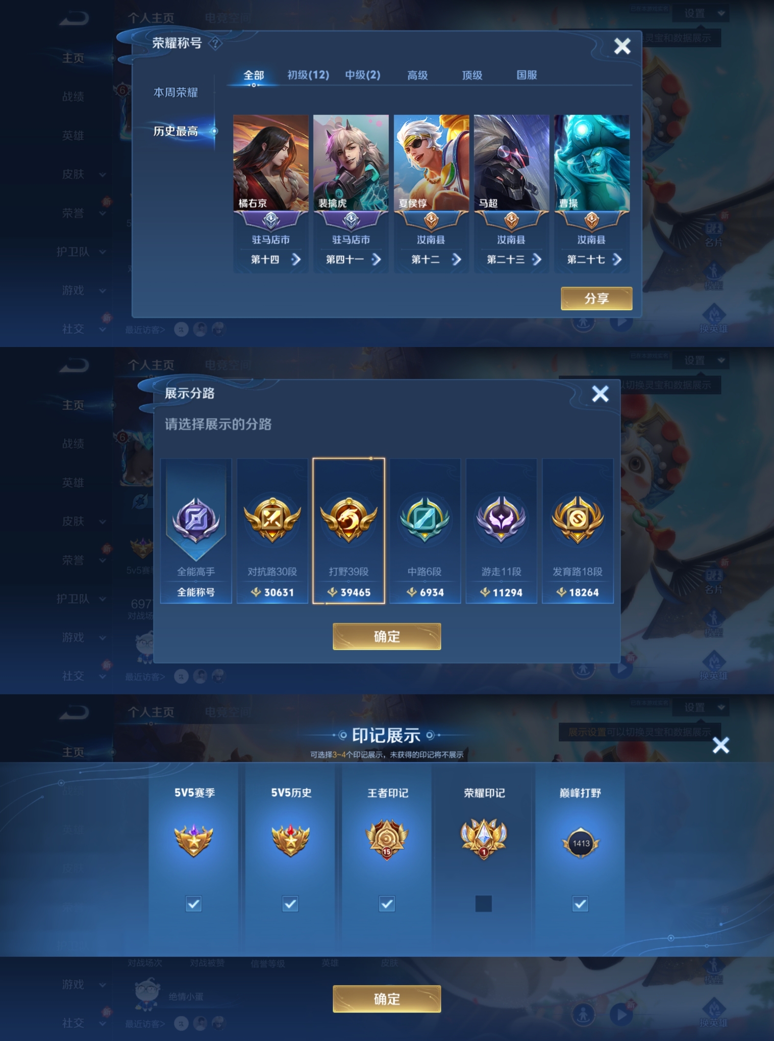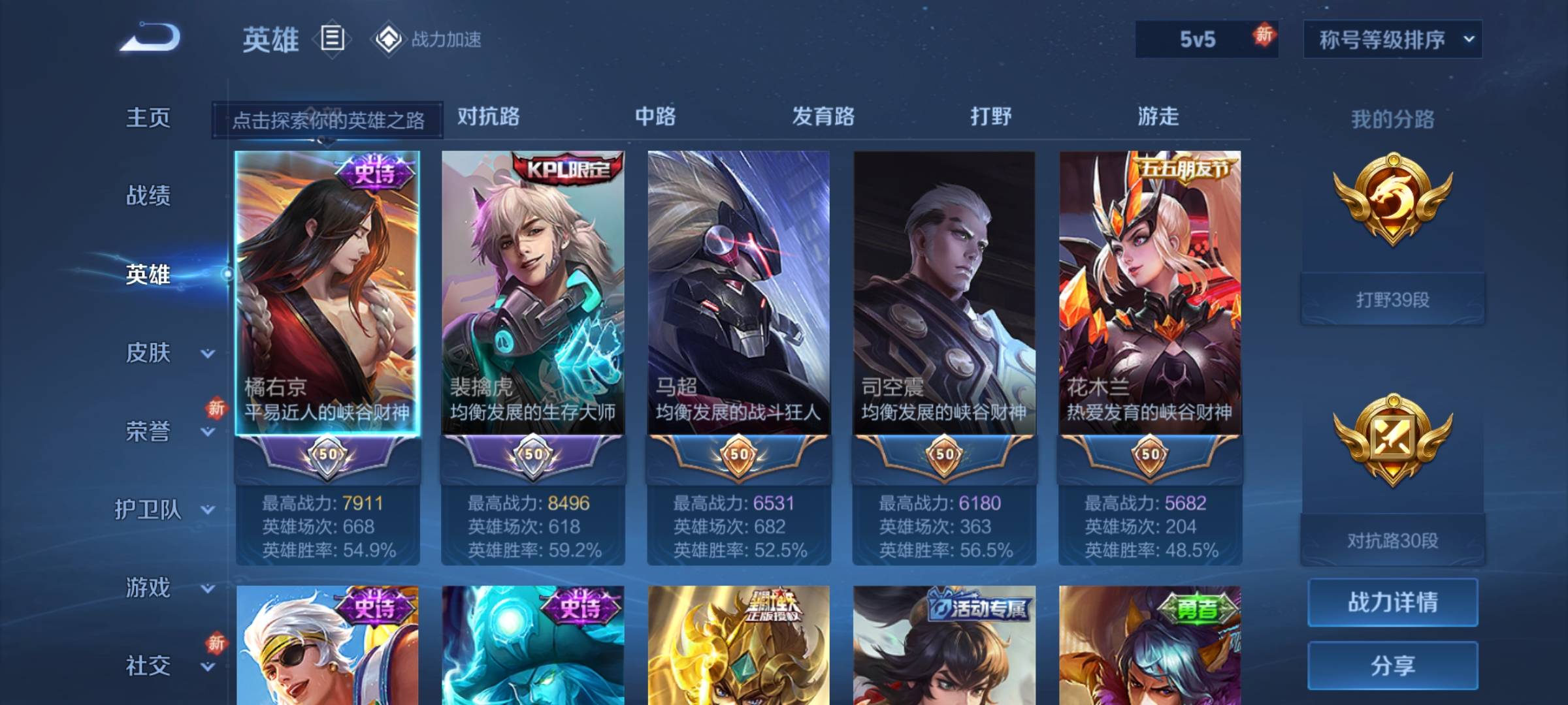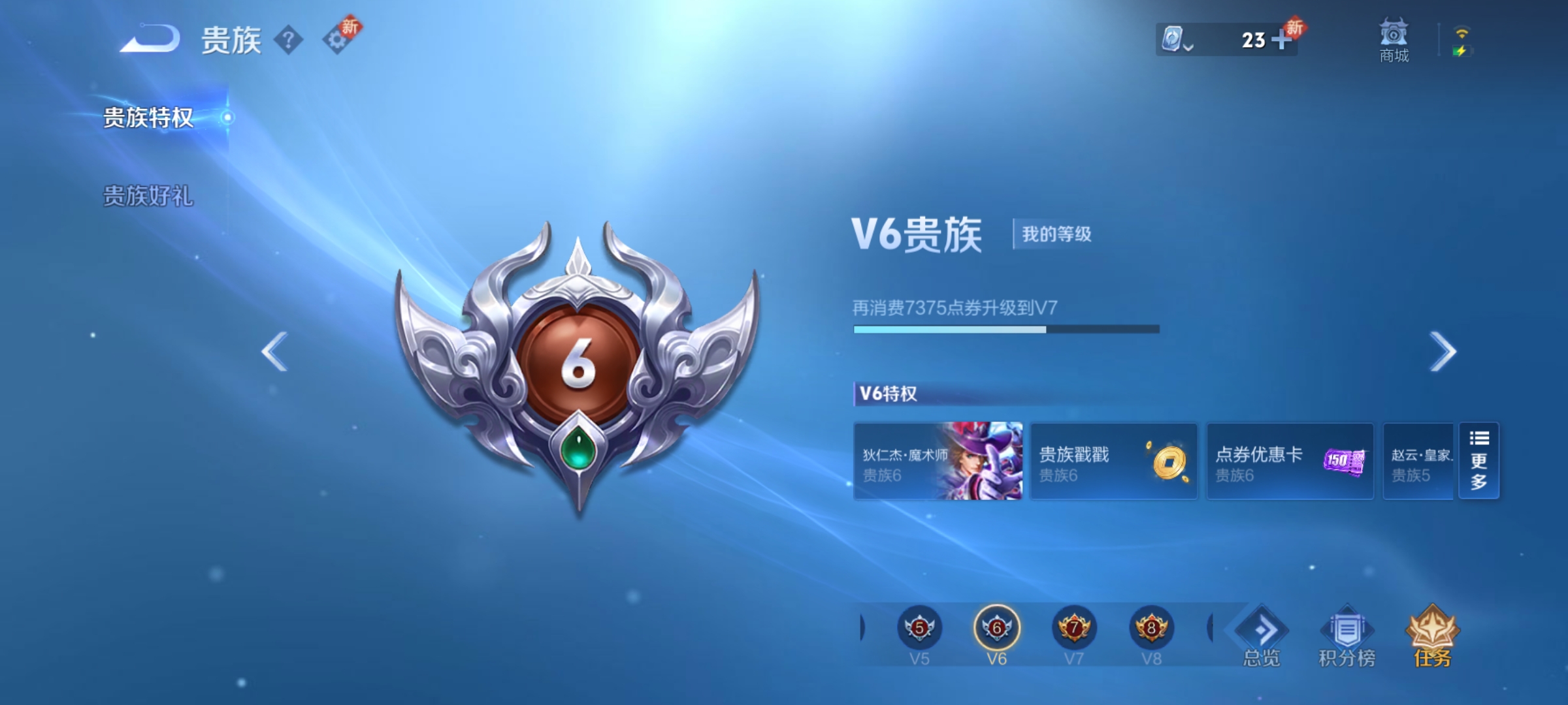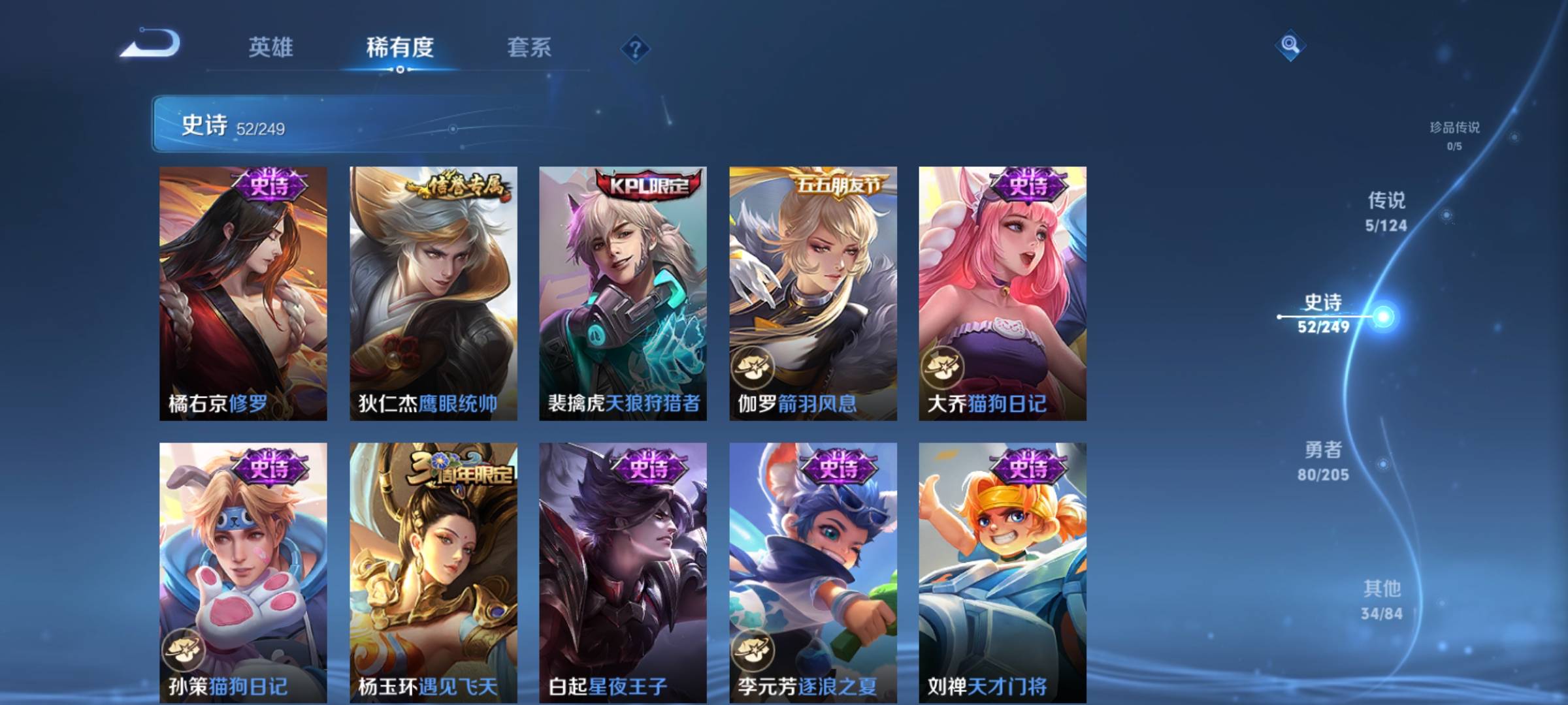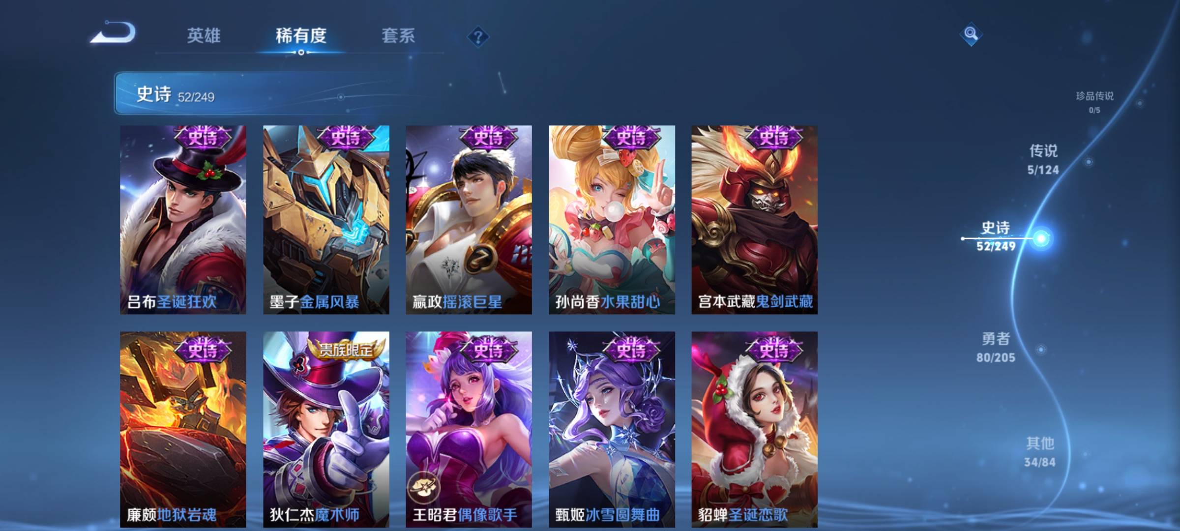 贵族等级:v6皮肤数:171传说品质5 生肖限定1 英雄数:121