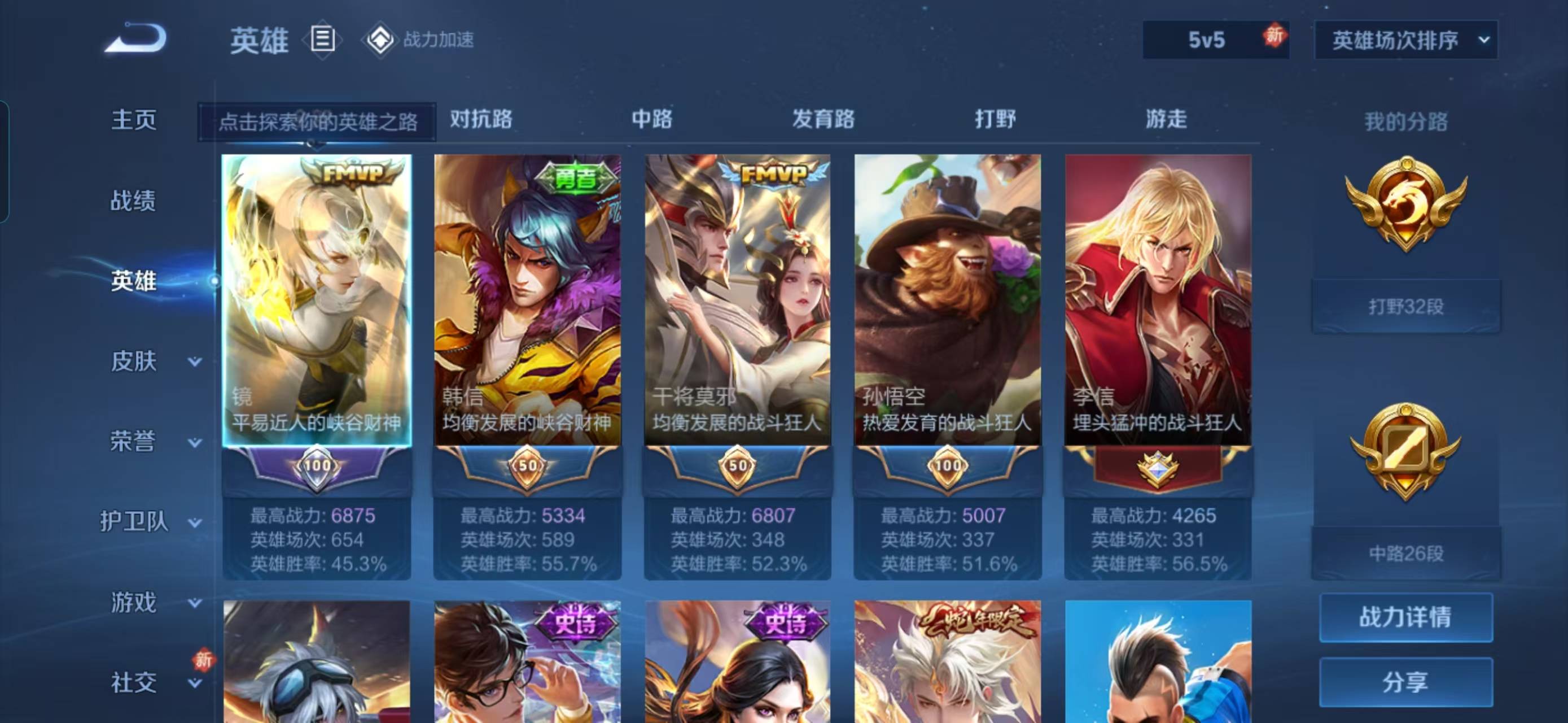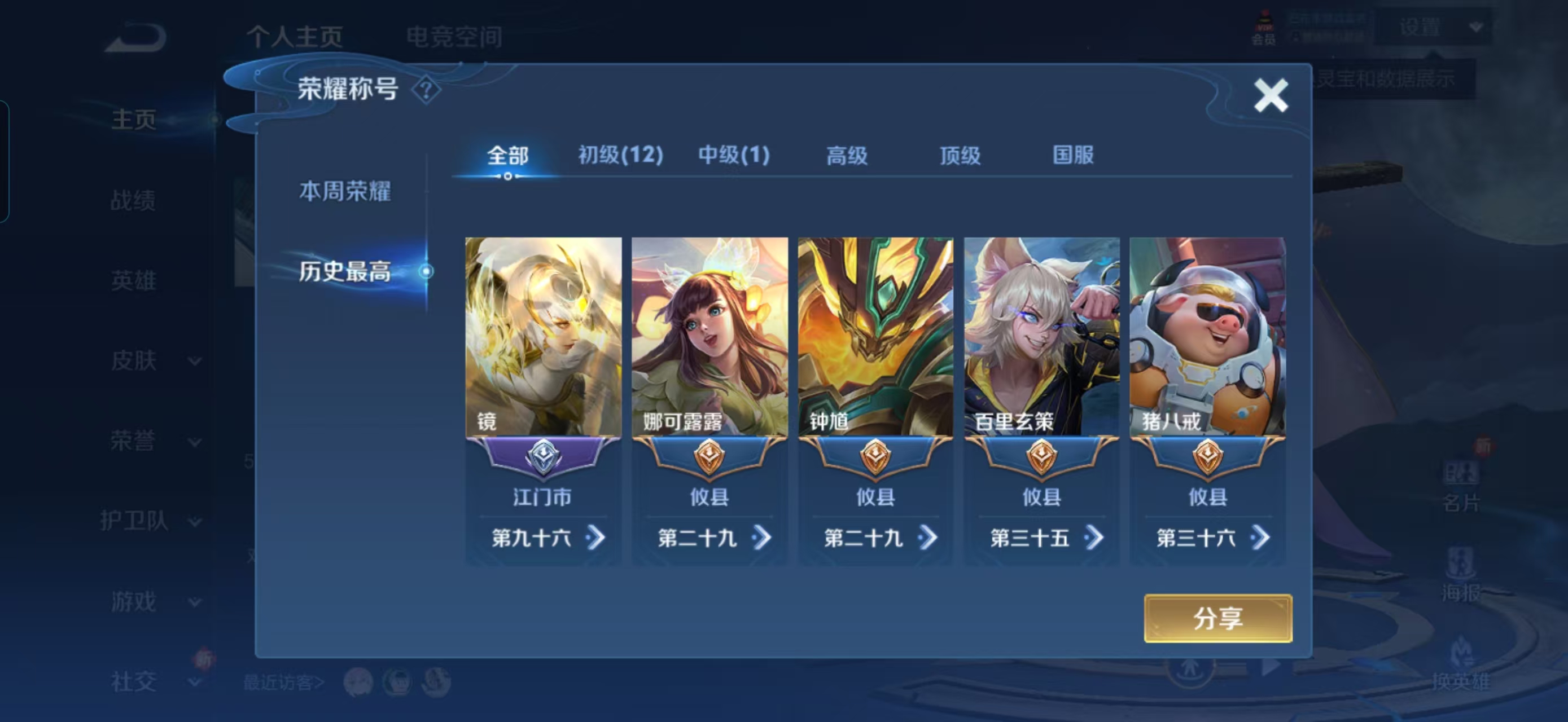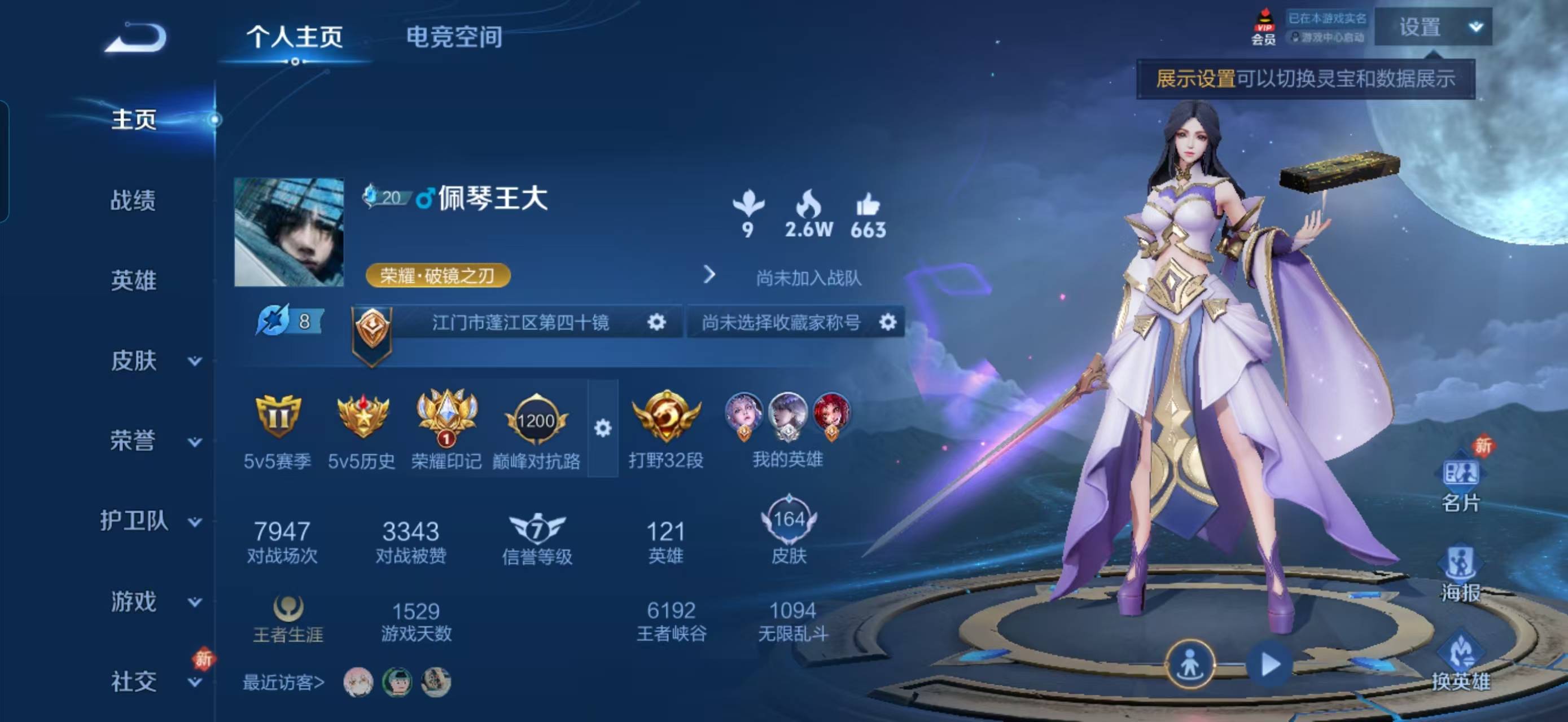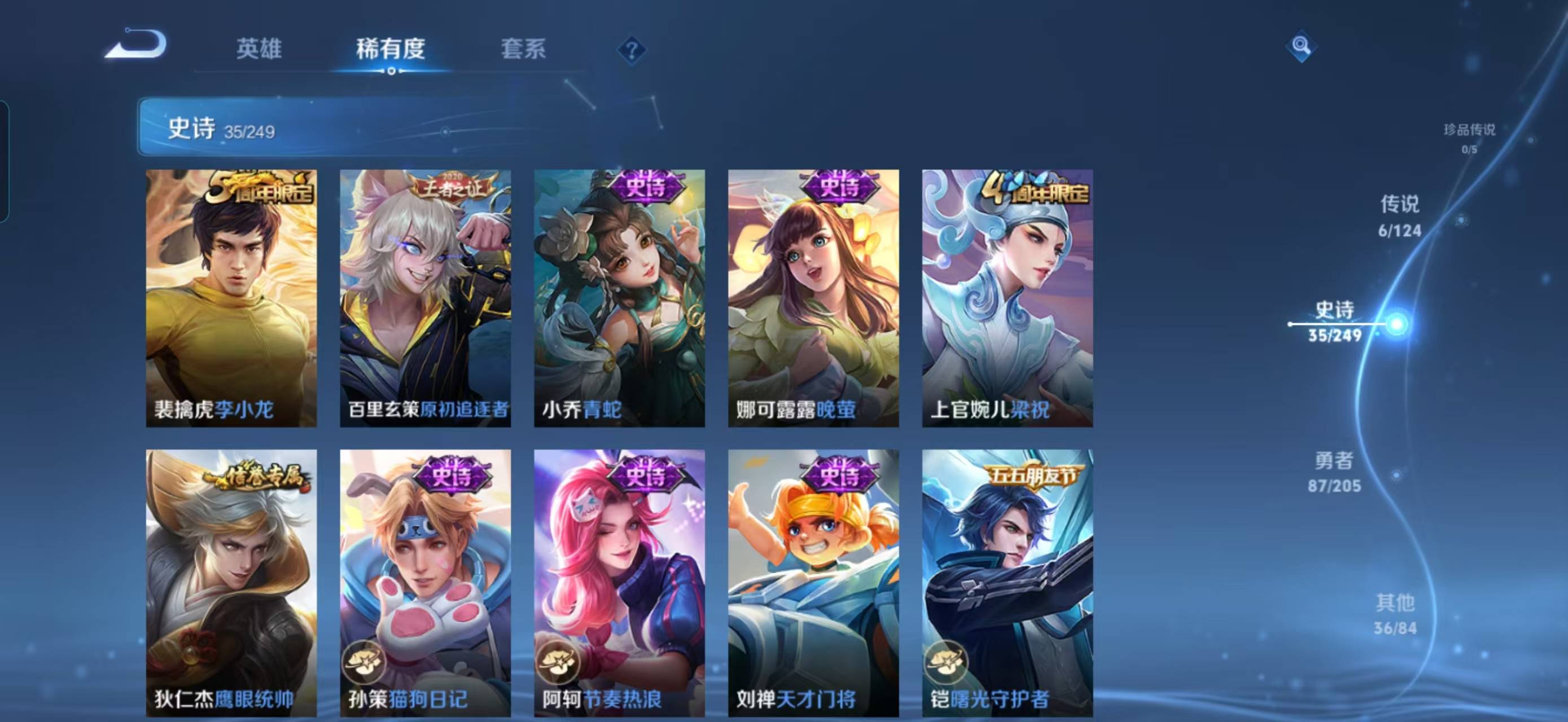 贵族等级:v5皮肤数:164传说品质6 生肖限定2 英雄数:121