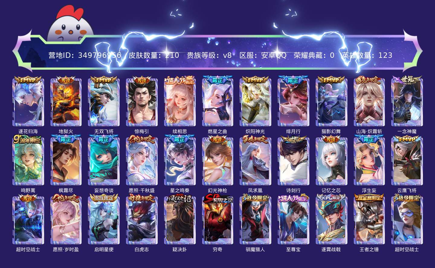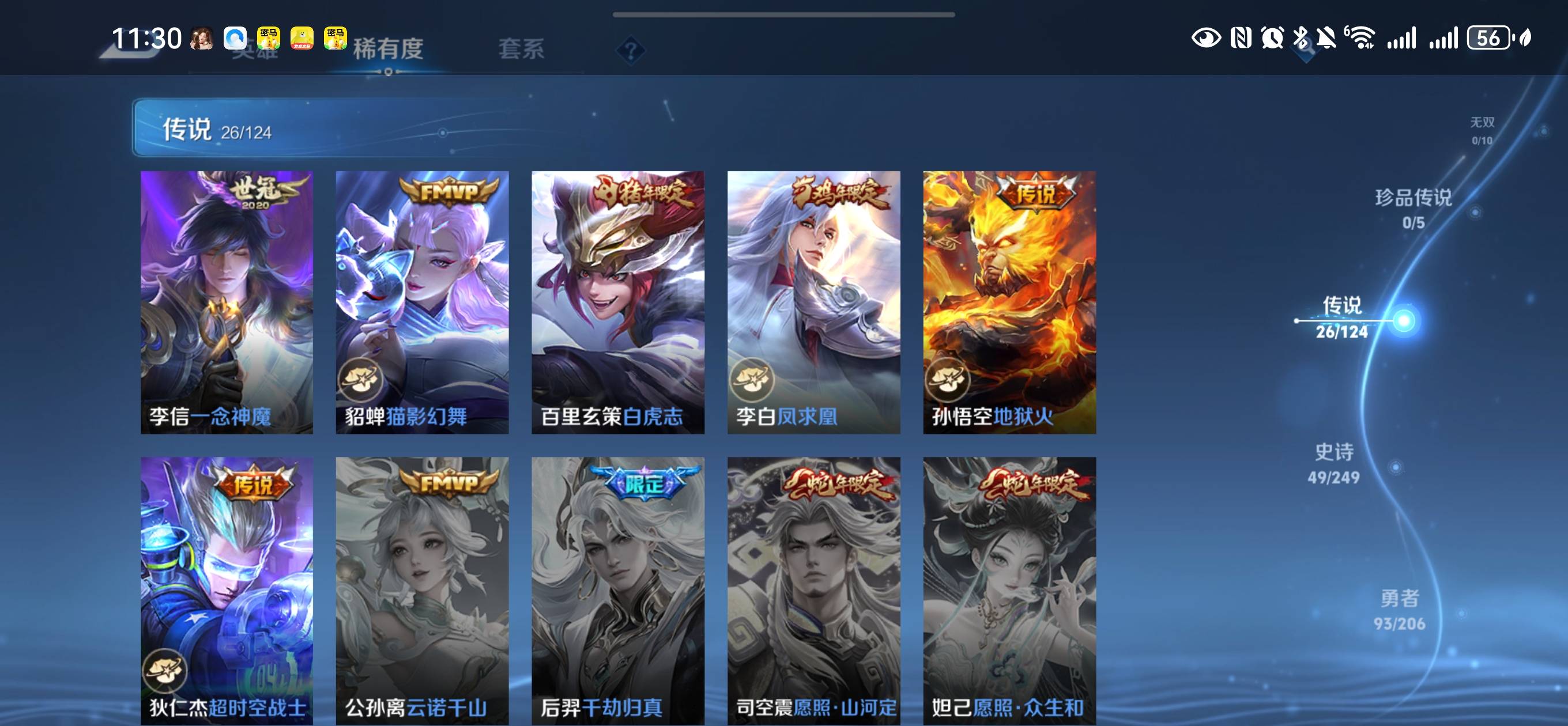 传说品质_澜_逐花归海传说品质_孙悟空_地狱火传说品质_马超_无双飞将传说品质_宫本武藏_惊梅引传说品质_西施_续相思传说品质_花木兰_燃星之曲传说品质_镜_炽阳神光传说品质_不知火舞_绯月行传说品质_貂蝉_猫影幻舞传说品质_李信_山海·炽霜斩传说品质_李信_一念神魔传说品质_桑启_鸣野蒿传说品质_橘右京_枫霜尽传说品质_上官婉儿_妄想奇谈传说品质_女娲_愿照·千秋盛传说品质_杨玉环_星之鸣奏传说品质_云缨_幻光神枪传说品质_李白_凤求凰传说品质_李白_诗剑行传说品质_公孙离_记忆之芯传说品质_夏洛特_浮生妄传说品质_曜_云鹰飞将传说品质_狄仁杰_超时空战士传说品质_虞姬_愿照·岁时盈传说品质_虞姬_启明星使传说品质_百里玄策_白虎志