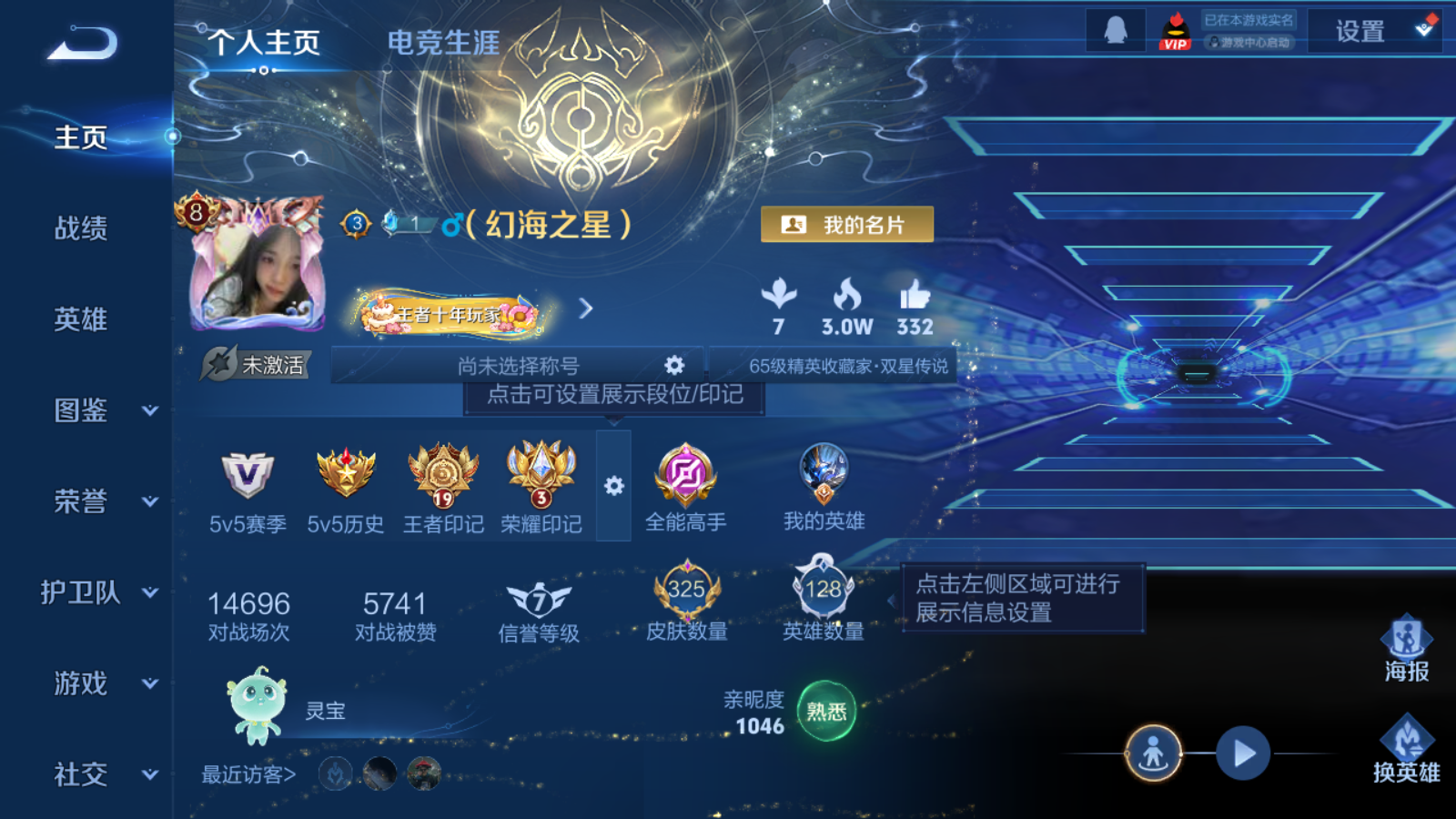贵族等级:v9皮肤数:325生肖限定6 传说品质17 情人节限定3 荣耀典藏2 英雄数:128