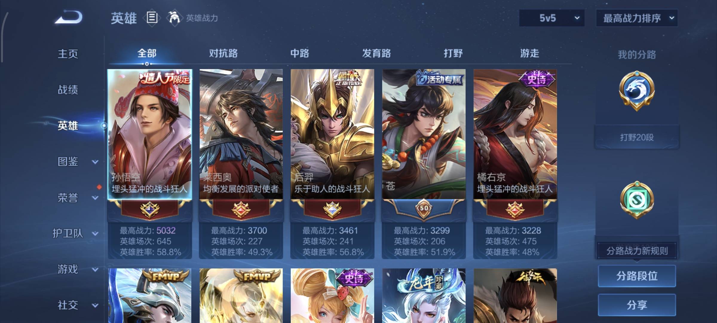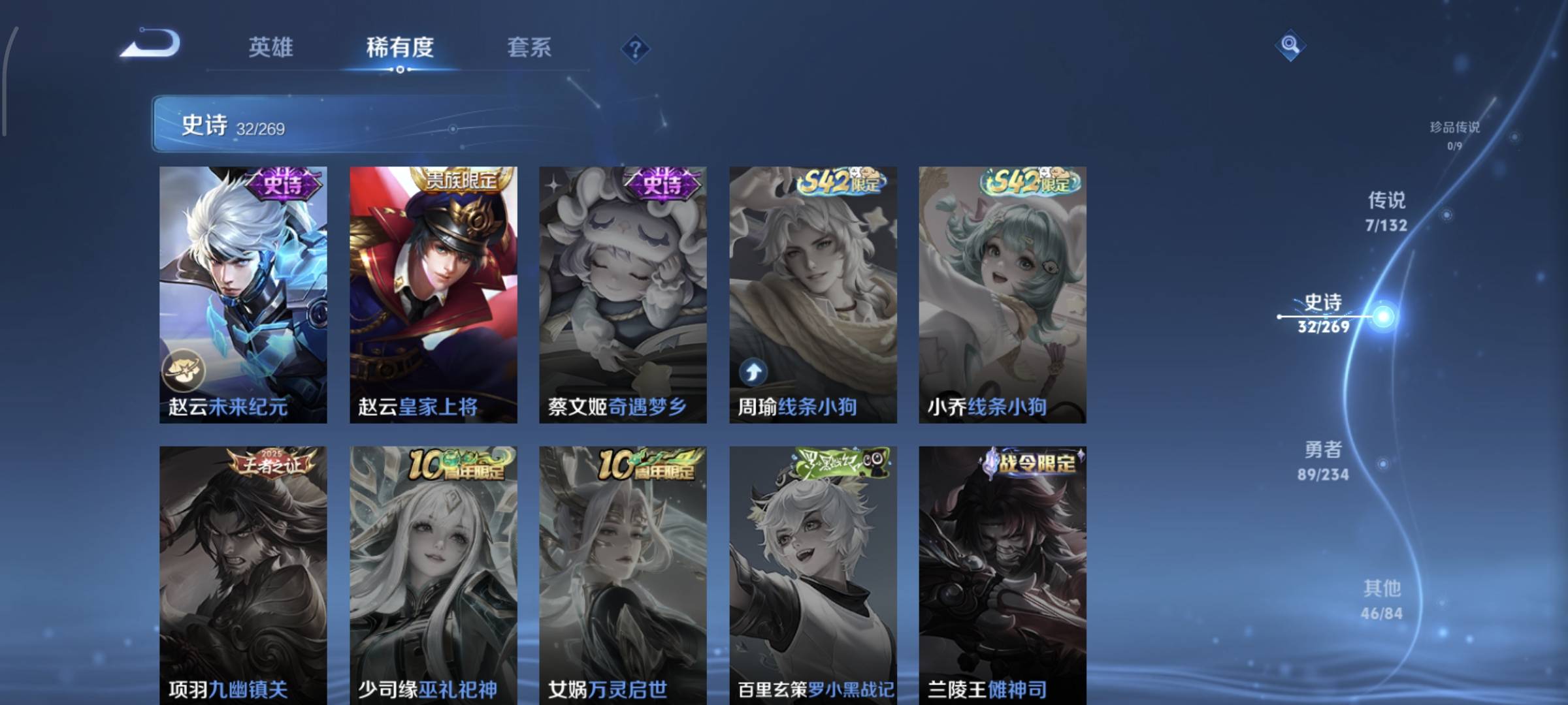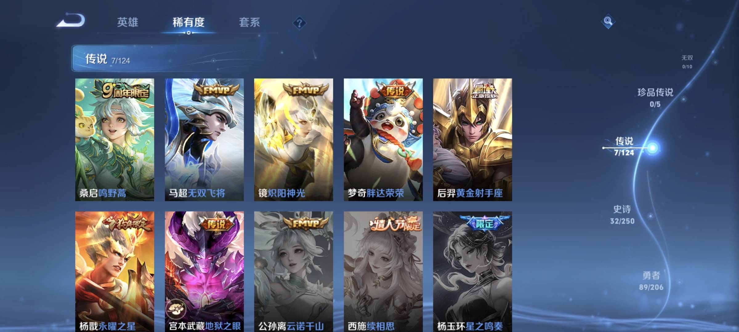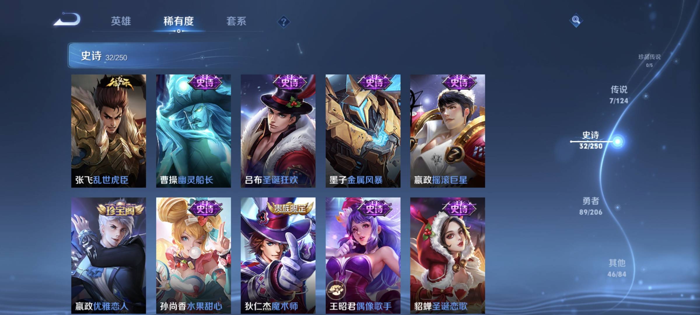 贵族等级:v7皮肤数:174传说品质7 情人节限定2 生肖限定1 英雄数:125