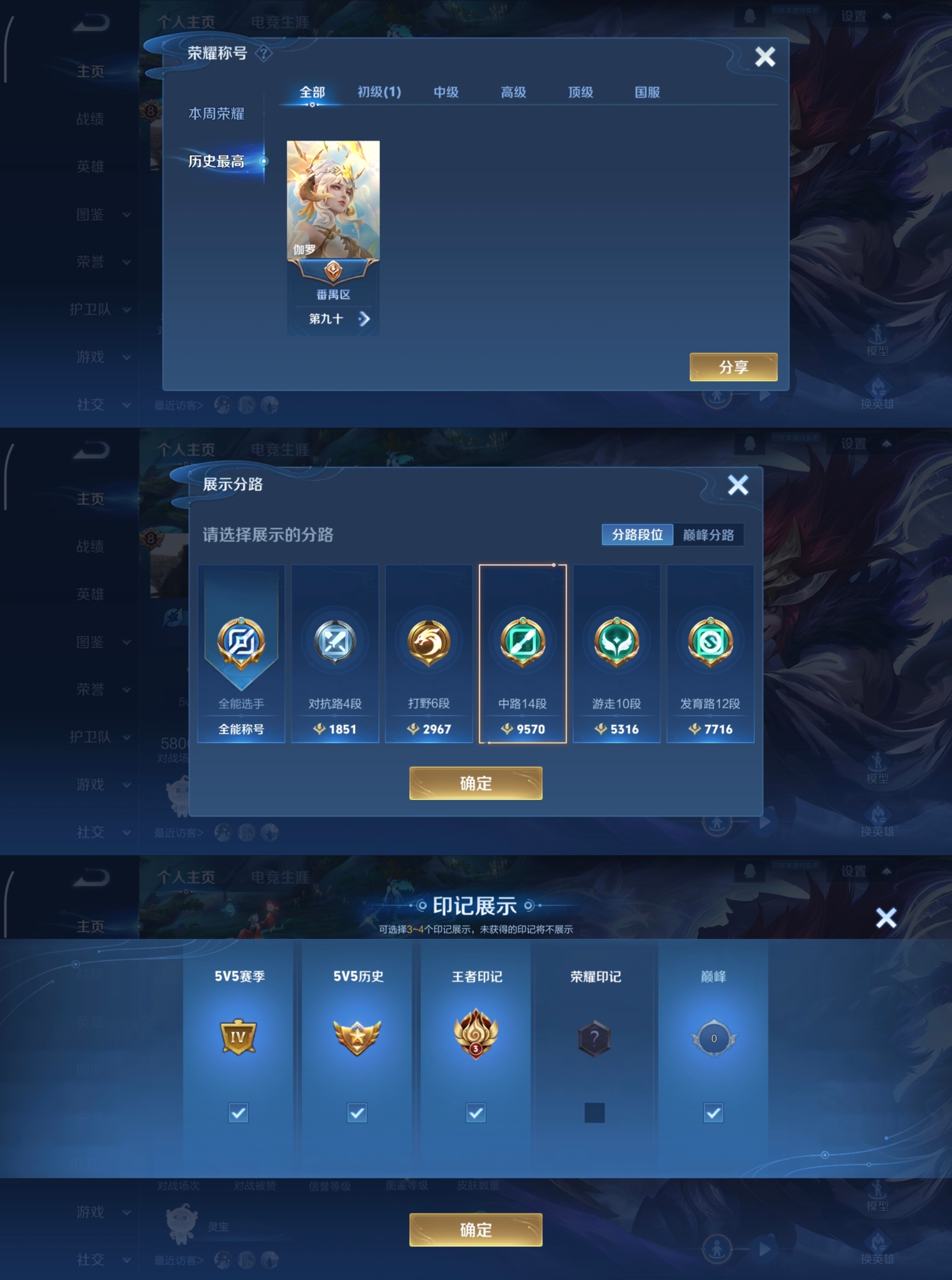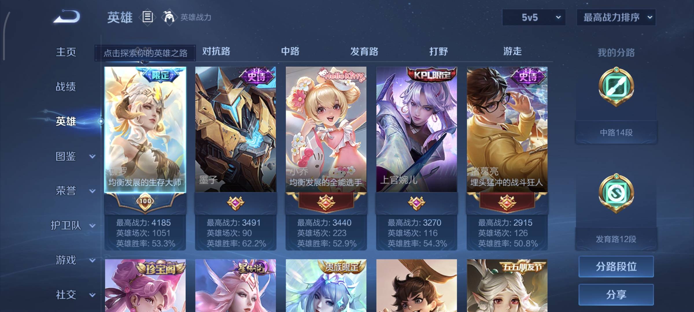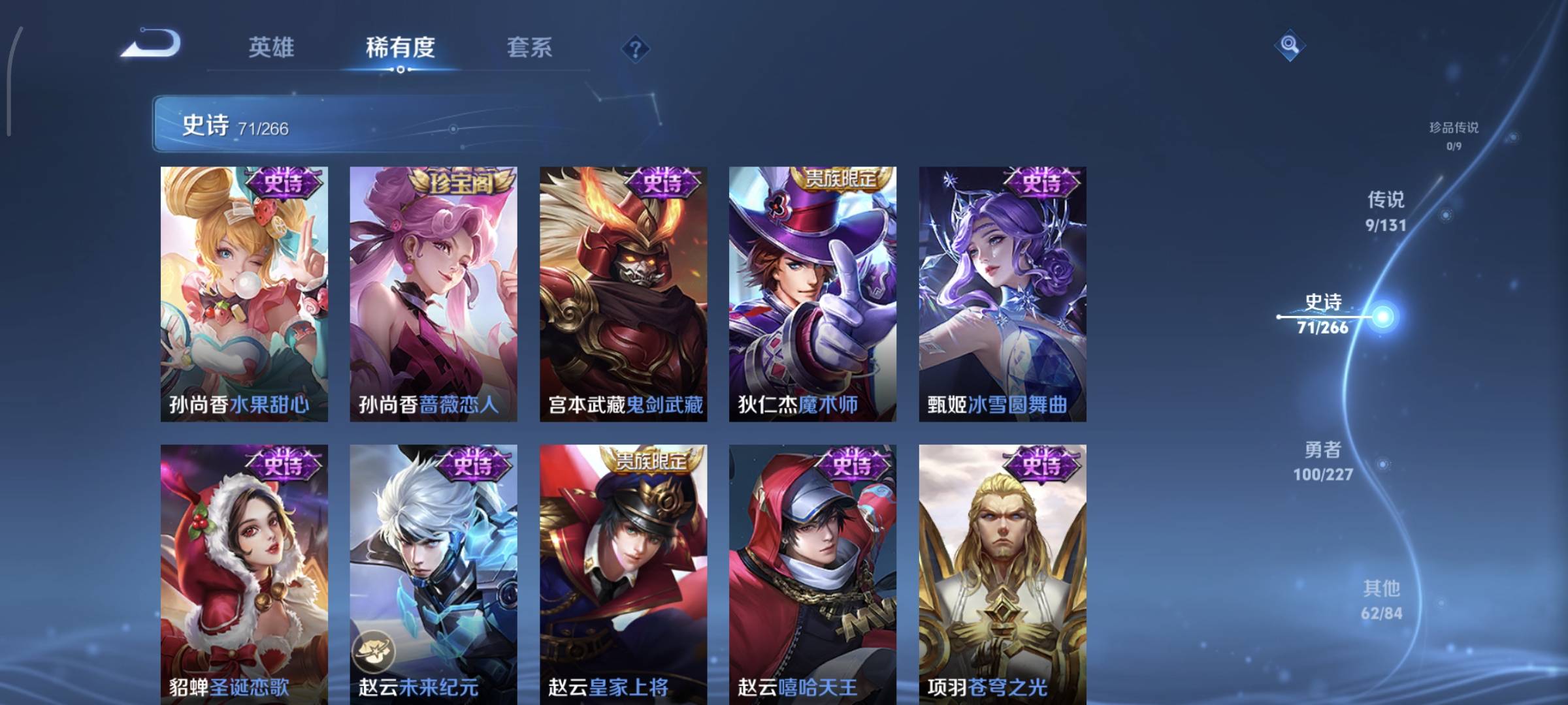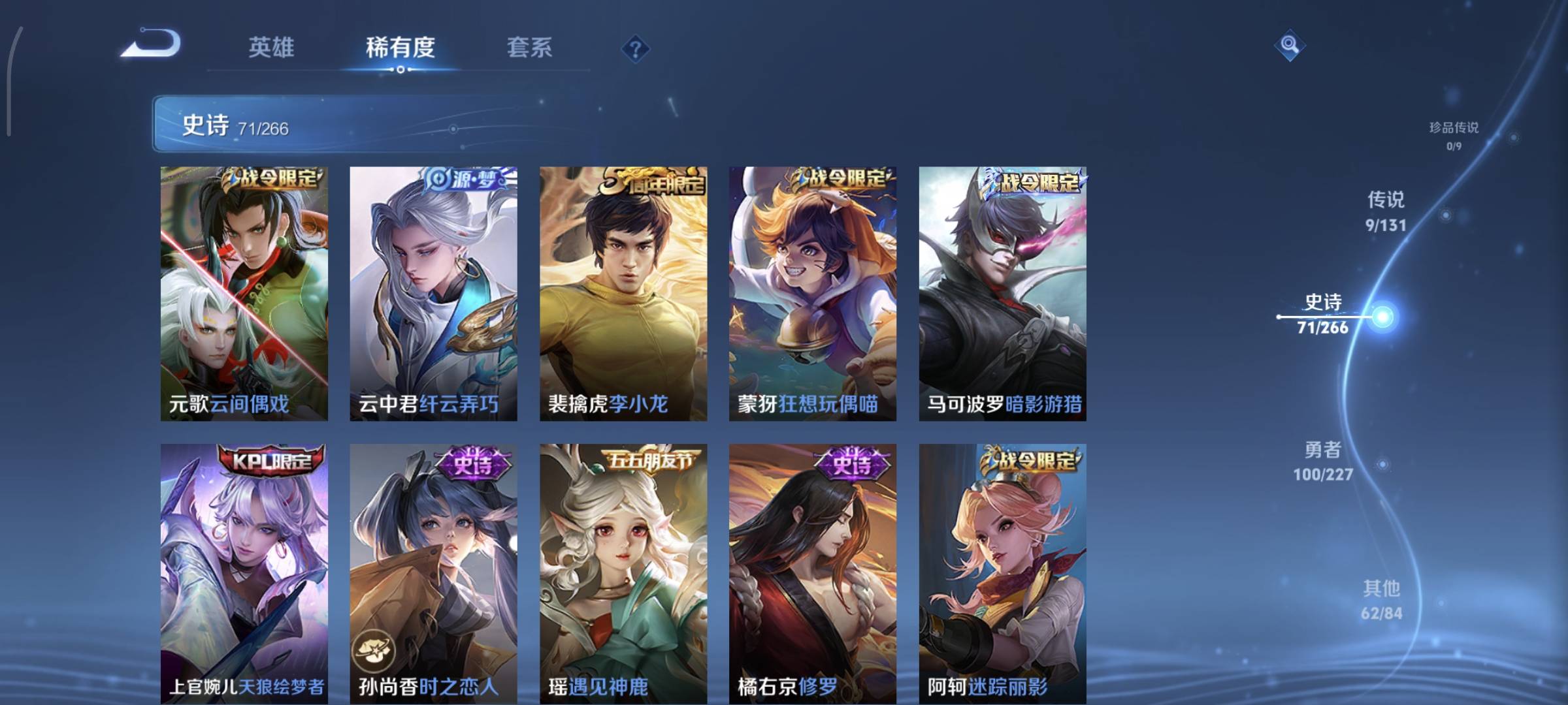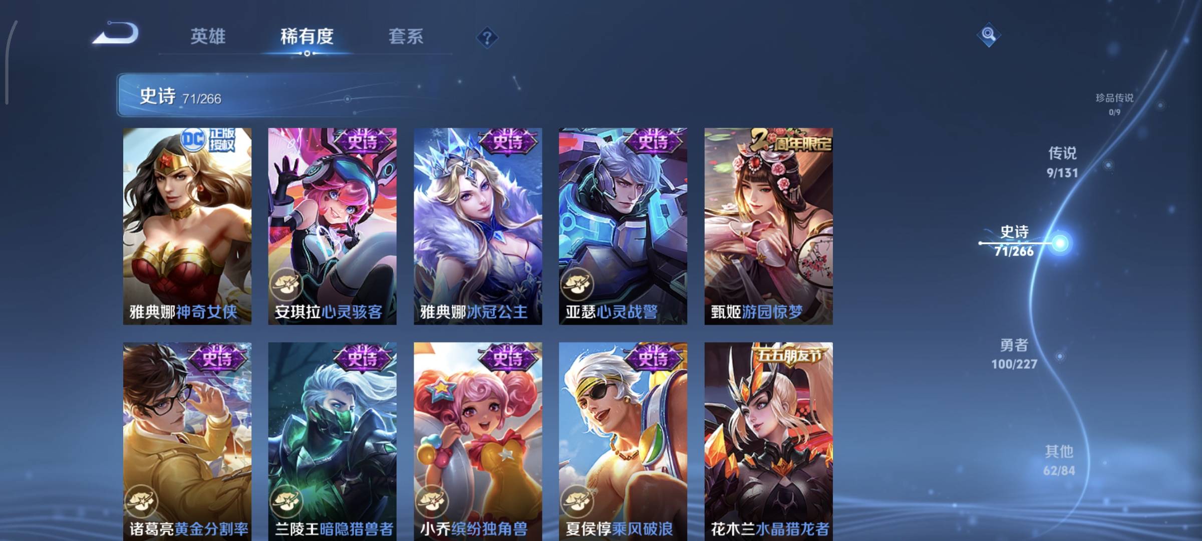 贵族等级:v8皮肤数:246情人节限定1 荣耀典藏1 传说品质9 生肖限定3 英雄数:127